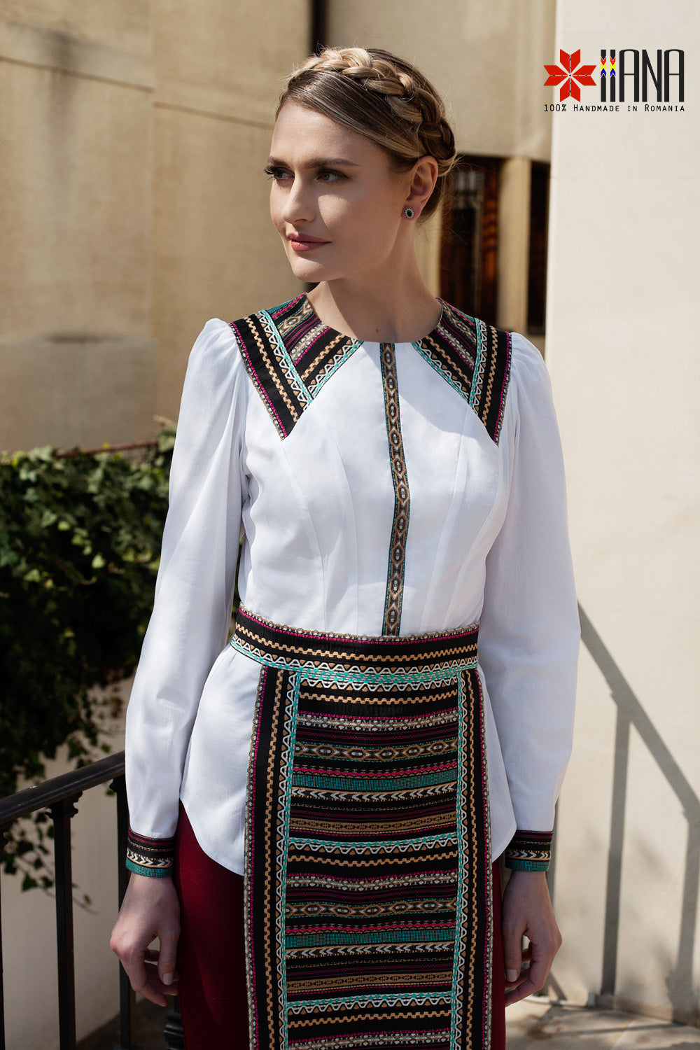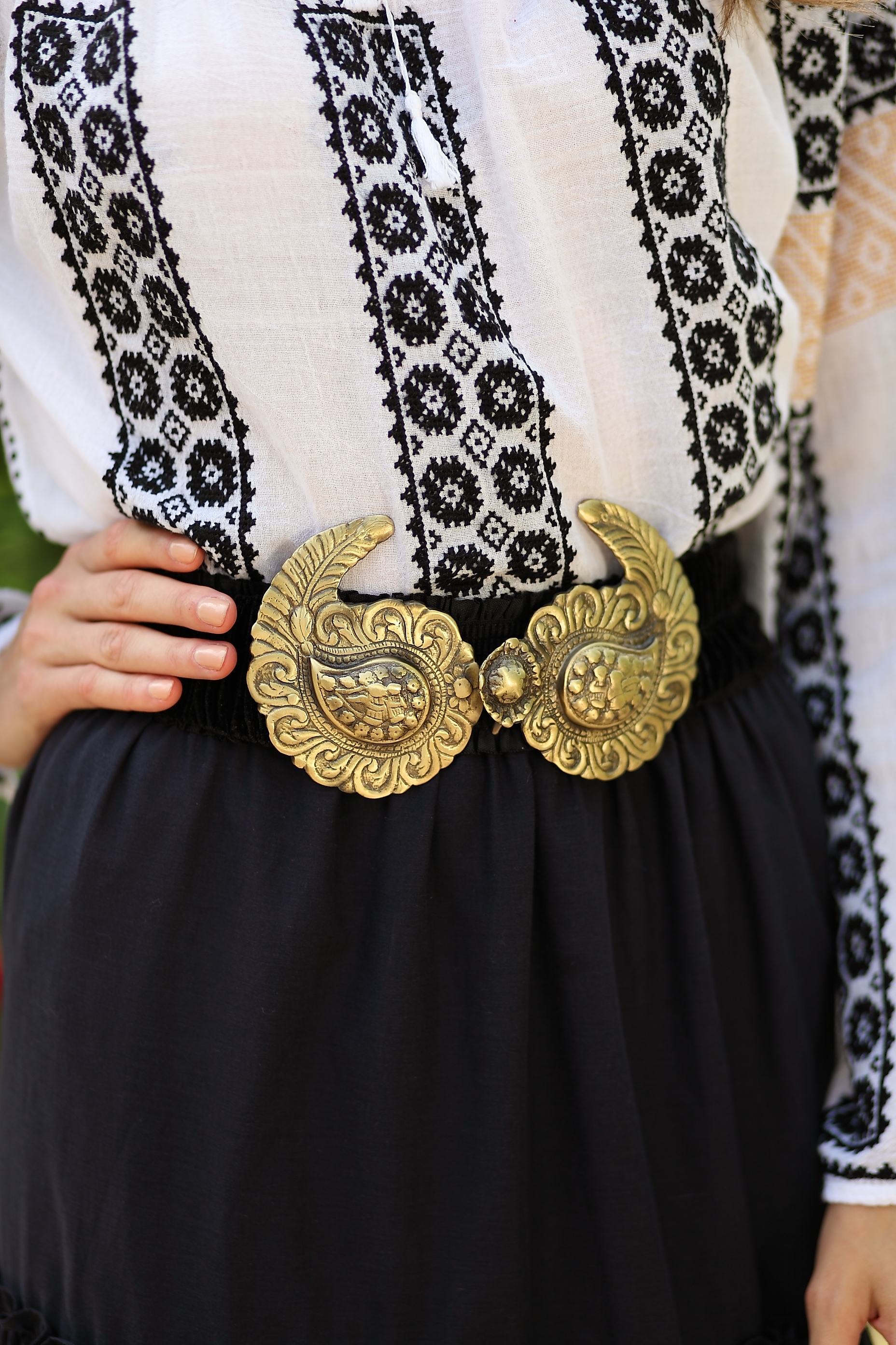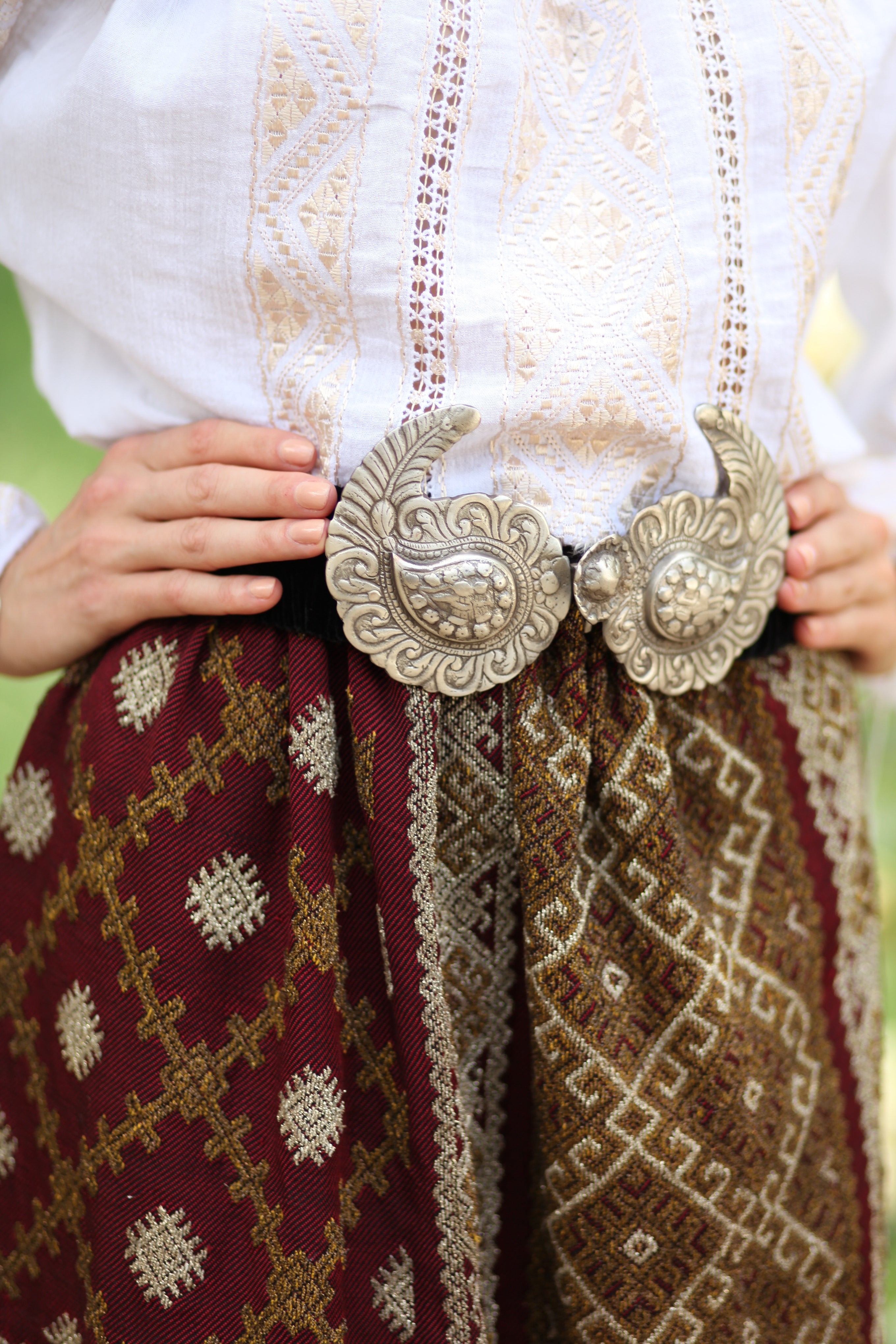 - Integrează materiale delicate, țesute cu atenție - Fotele și baticele tradiționale sunt cusute cu broderii și motive autentice, inspirate din folclorul românesc. În ceea ce privește gama de paftale, materialul principal este alama, peste care se definitivează finisaje inedite.