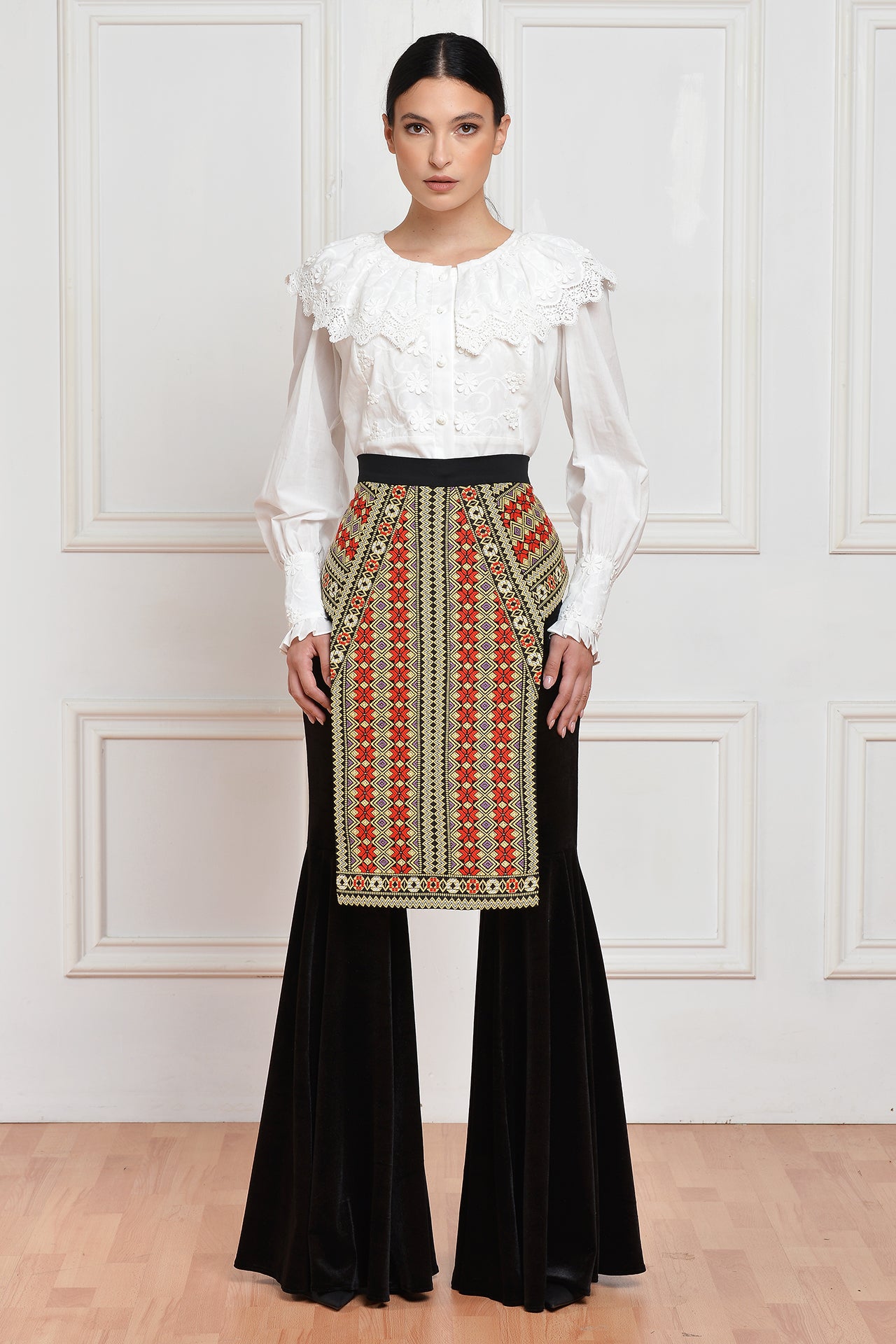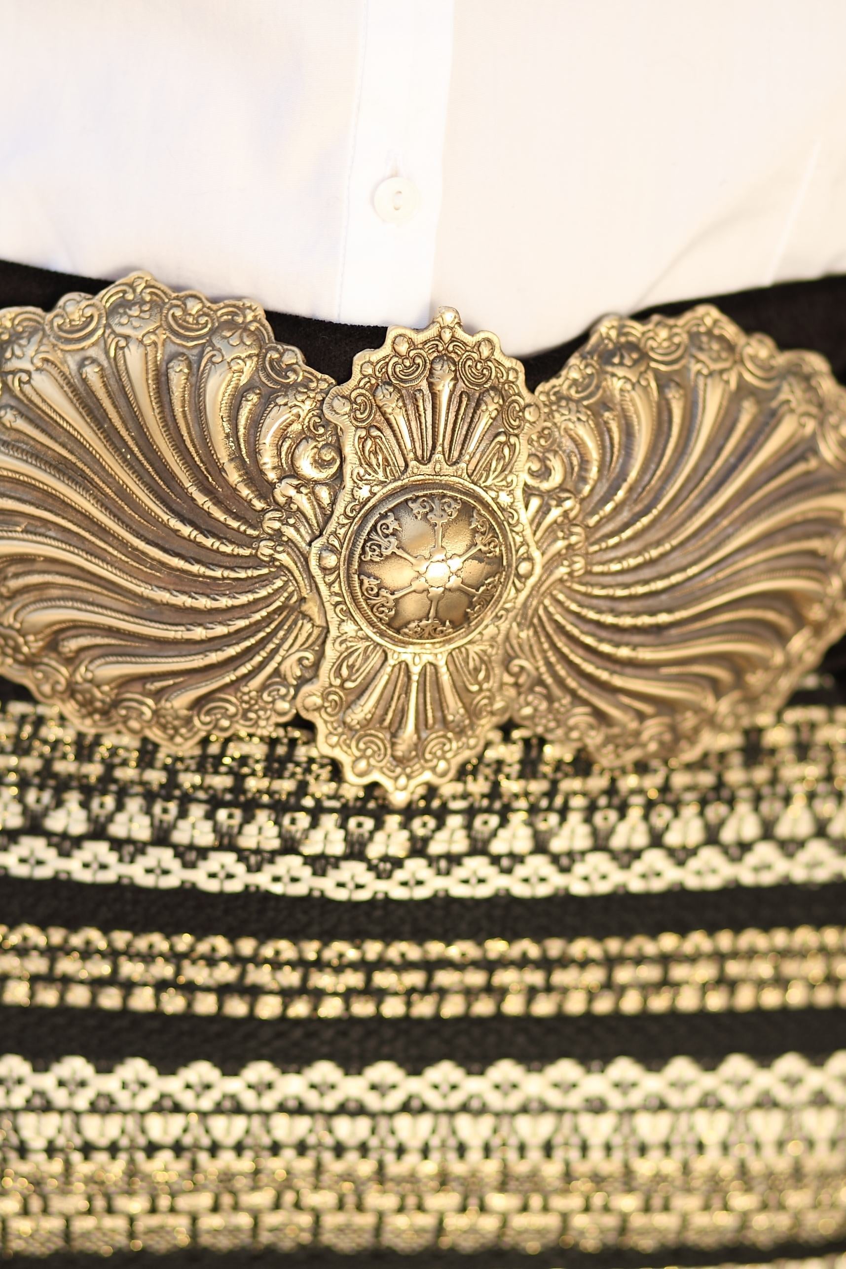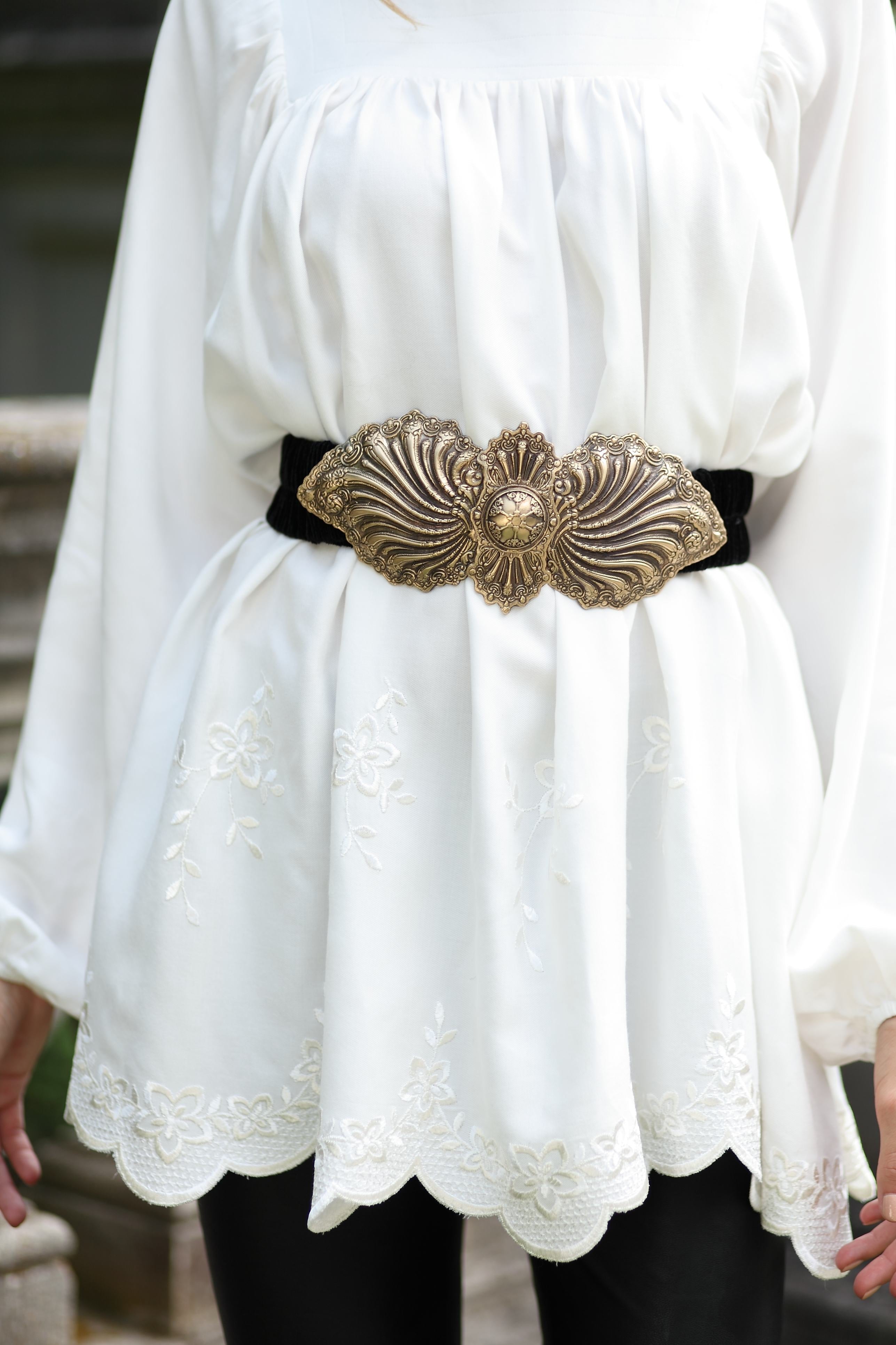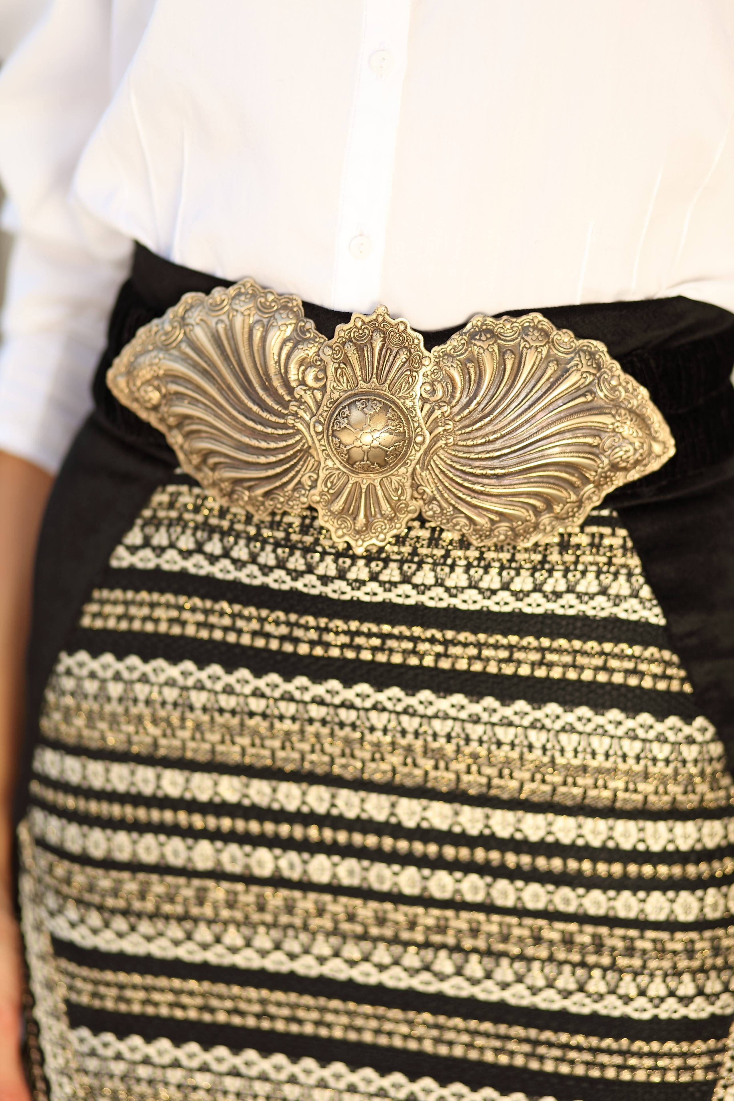 - Integrează materiale delicate, țesute cu atenție - Fotele și baticele tradiționale sunt cusute cu broderii și motive autentice, inspirate din folclorul românesc. În ceea ce privește gama de paftale, materialul principal este alama, peste care se definitivează finisaje inedite.