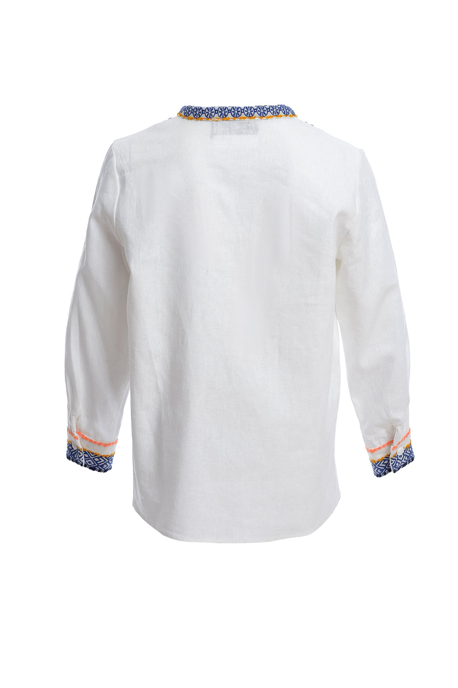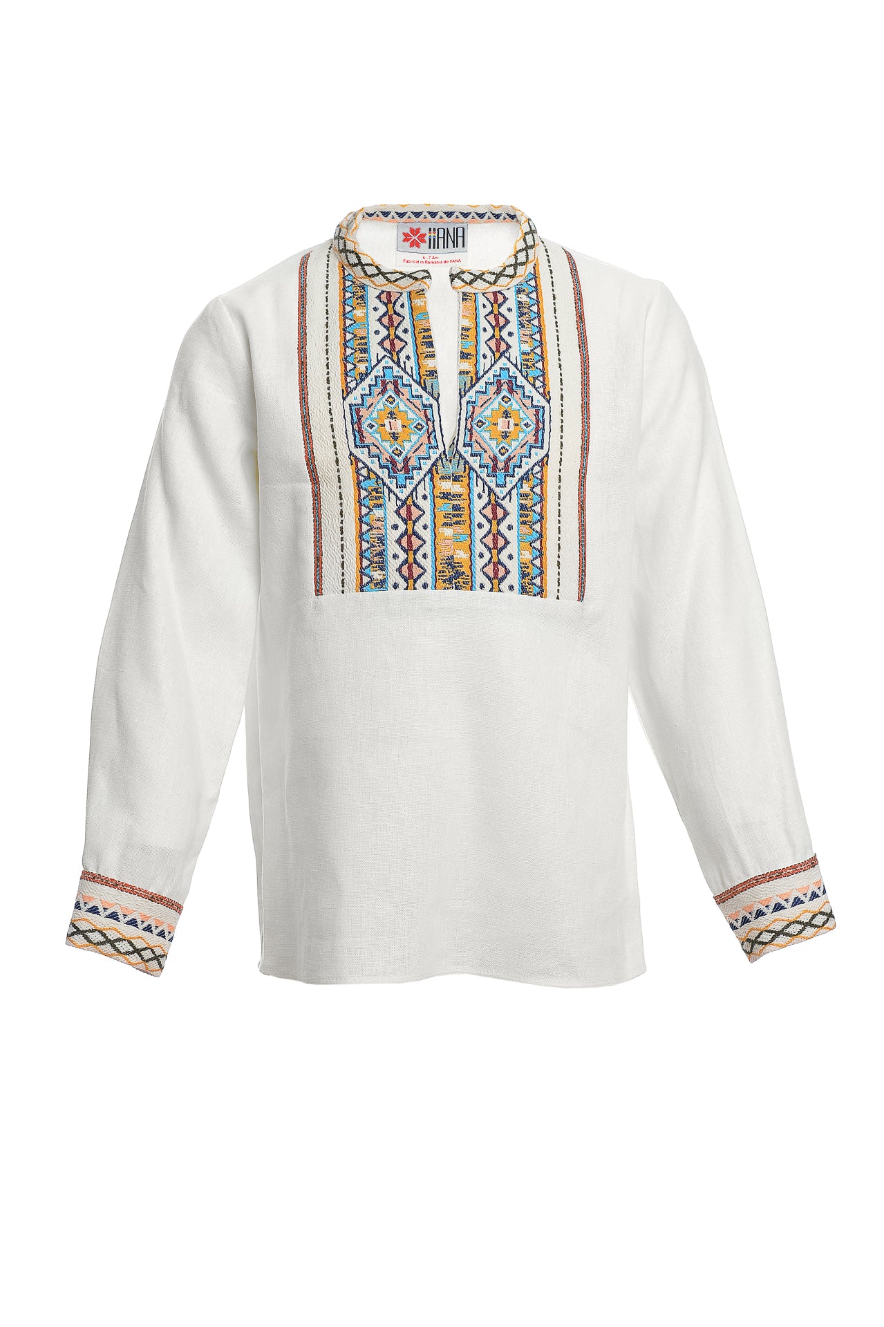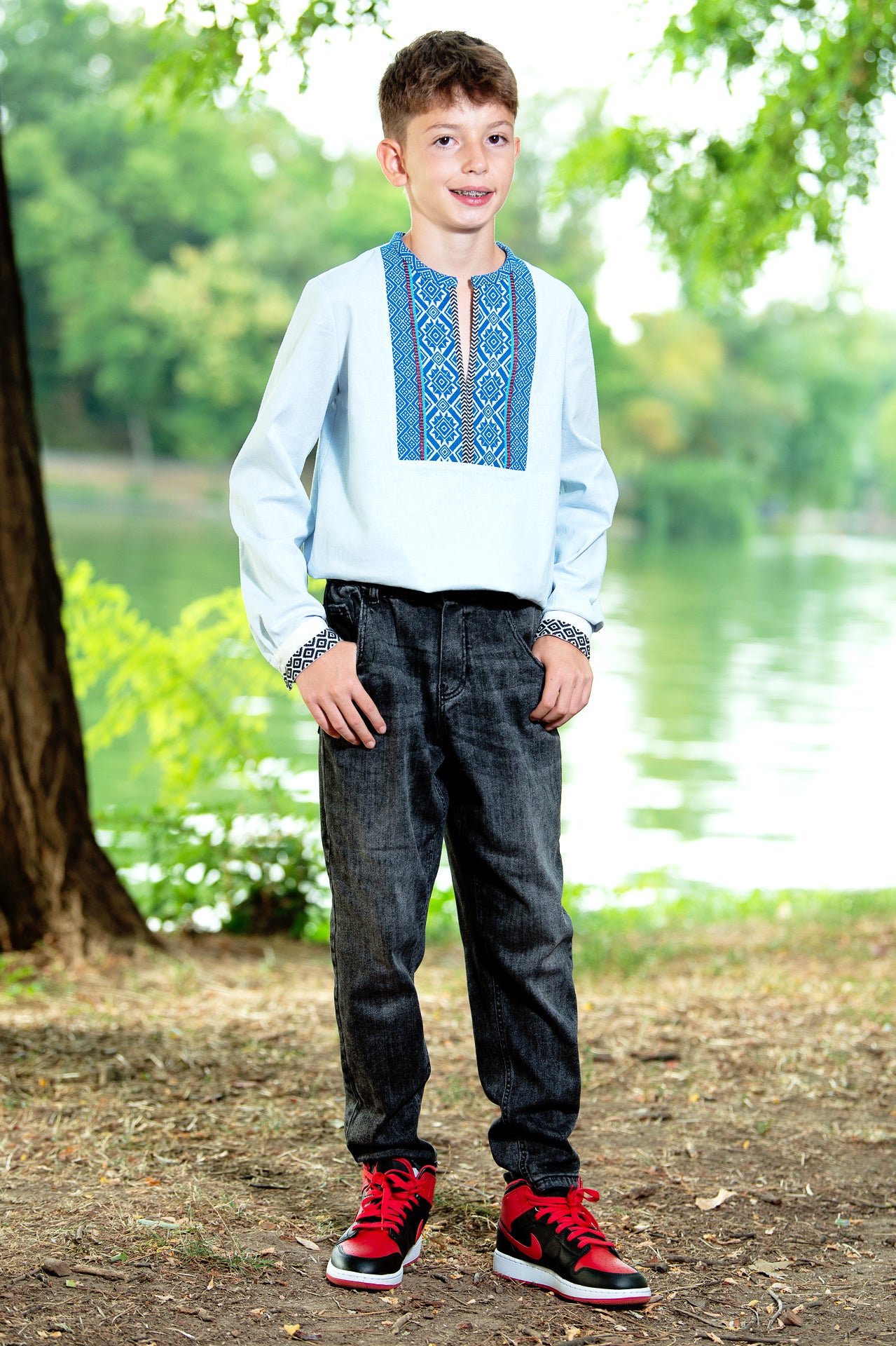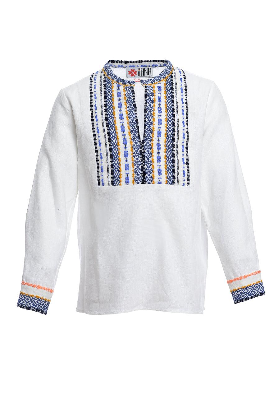 Cămașă tip ia lui Petru - La fel de jucăușă din punct de vedere estetic, cămașa reușește să coloreze orice ținută, fie formală sau relaxată. Are un croi lejer și integrează elemente stilizate în nuanțe deschise de albastru, în zona pieptului. Manșetele pe care le prezintă ie copii băieți sunt colorate, de asemenea, pentru a completa efectul vizual creat și a obține un design cu adevărat special.
