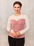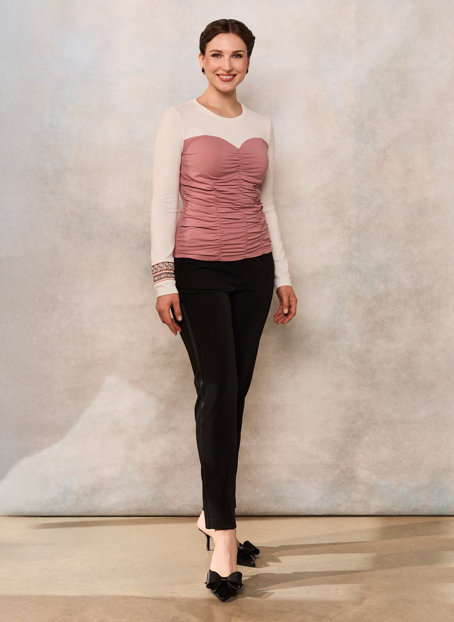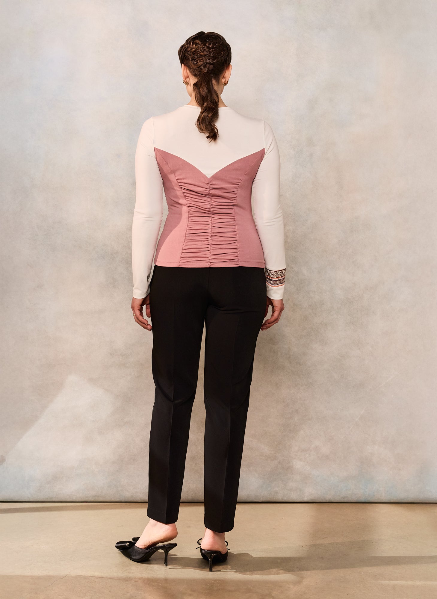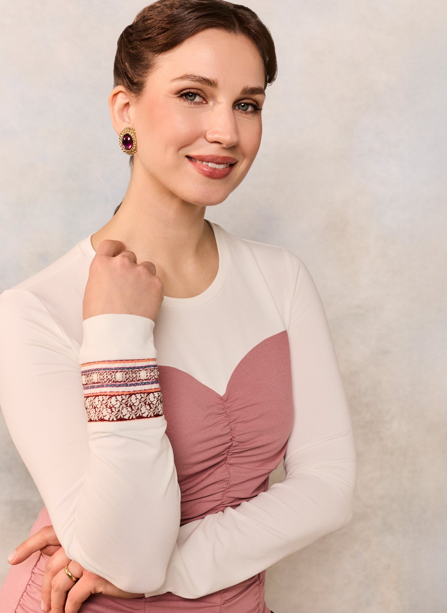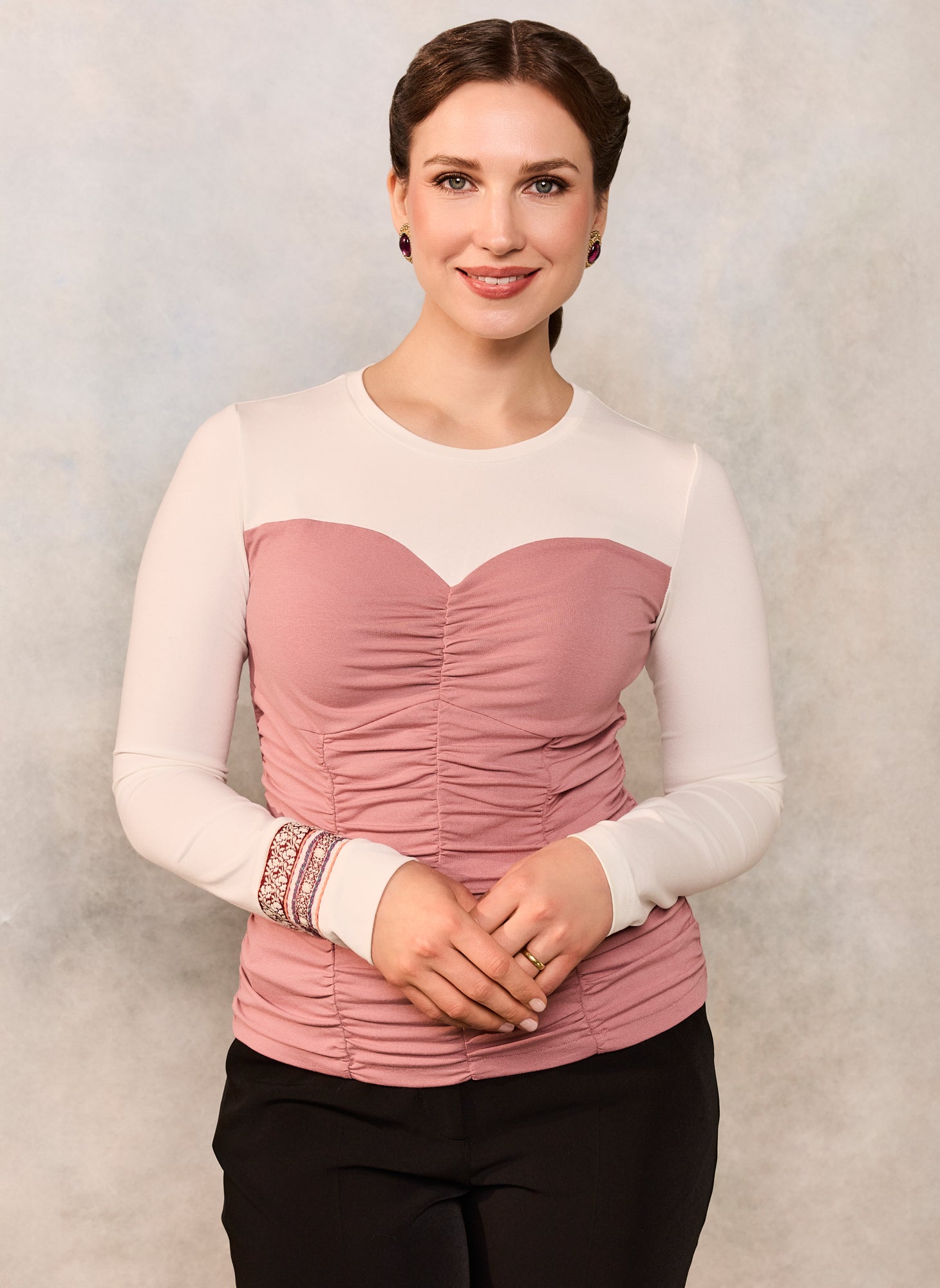 Bluză din jerseu cu corset și brățară țesută alb cu roz pudră