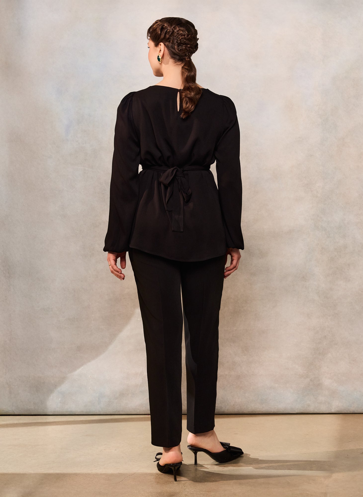 Bluza are un croi feminin și lejer, este reglabilă pe talie cu ajutorul cordonului.