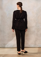 Bluza etno din viscoză neagră și corset românesc din jacquard și dantelă tradițională
