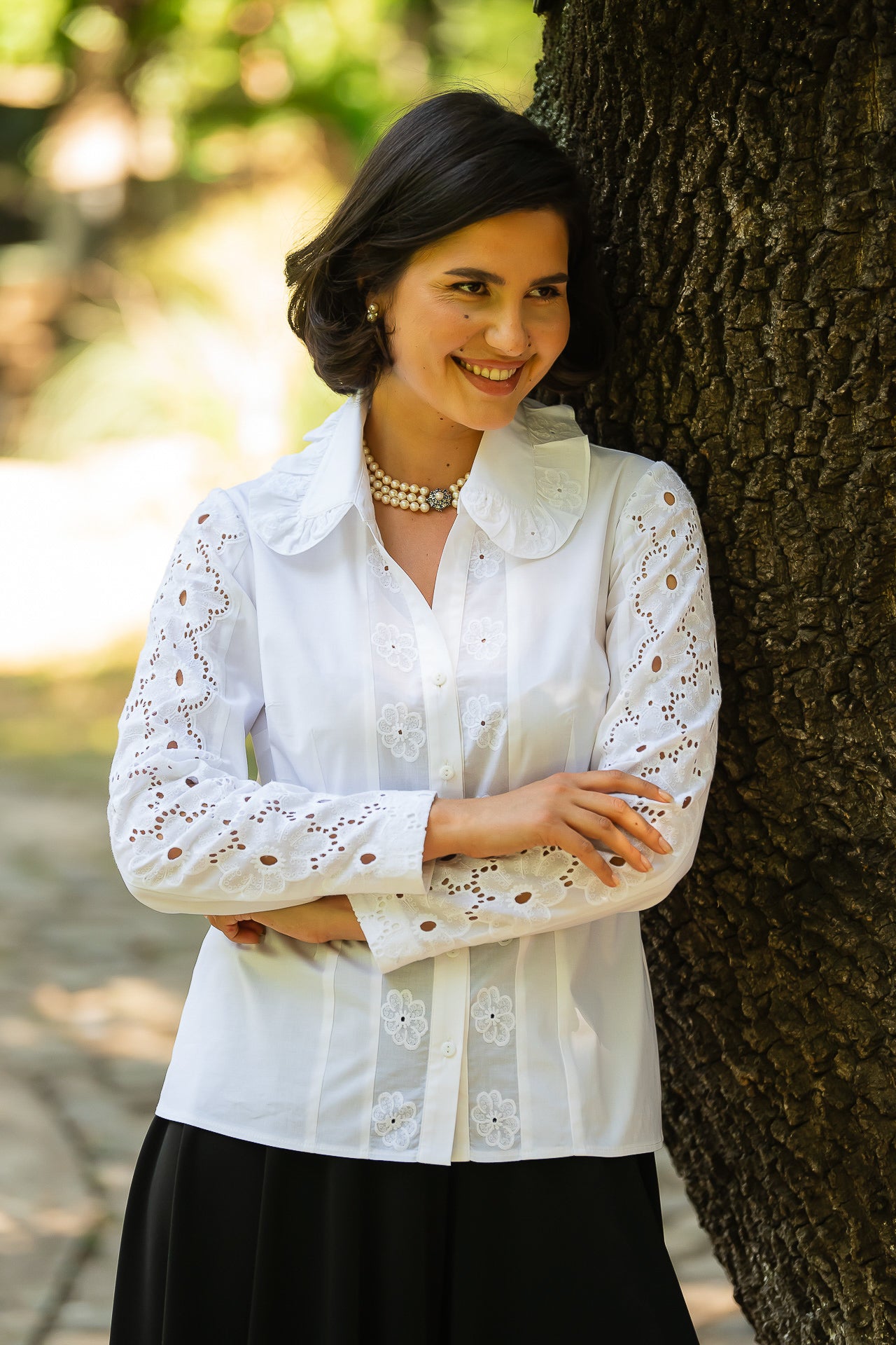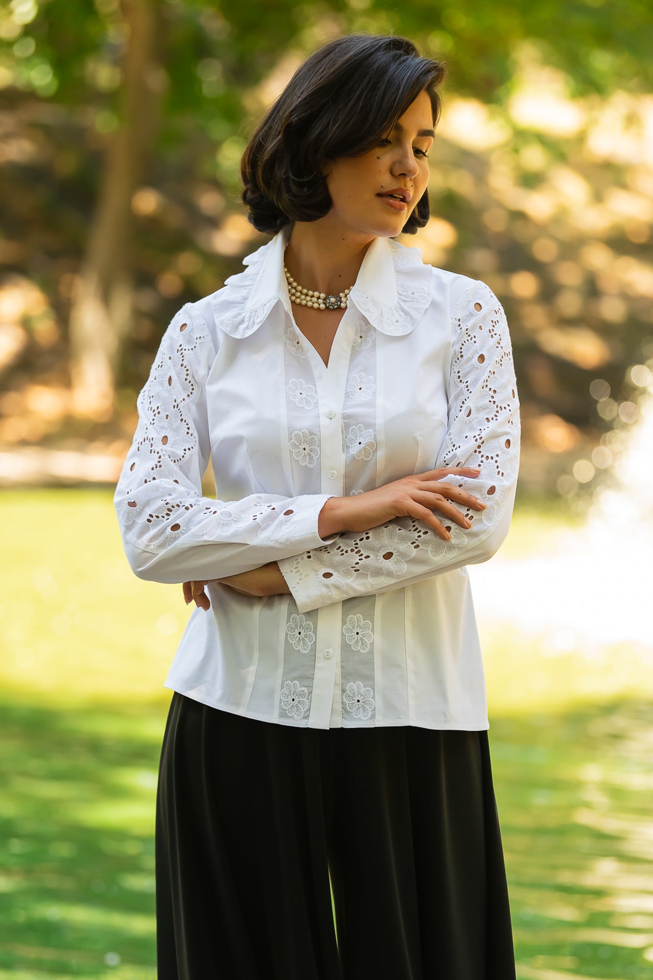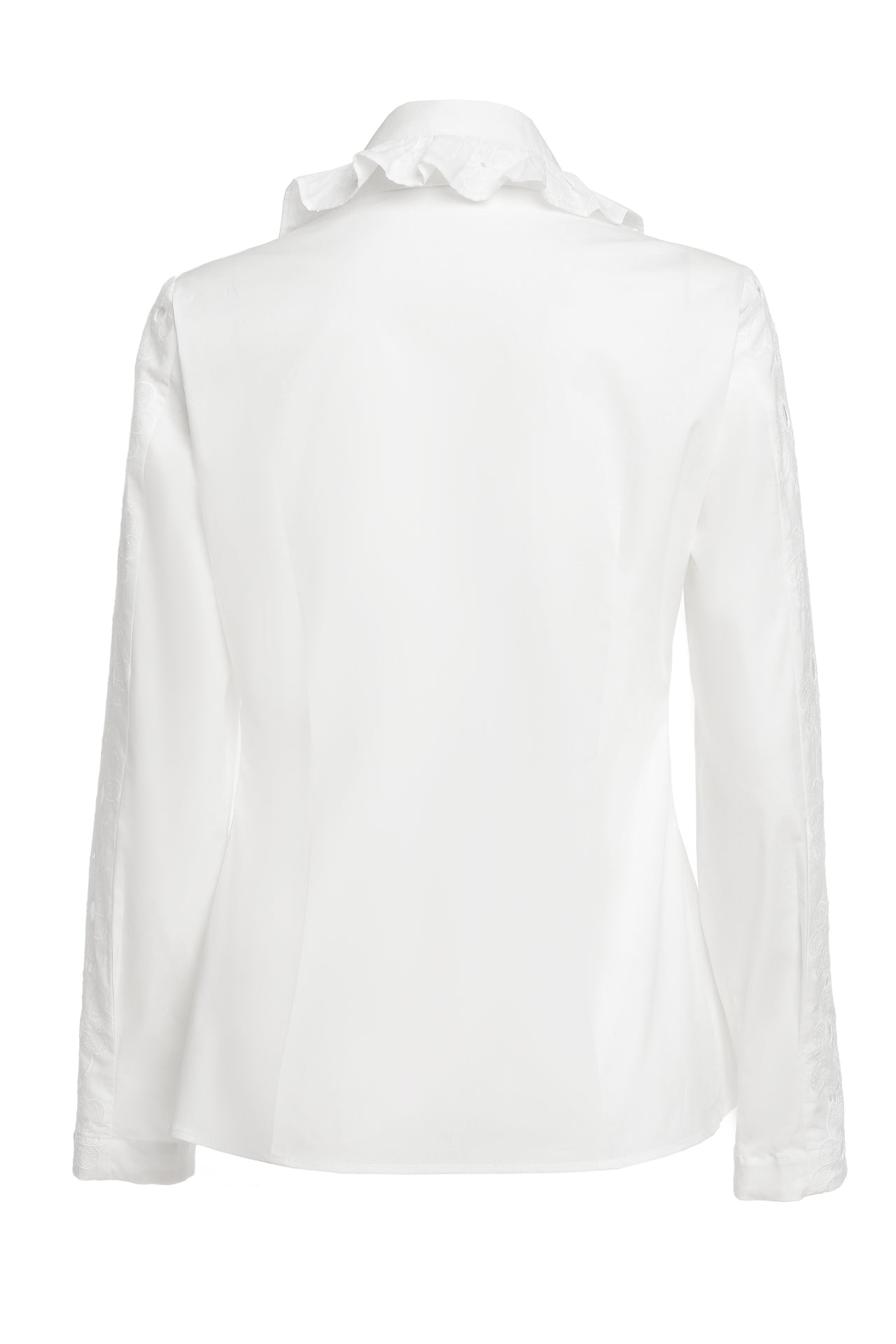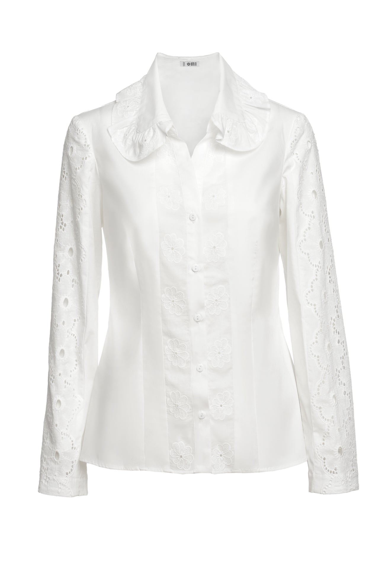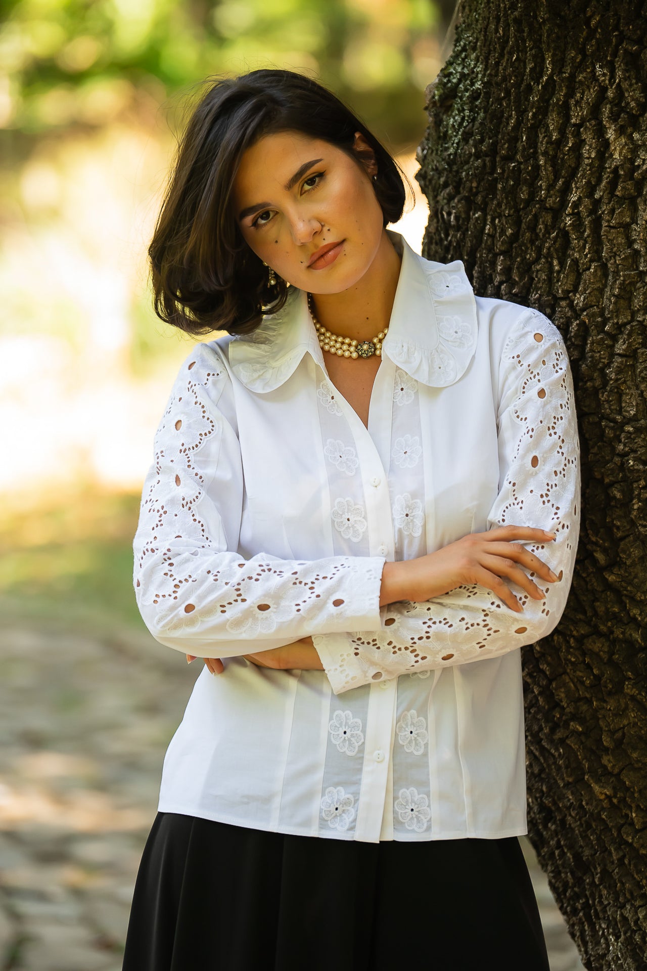 Cămașa cu broderie florală este o piesă feminină, elegantă și rafinată, care poate fi integrată cu succes într-o ținută elegantă cât și într-o ținută relaxată, cu fustă sau pantaloni.