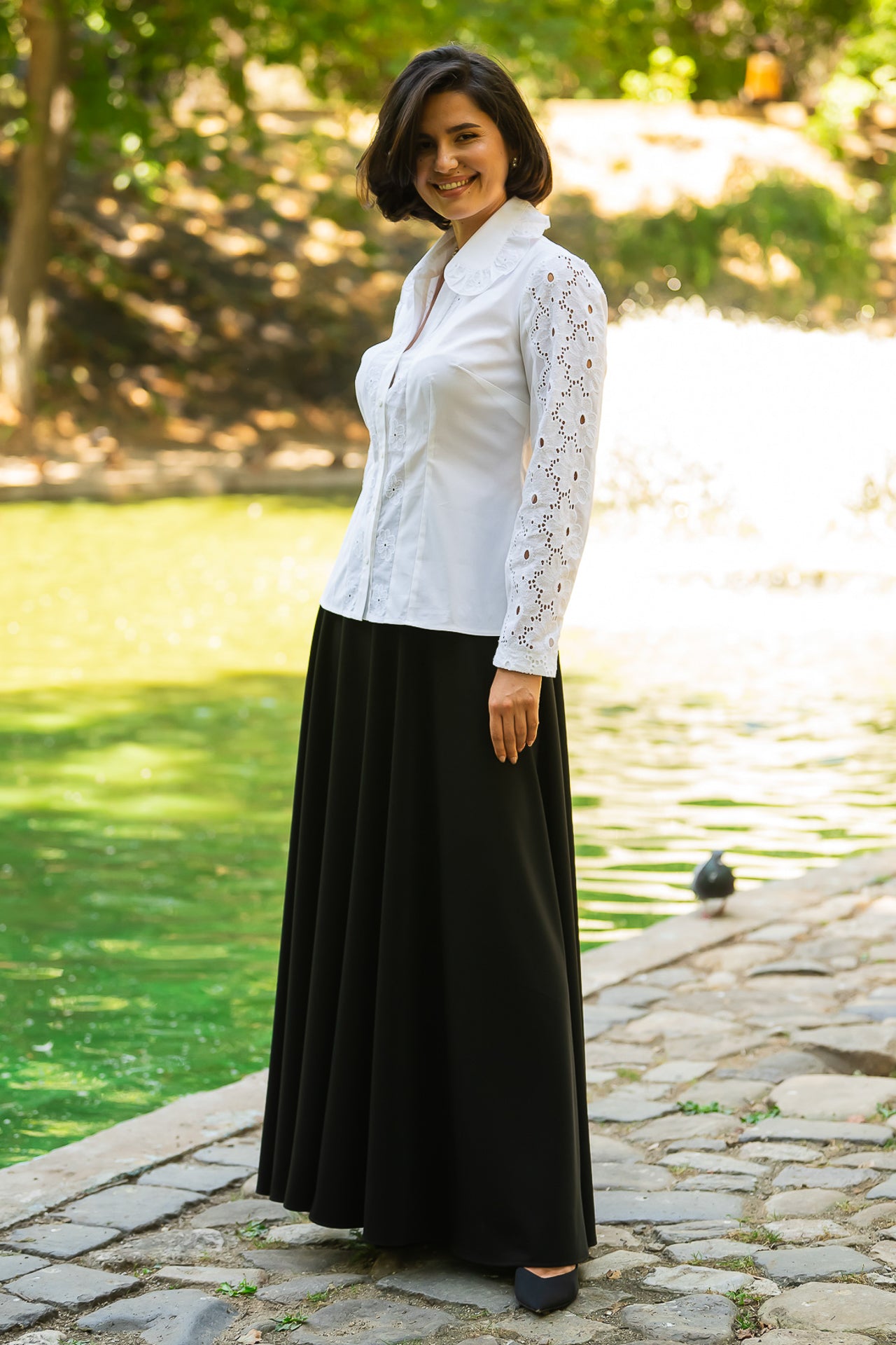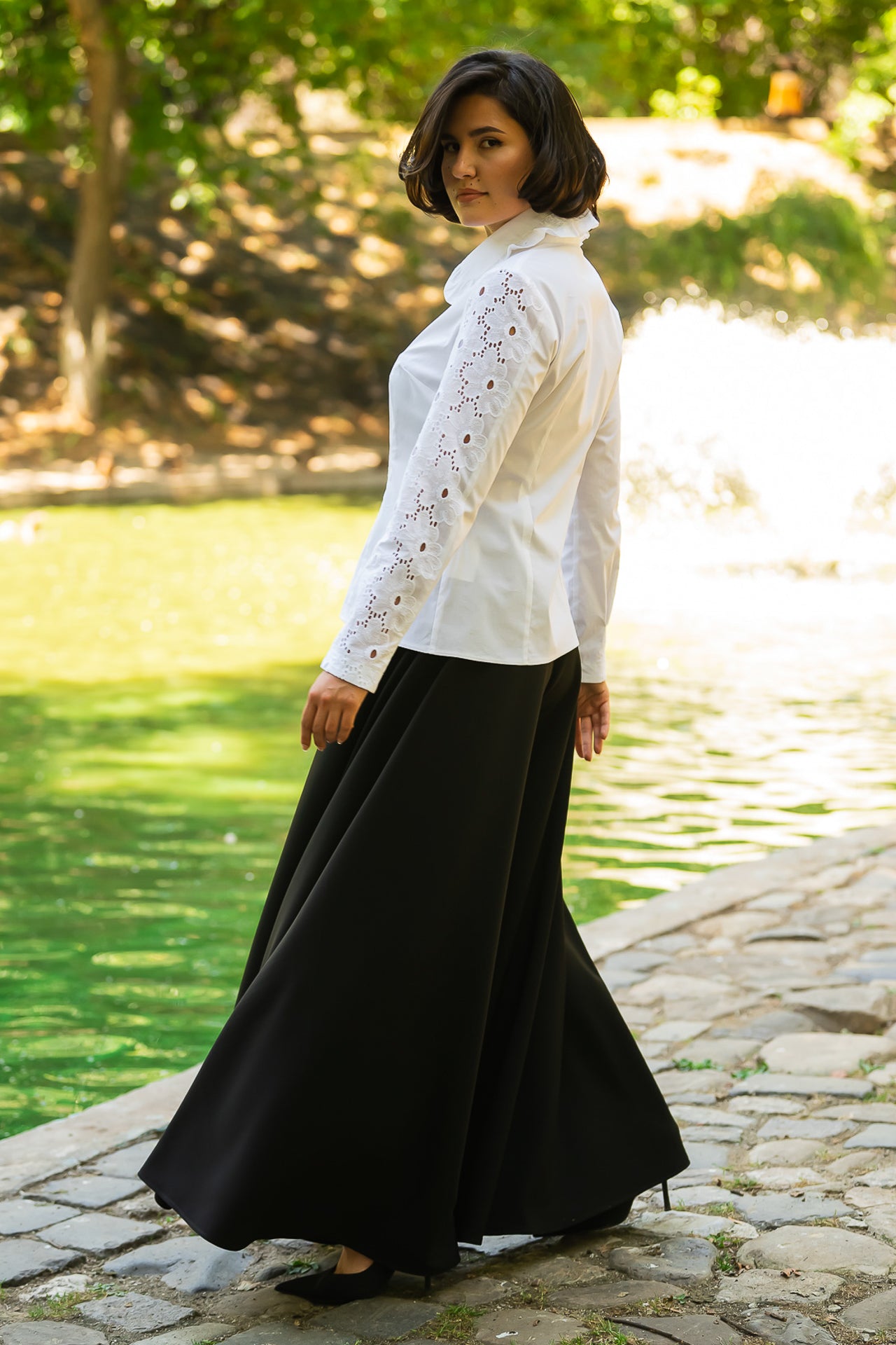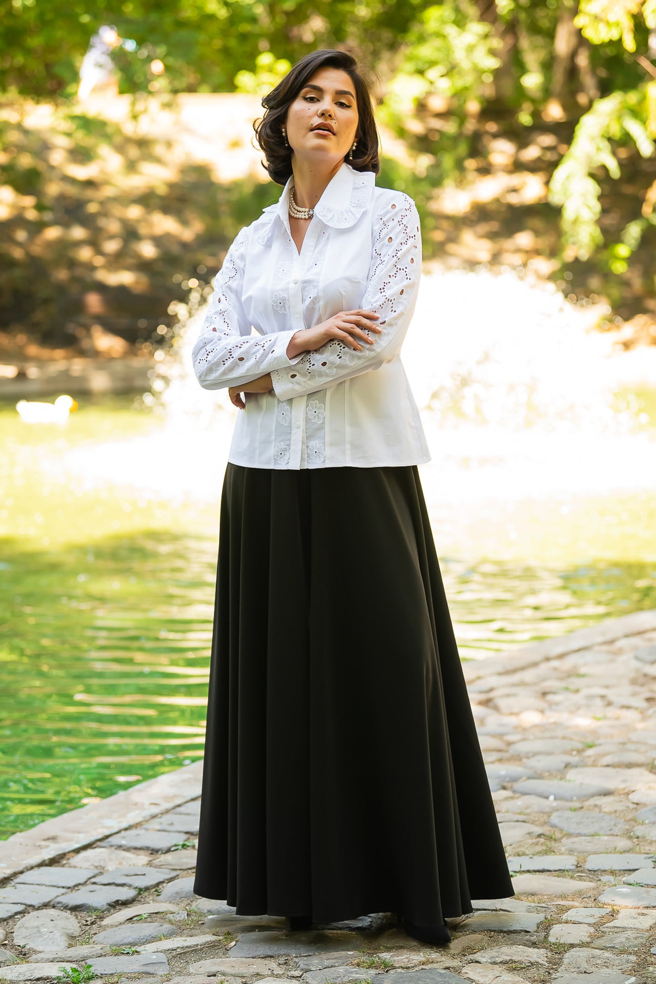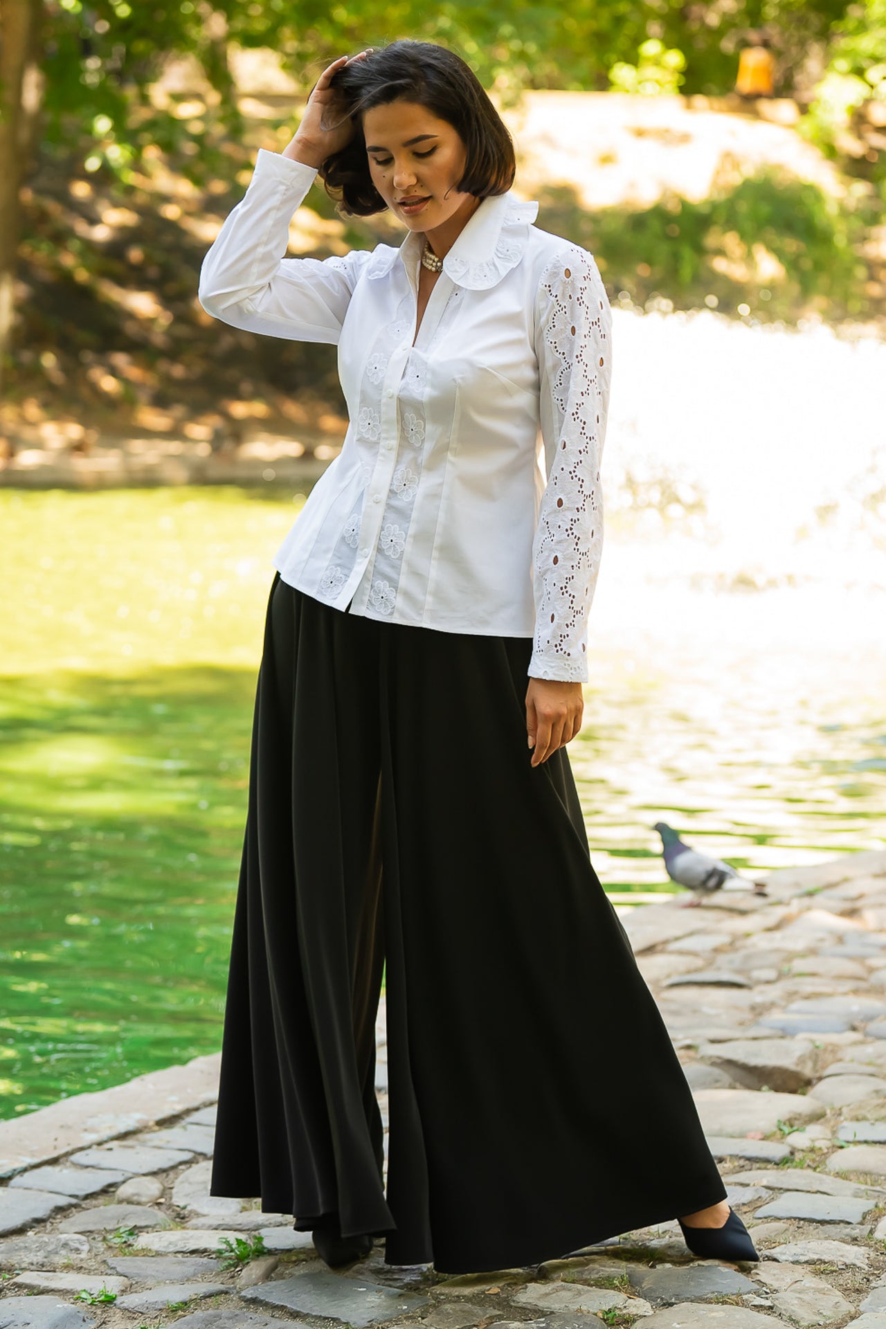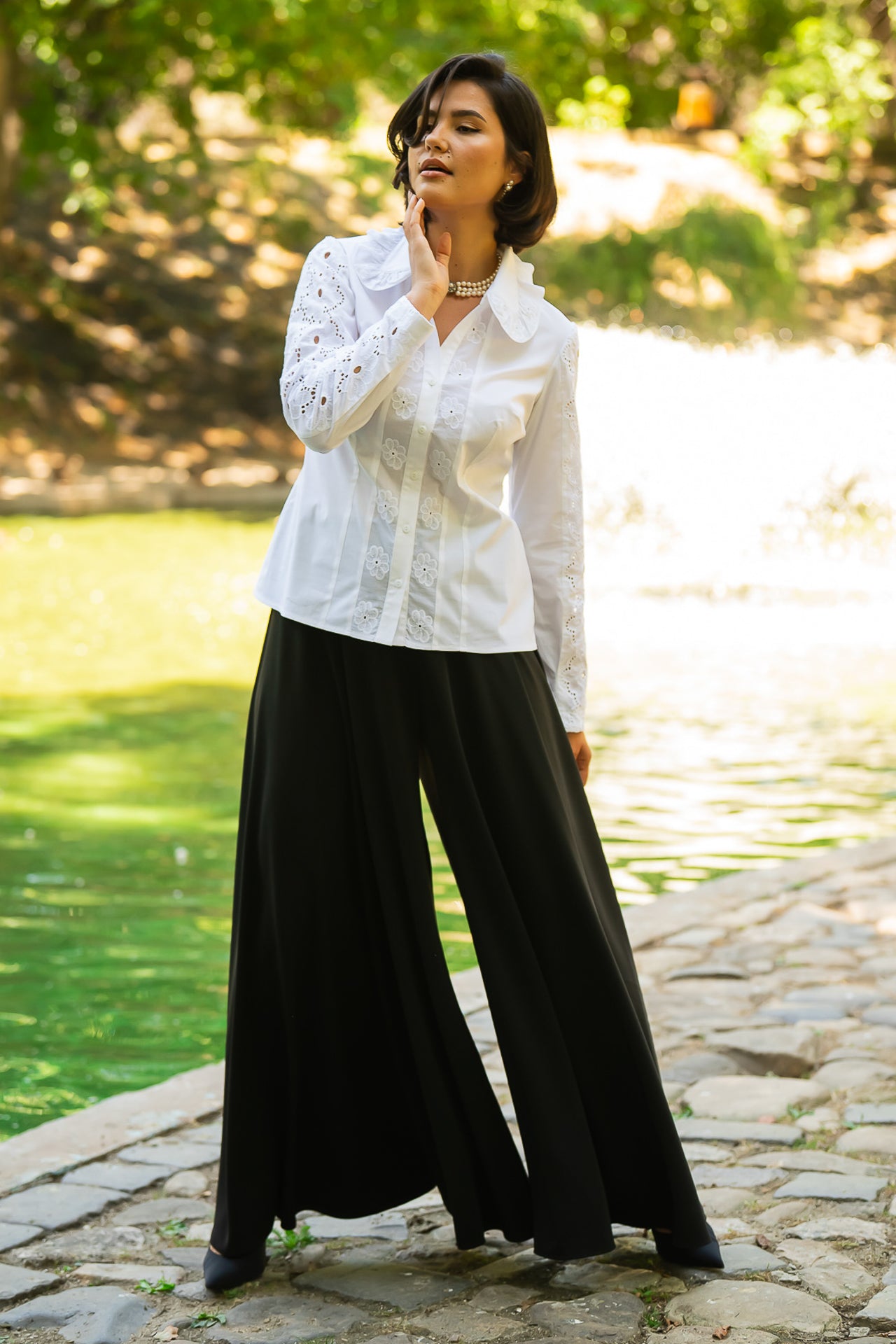 Cămașa cu broderie florală este o piesă feminină, elegantă și rafinată, care poate fi integrată cu succes într-o ținută elegantă cât și într-o ținută relaxată, cu fustă sau pantaloni.