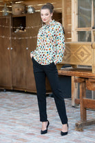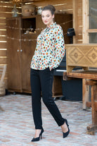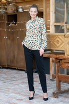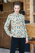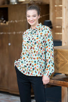Cămașa animal print pictural este confecționată din viscoză premium, imprimată digital cu motive geometrice.