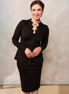 În imagini este asortată cu fusta noastră conică neagră, dar poate fi purtată și cu pantaloni.