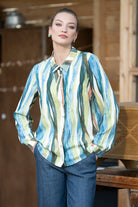 Mixul rafinat de culori și materialul fin și plăcut la atingere sunt atributele forte ale cămășii picturale.