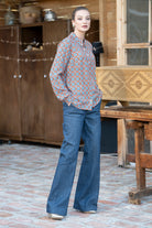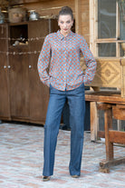 Mixul rafinat de culori și materialul fin și plăcut la atingere sunt atributele forte ale cămășii roata vieții.