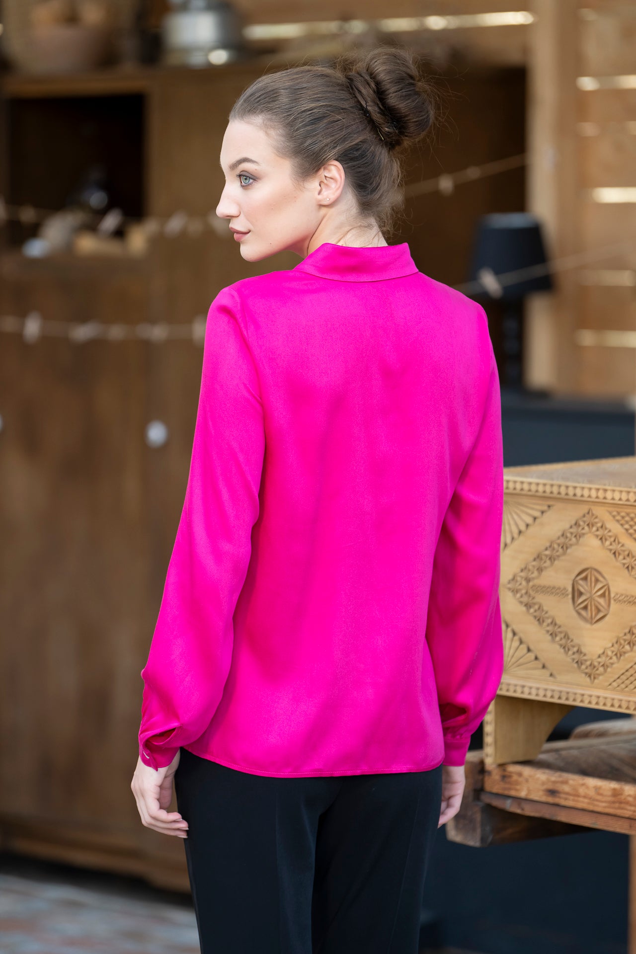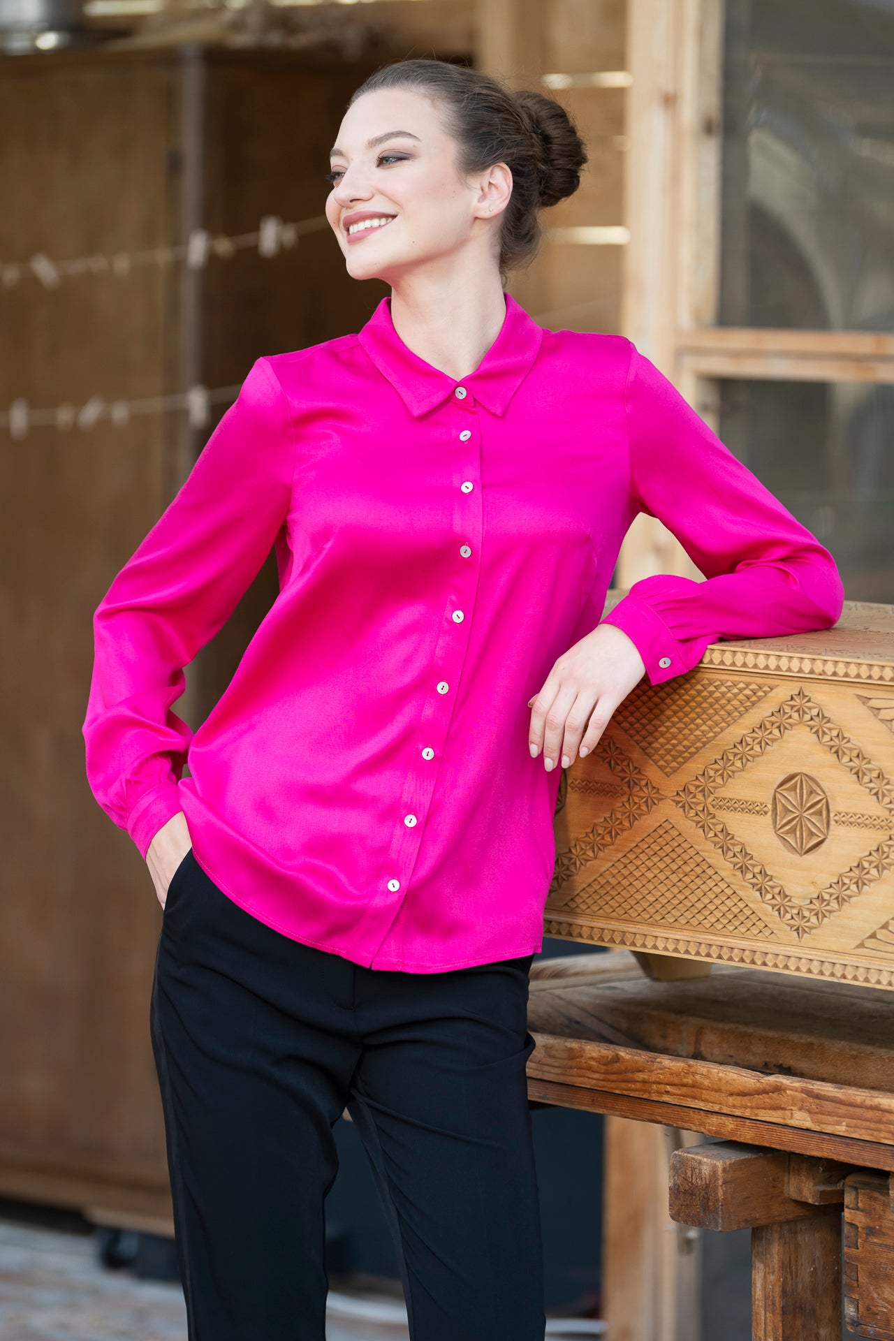 Cămașa roz fucsia din viscoză cu mătase