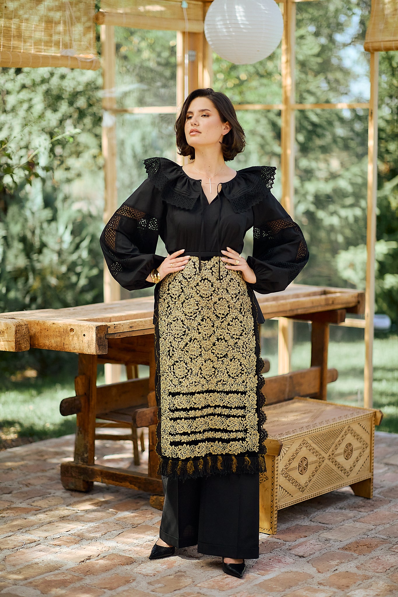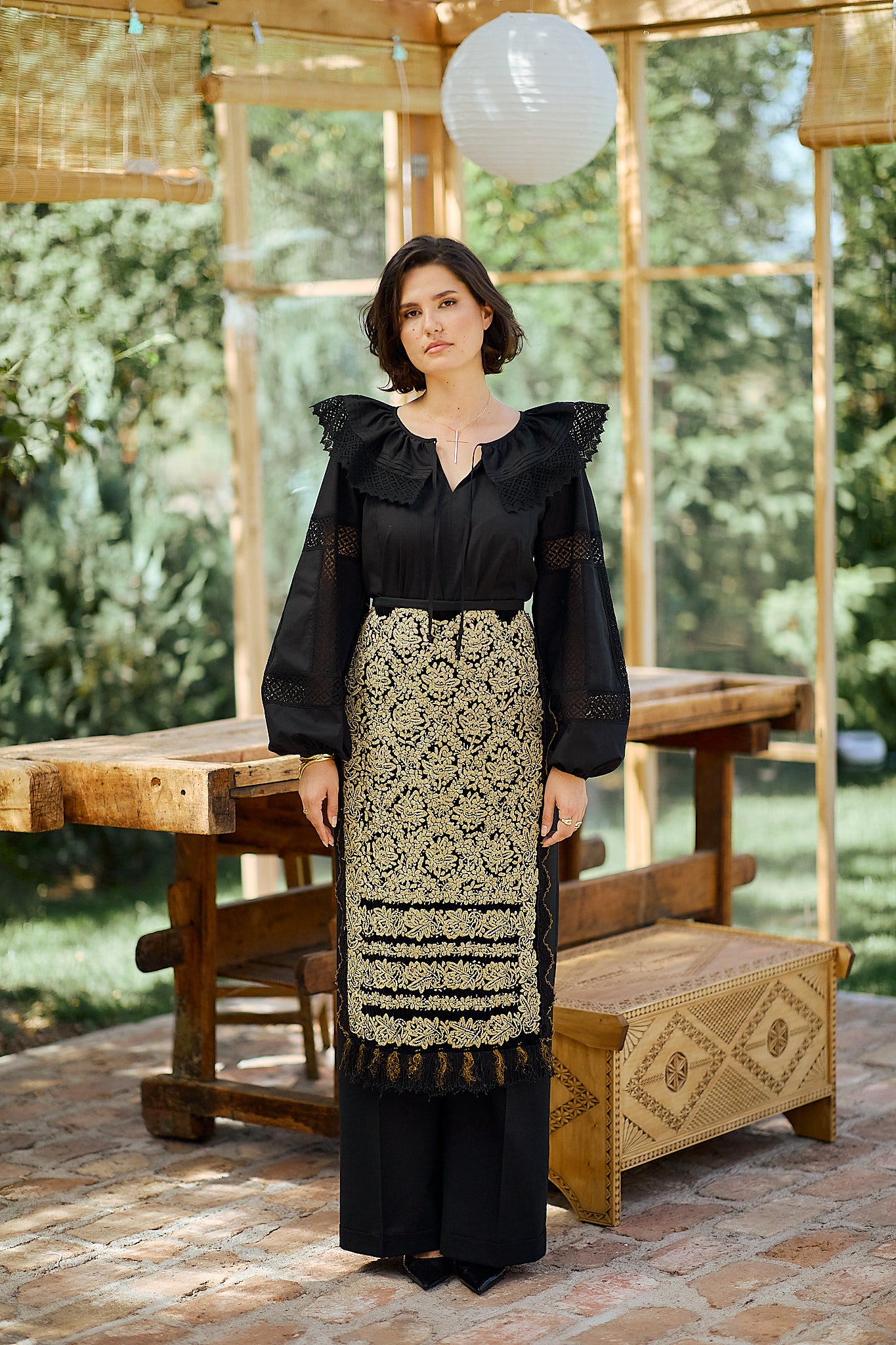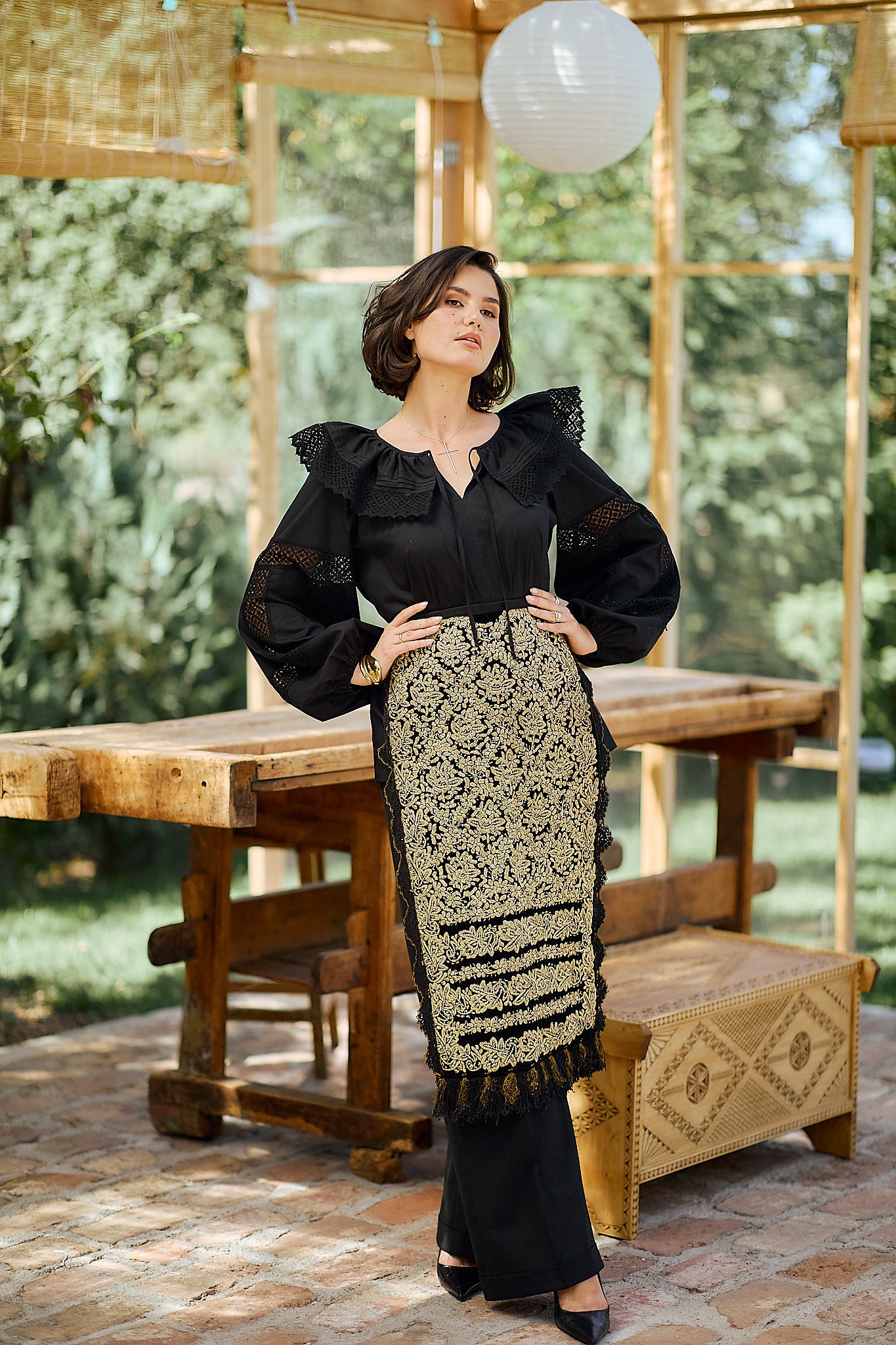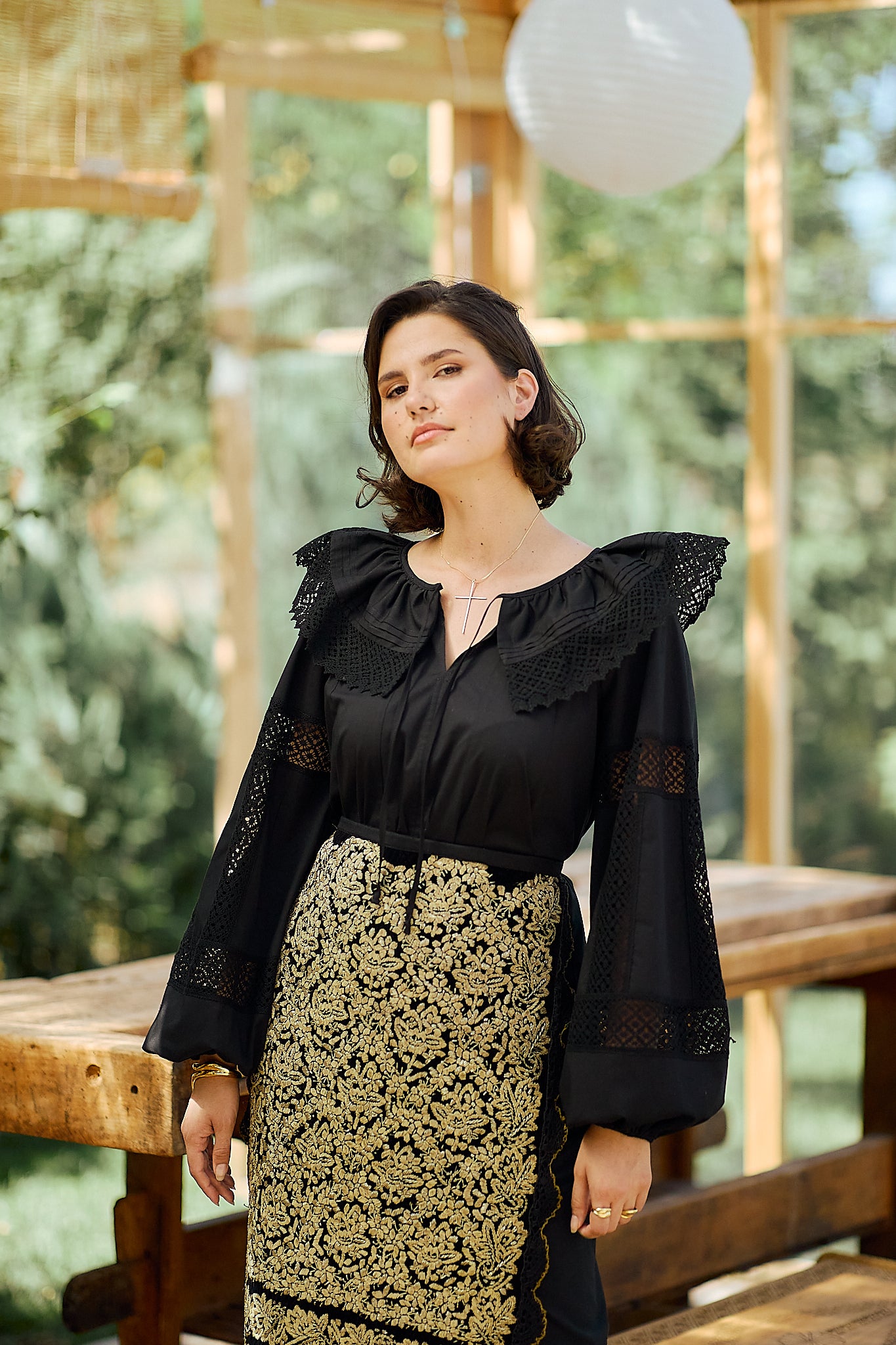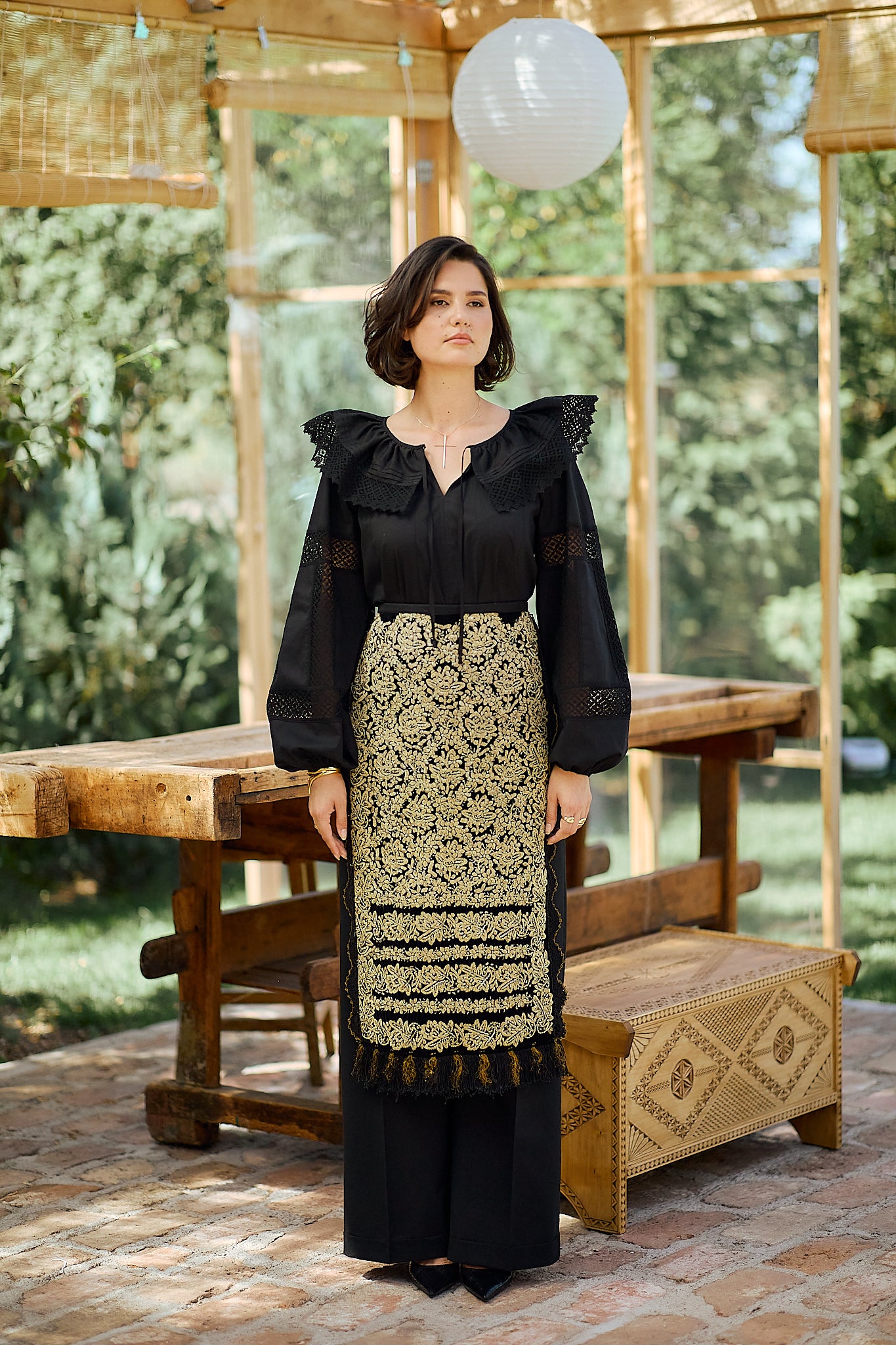 Ia stilizată Anita este confecționată din poplin de bumbac și dantelă tradițională din bumbac.