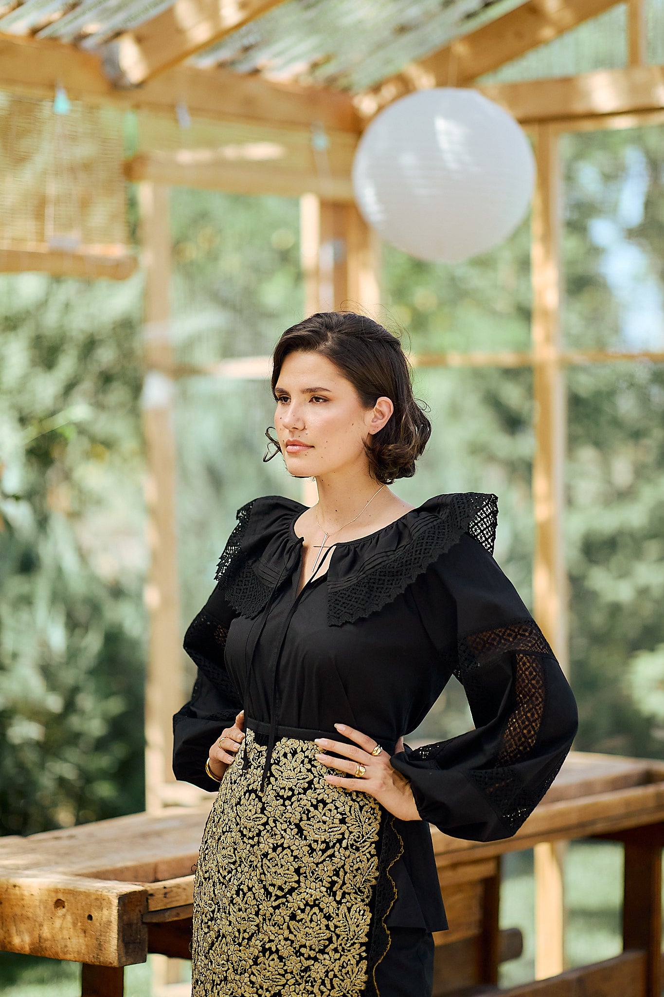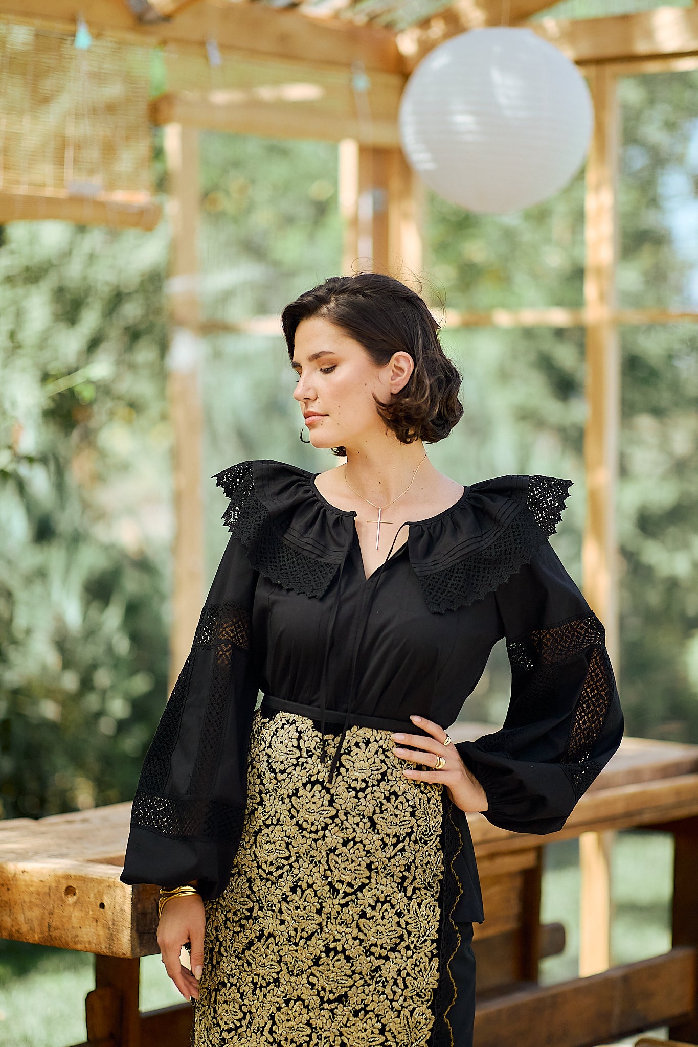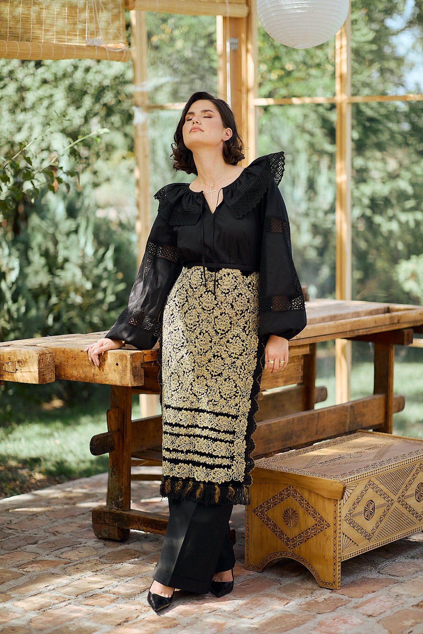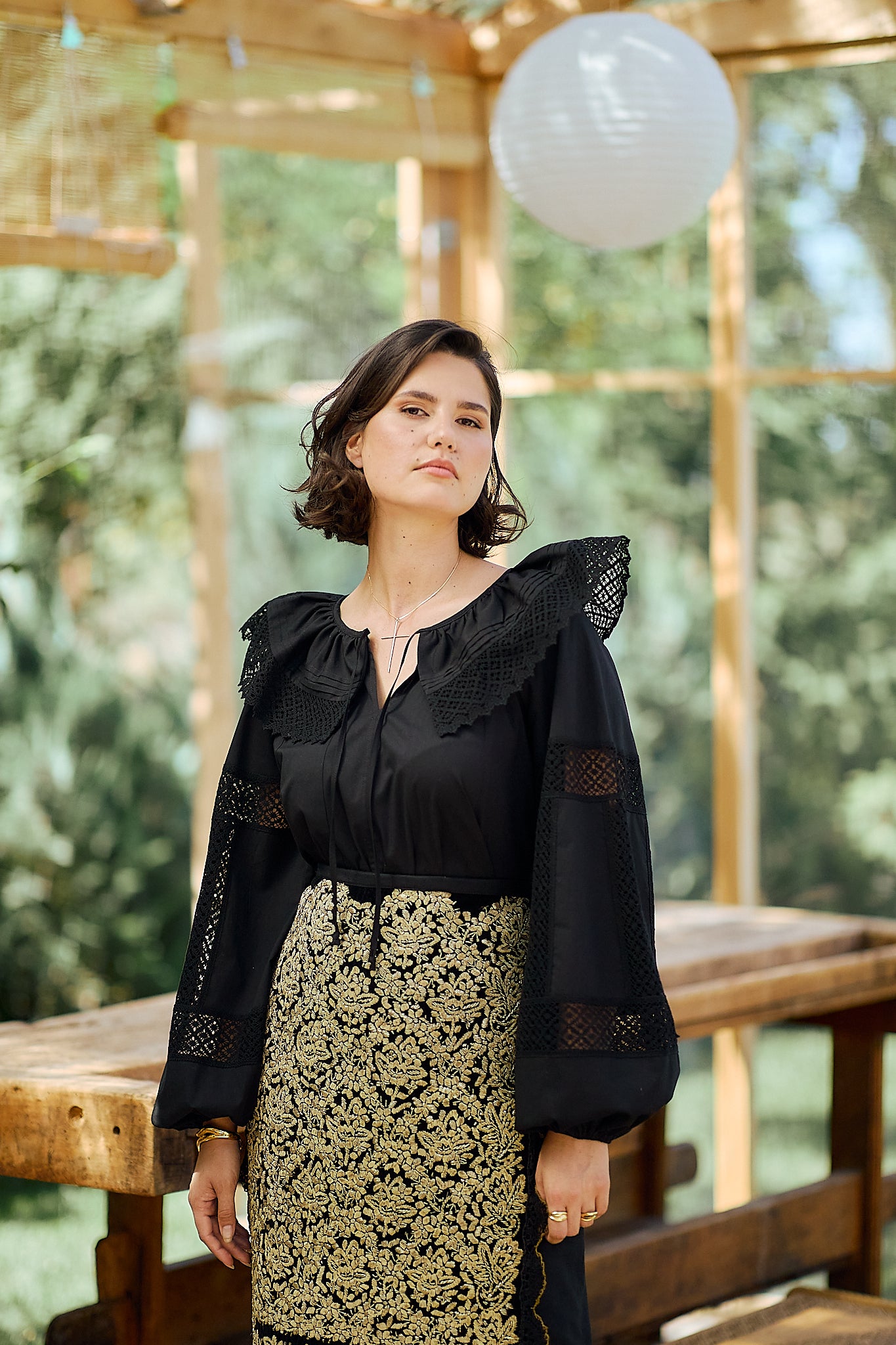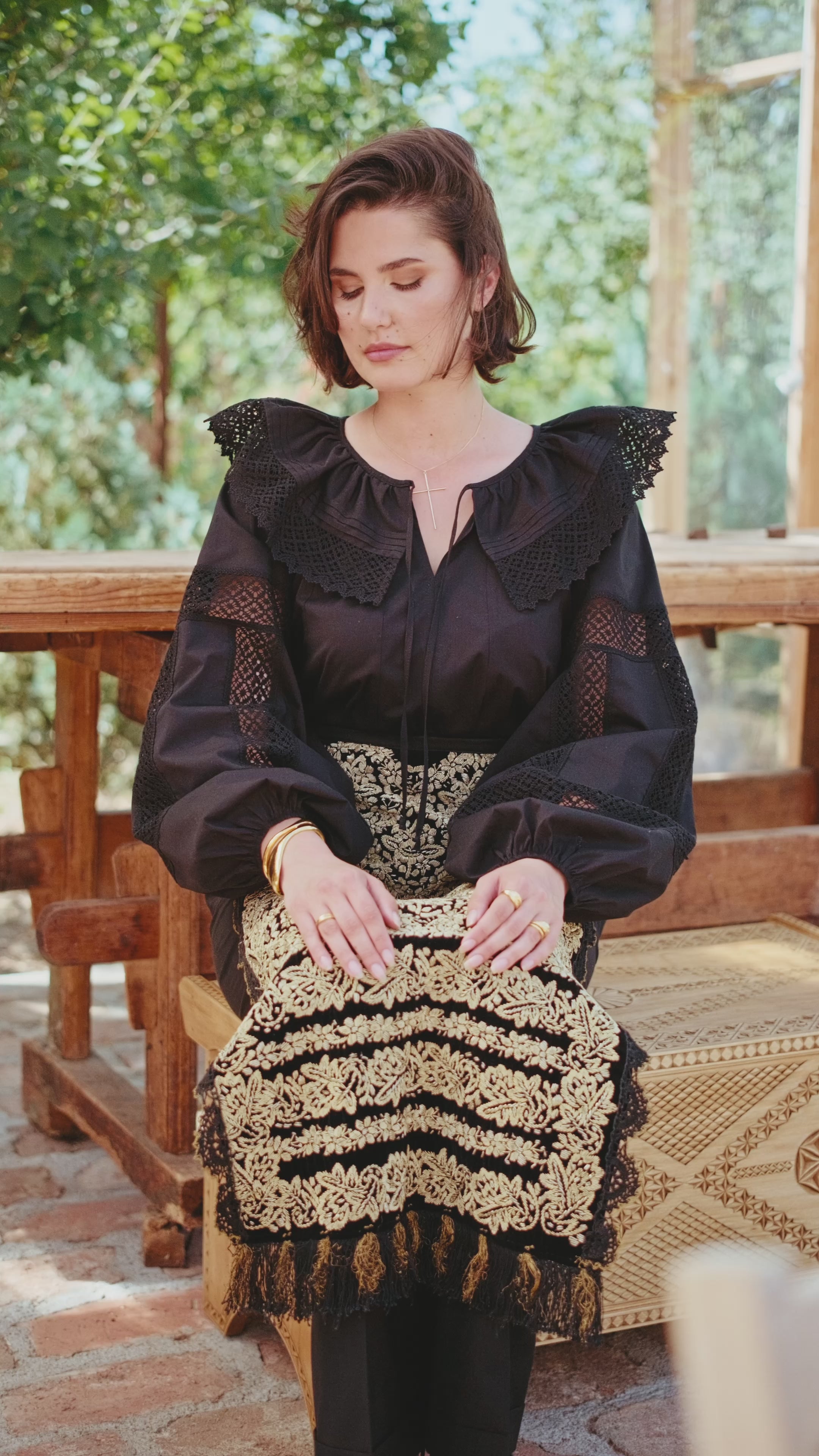 Ia stilizată Anita este confecționată din poplin de bumbac și dantelă tradițională din bumbac.
