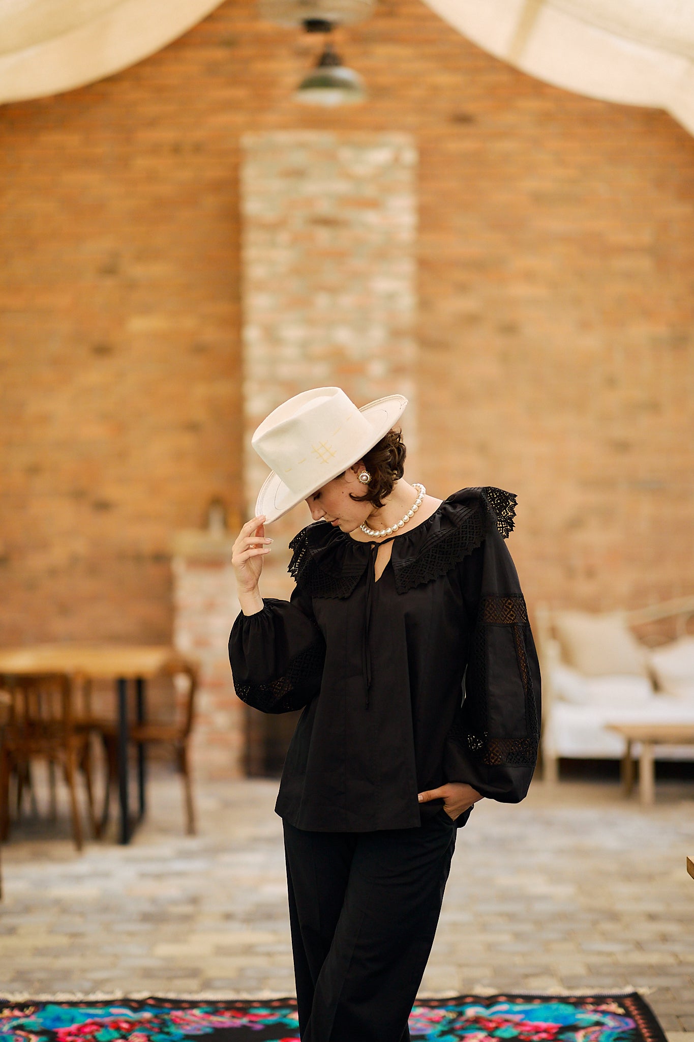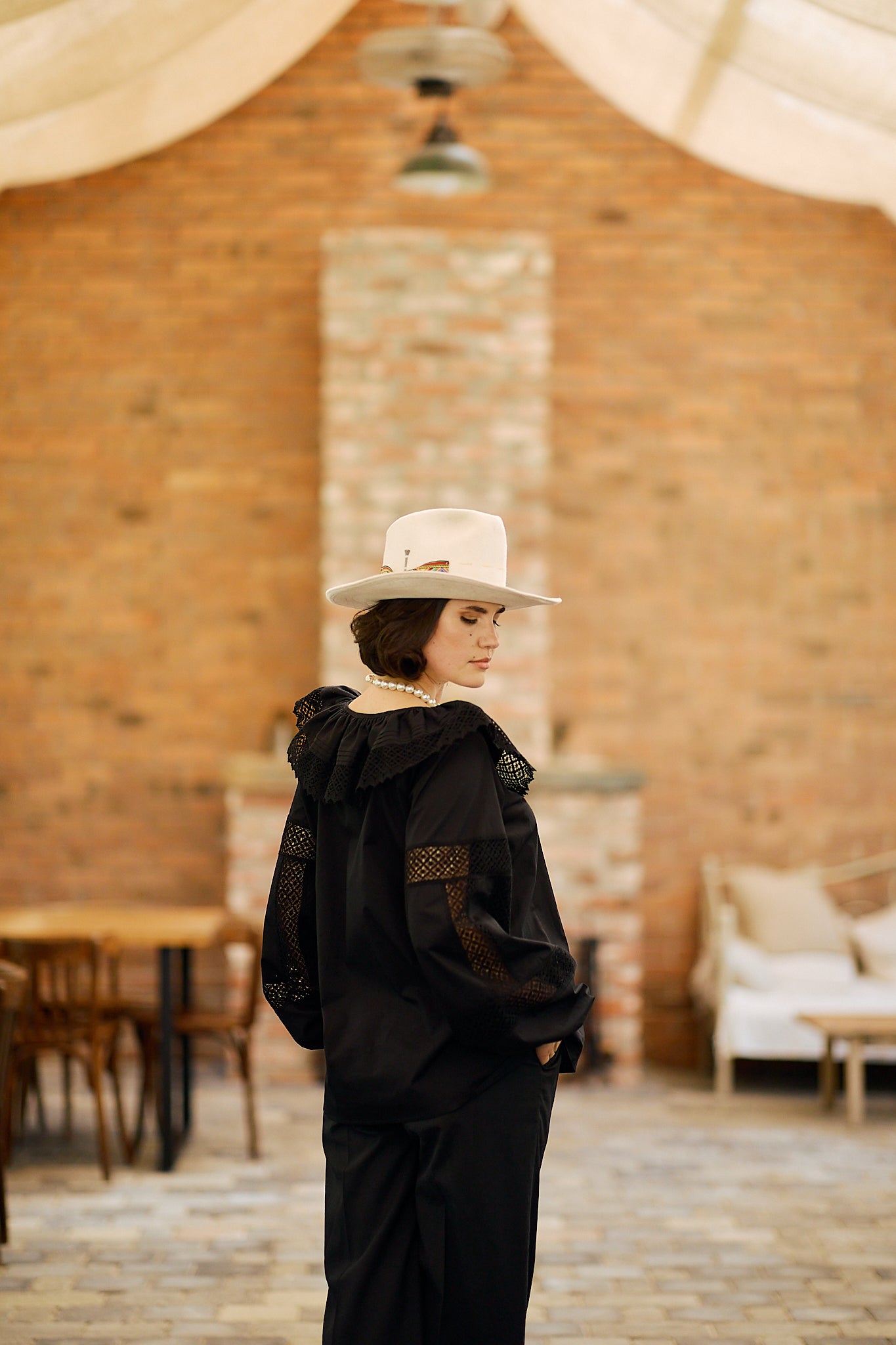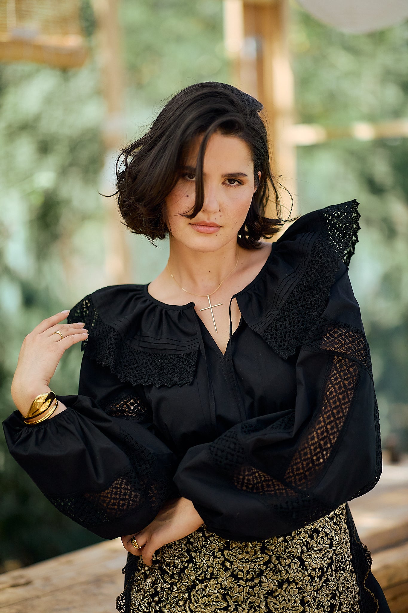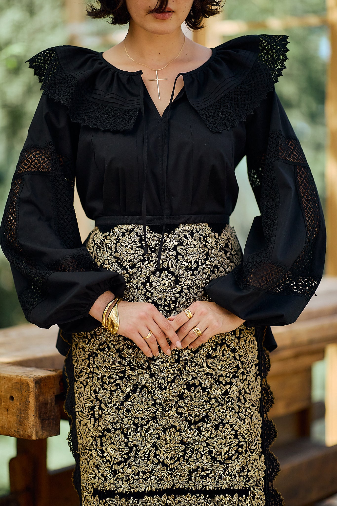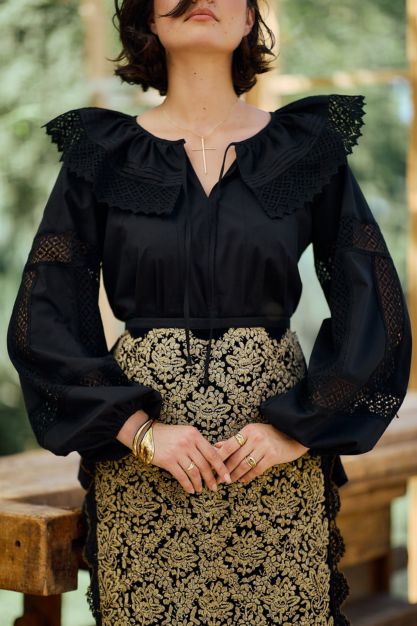 Ia stilizată Anita este confecționată din poplin de bumbac și dantelă tradițională din bumbac.