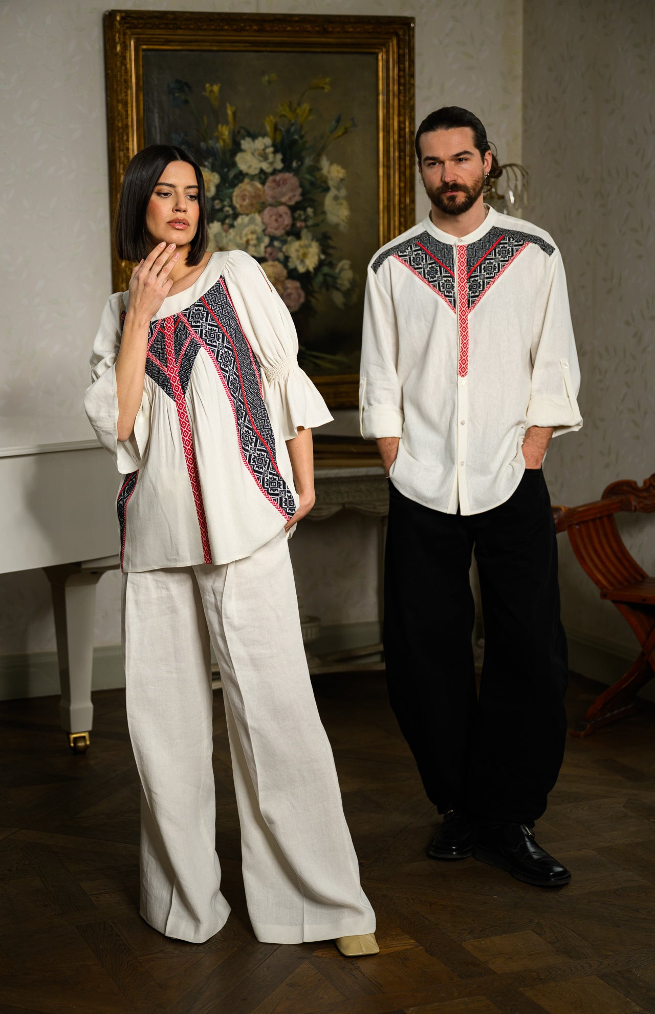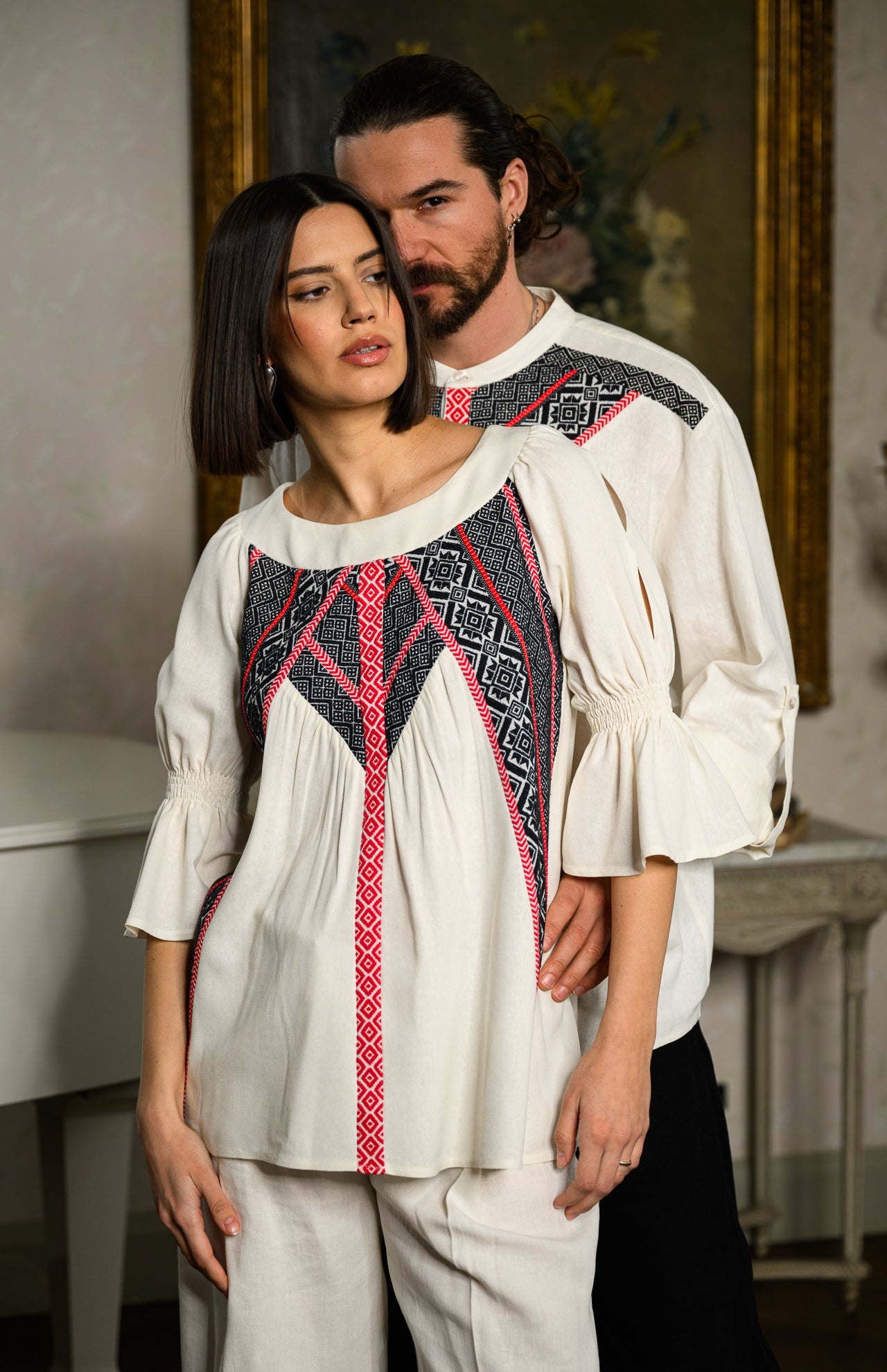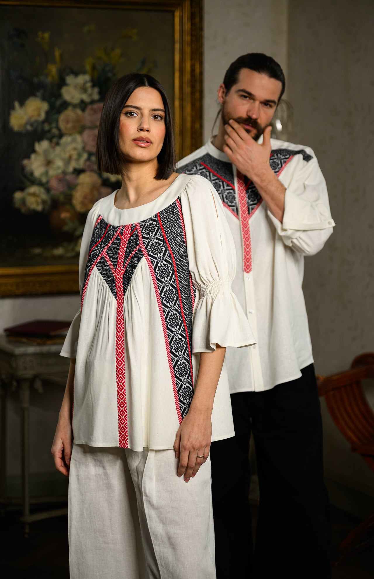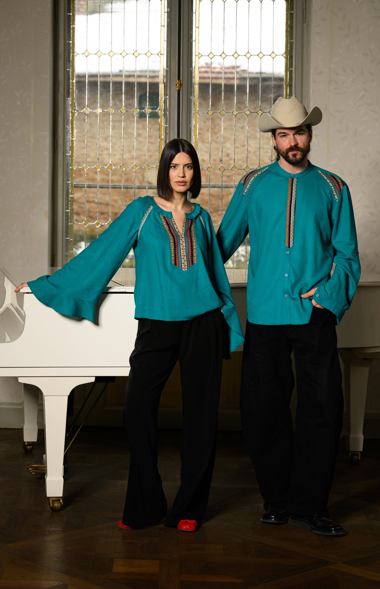 Jupân - Inspirată din poveștile folclorice, design-ul cămășii are la bază câteva elemente importante. Inul prespălat, cu platcă, epoleții și manșetele din jacquard etnic țesut se îmbină armonios pentru a definitiva un stil autentic. Oferă, de asemneea, o croială arhaică dreaptă, cu mânecile amplu croite. Simbolul jupânului inspiră putere și eleganță.