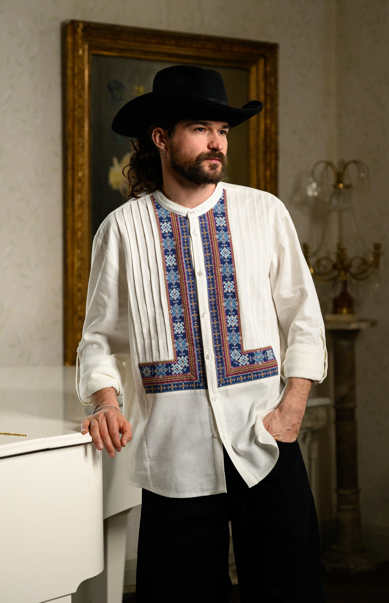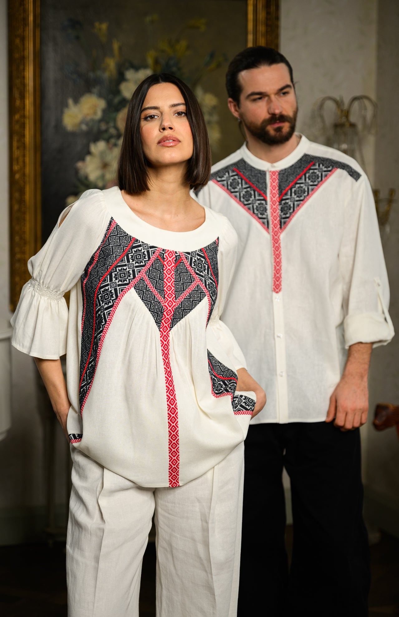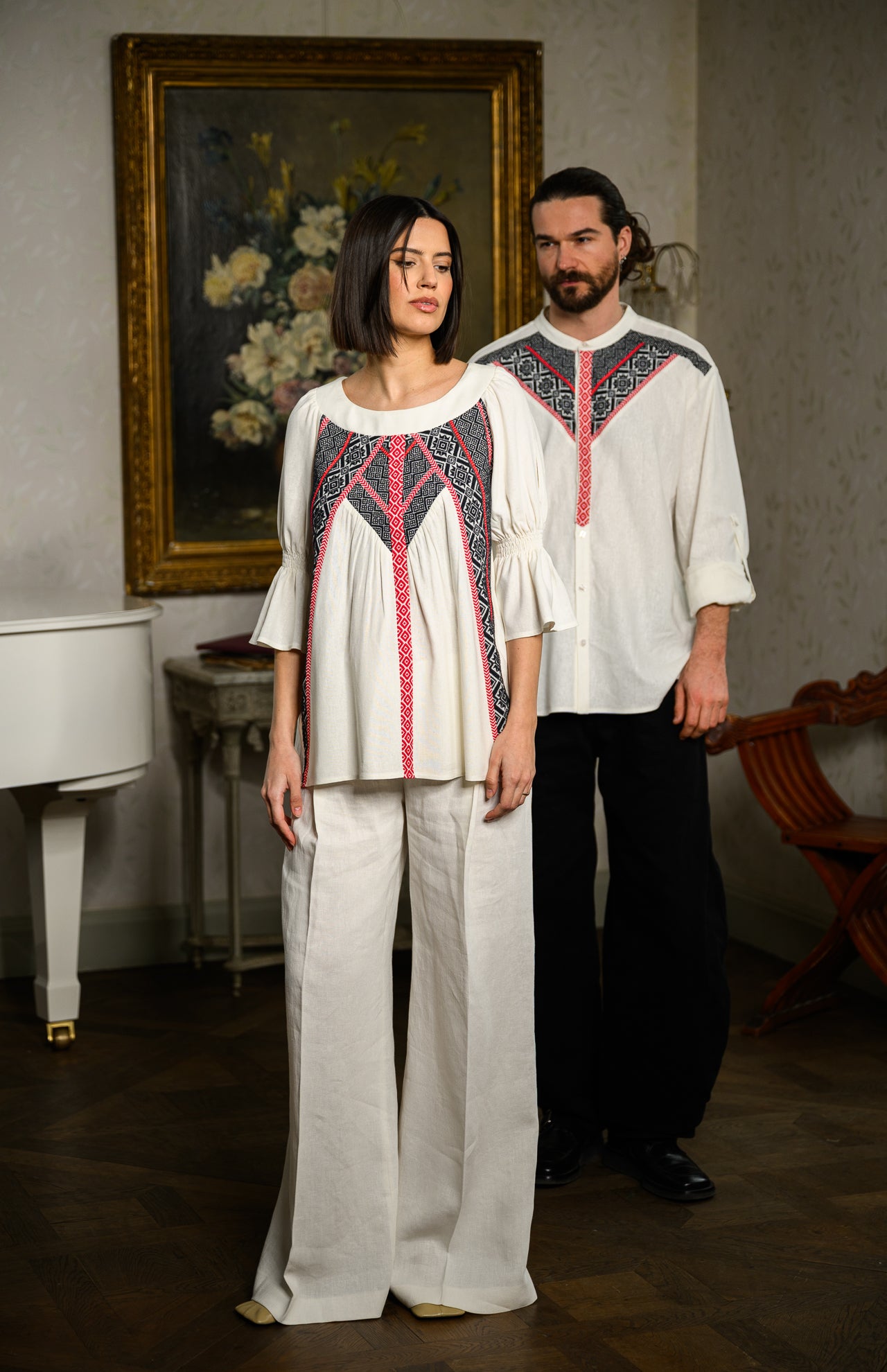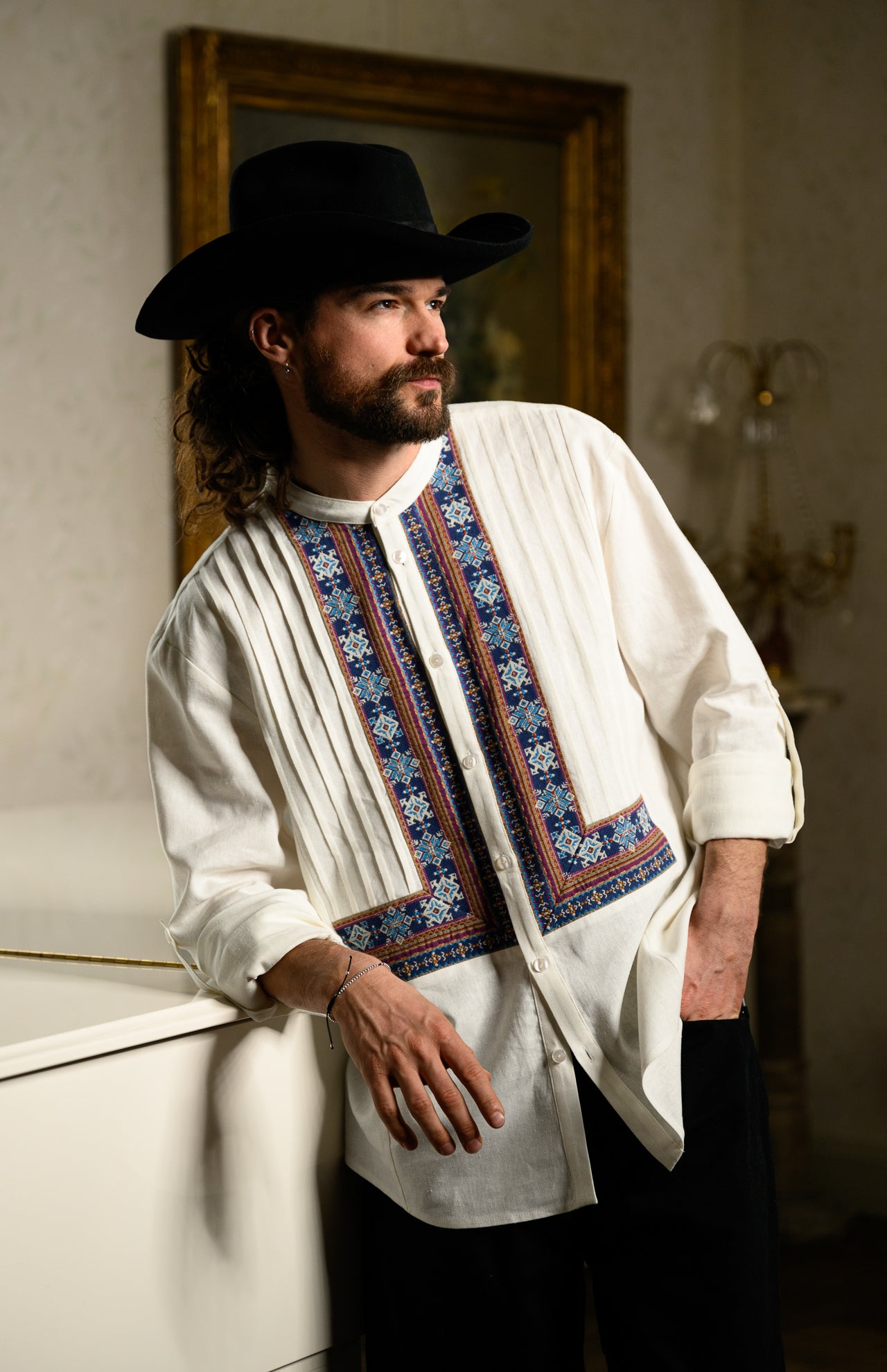 Jupân - Inspirată din poveștile folclorice, design-ul cămășii are la bază câteva elemente importante. Inul prespălat, cu platcă, epoleții și manșetele din jacquard etnic țesut se îmbină armonios pentru a definitiva un stil autentic. Oferă, de asemneea, o croială arhaică dreaptă, cu mânecile amplu croite. Simbolul jupânului inspiră putere și eleganță.