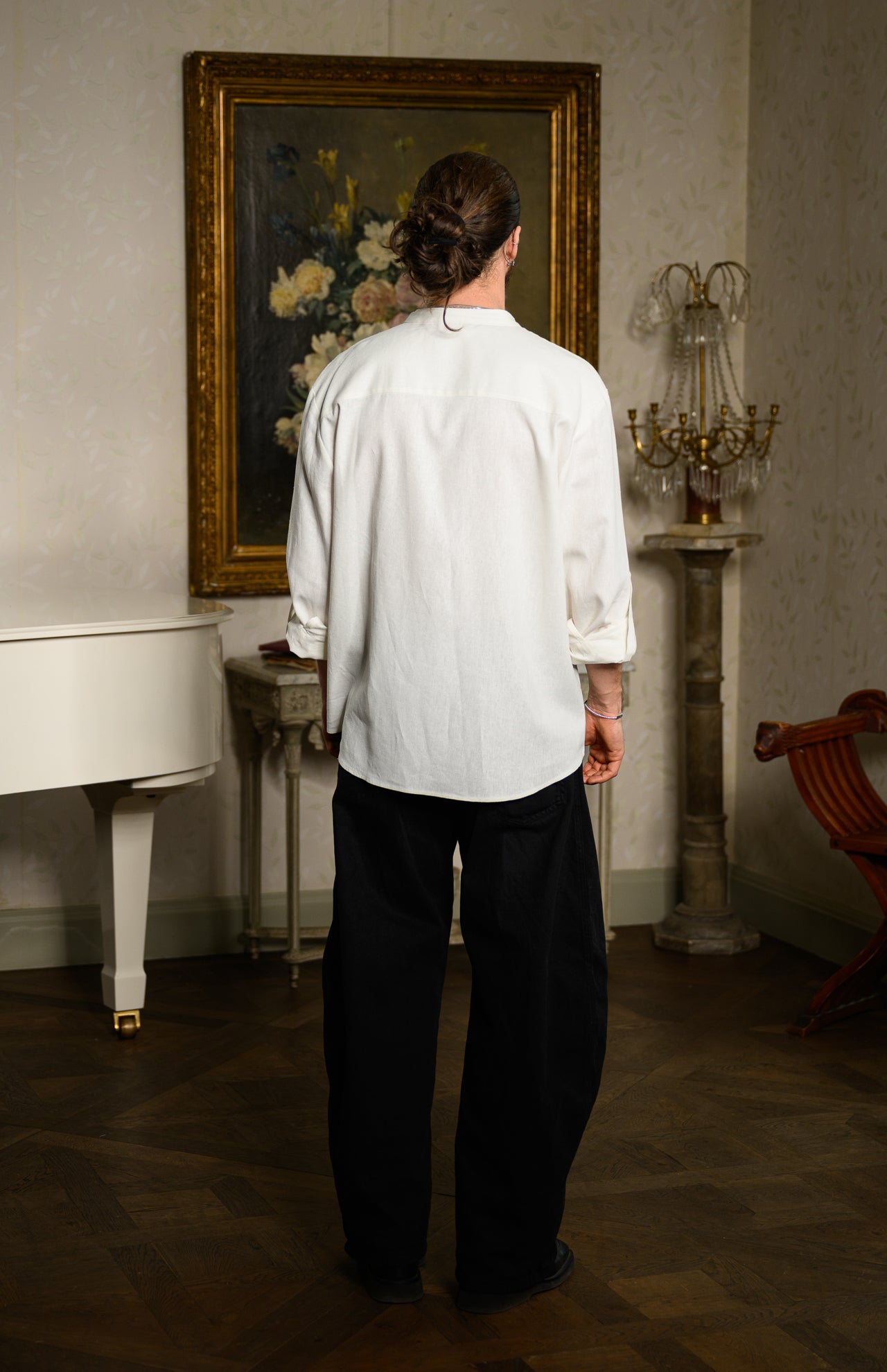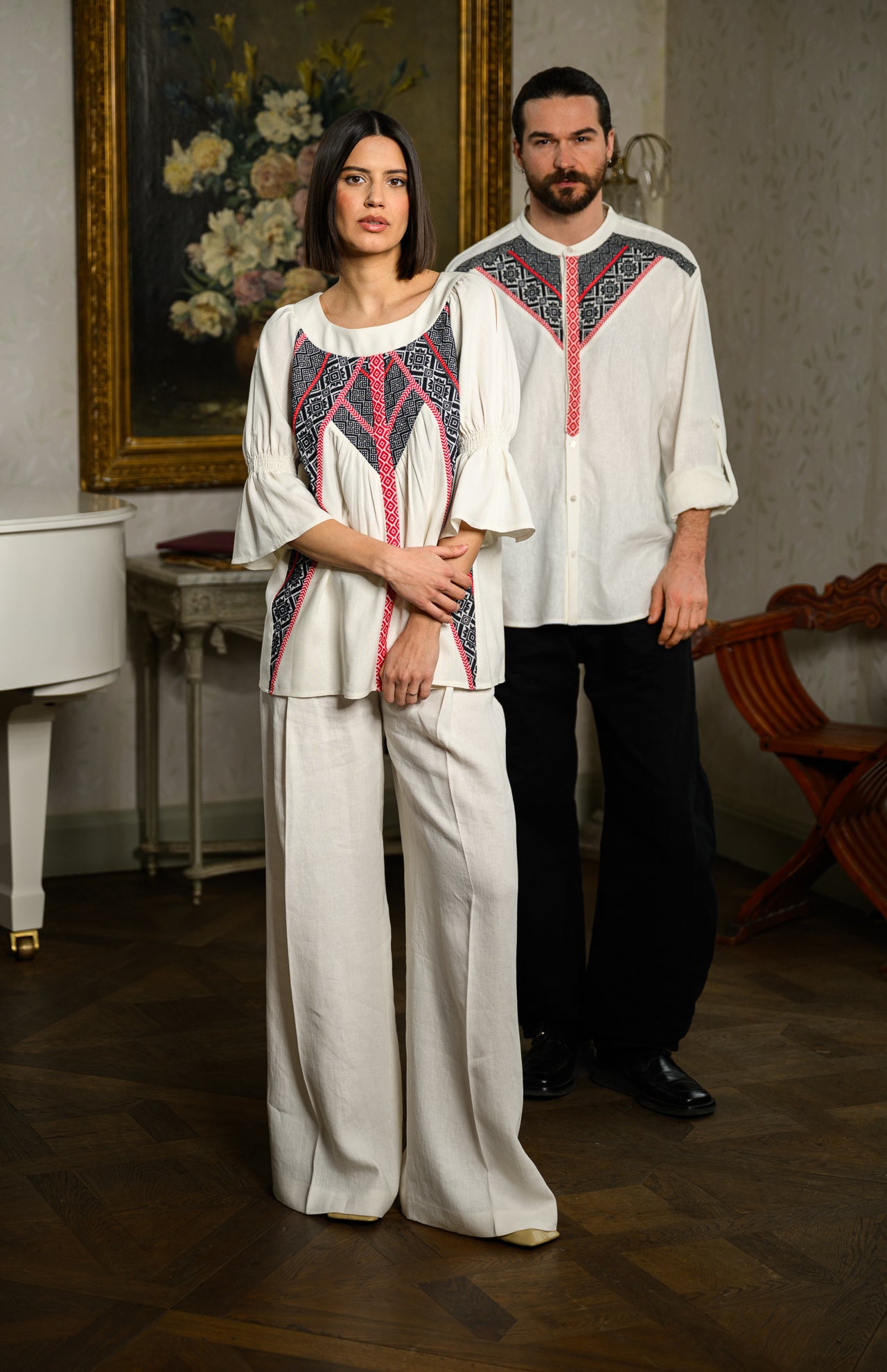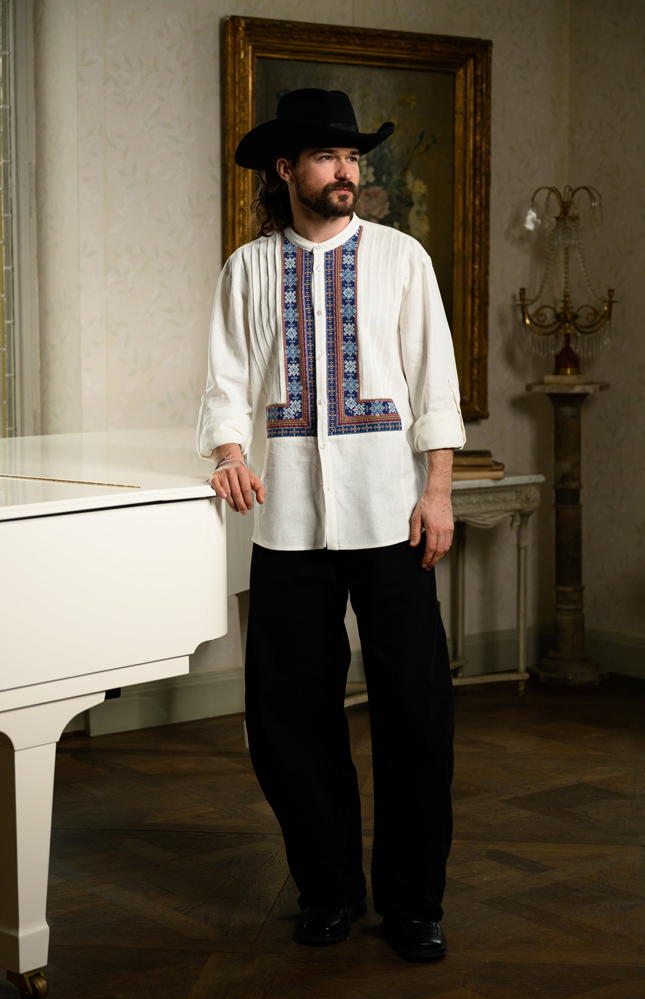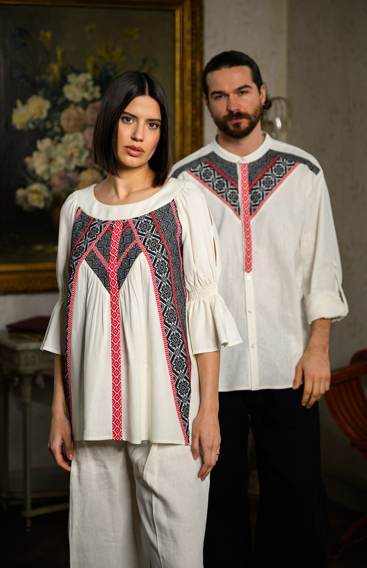Jupân - Inspirată din poveștile folclorice, design-ul cămășii are la bază câteva elemente importante. Inul prespălat, cu platcă, epoleții și manșetele din jacquard etnic țesut se îmbină armonios pentru a definitiva un stil autentic. Oferă, de asemneea, o croială arhaică dreaptă, cu mânecile amplu croite. Simbolul jupânului inspiră putere și eleganță.