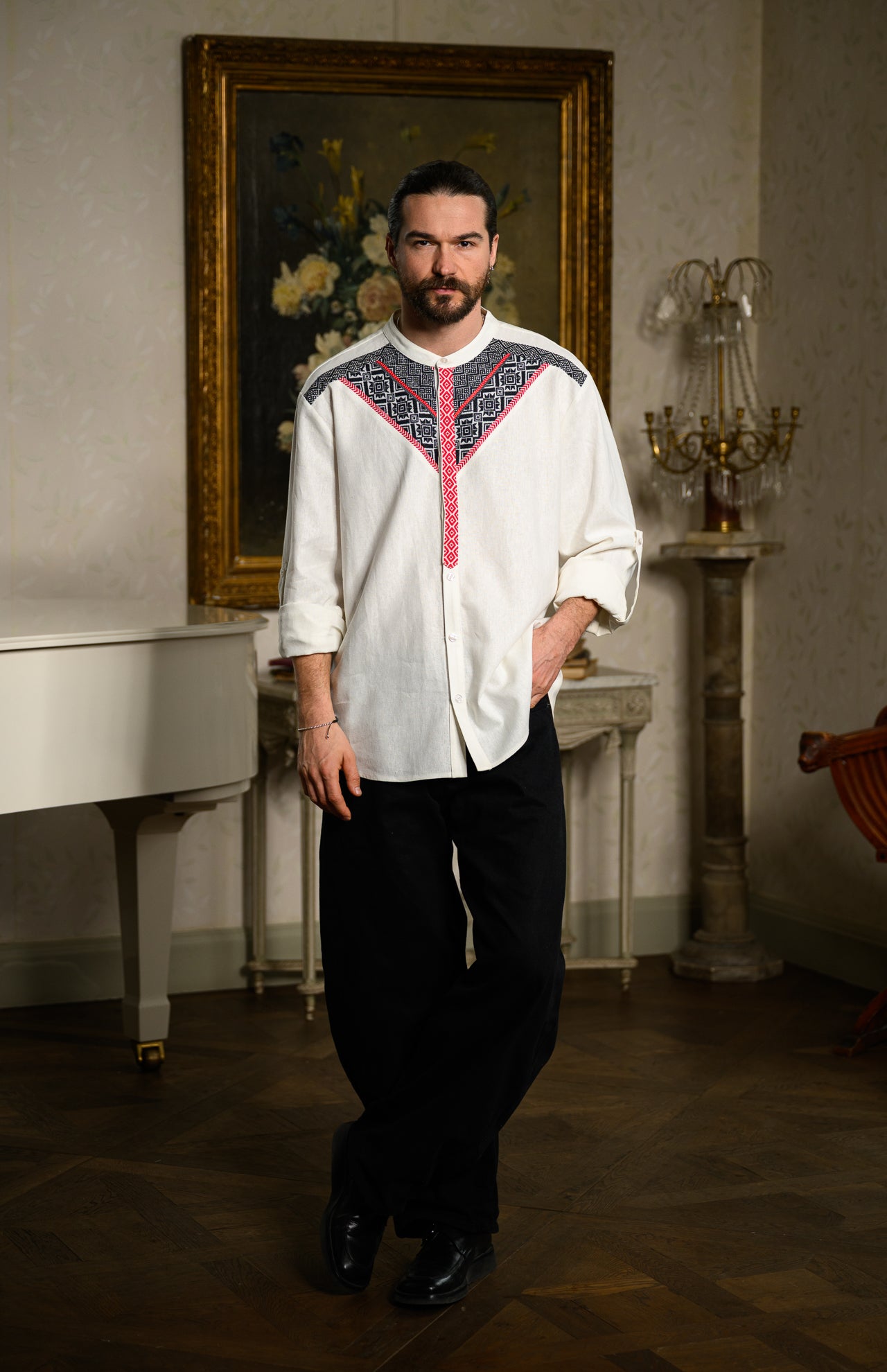 Pământ - Unul dintre cele mai reprezentative elemente din istoria românilor. Din cele mai vechi timpuri, oamenii au lucrat pământul și s-au ocupat de muncile câmpului. O camasa traditionala barbati care integrează motivul pământului evidențiază cu succes vechile tradiții, prin alăturarea modelelelor reprezentative.