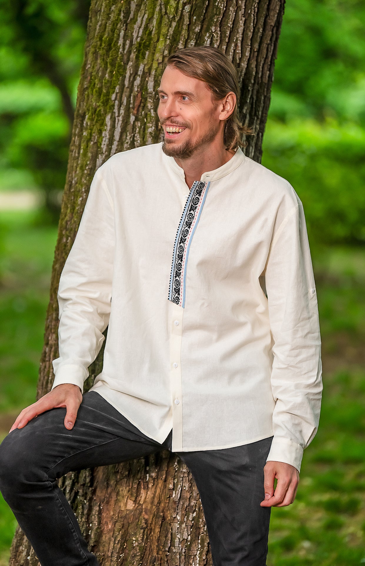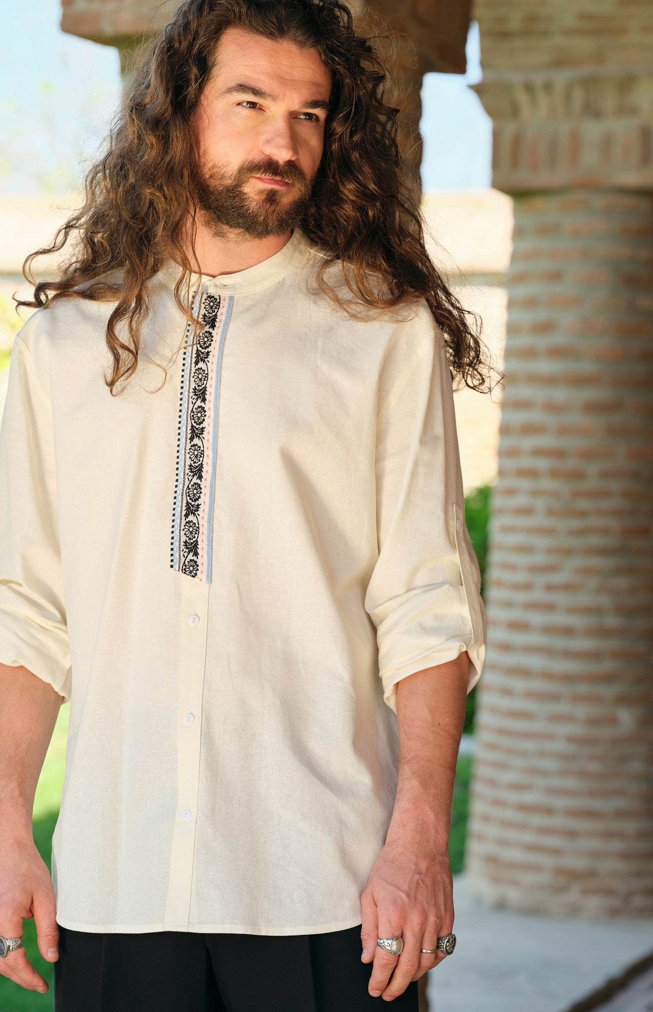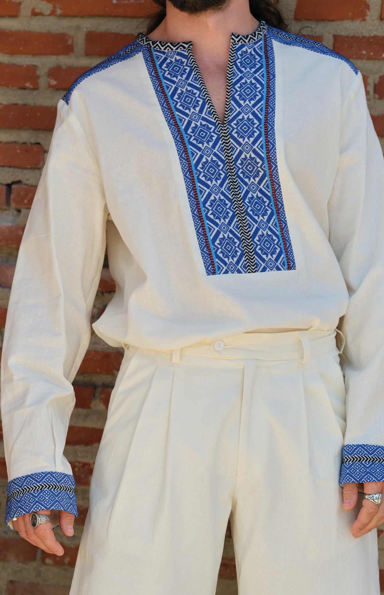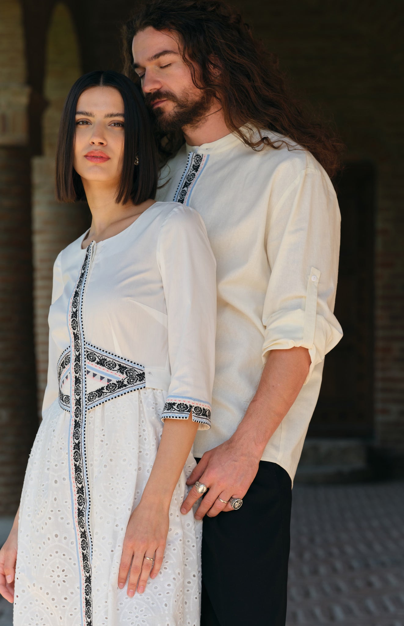 Jupân - Inspirată din poveștile folclorice, design-ul cămășii are la bază câteva elemente importante. Inul prespălat, cu platcă, epoleții și manșetele din jacquard etnic țesut se îmbină armonios pentru a definitiva un stil autentic. Oferă, de asemneea, o croială arhaică dreaptă, cu mânecile amplu croite. Simbolul jupânului inspiră putere și eleganță.