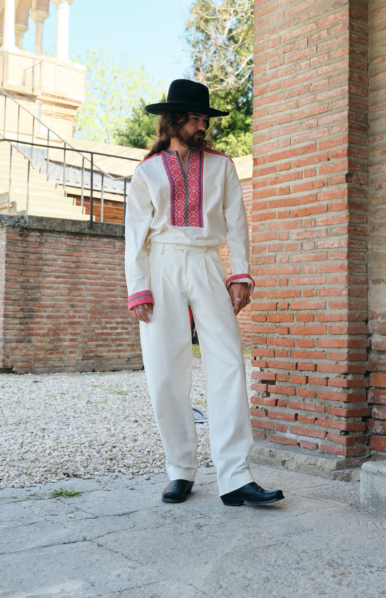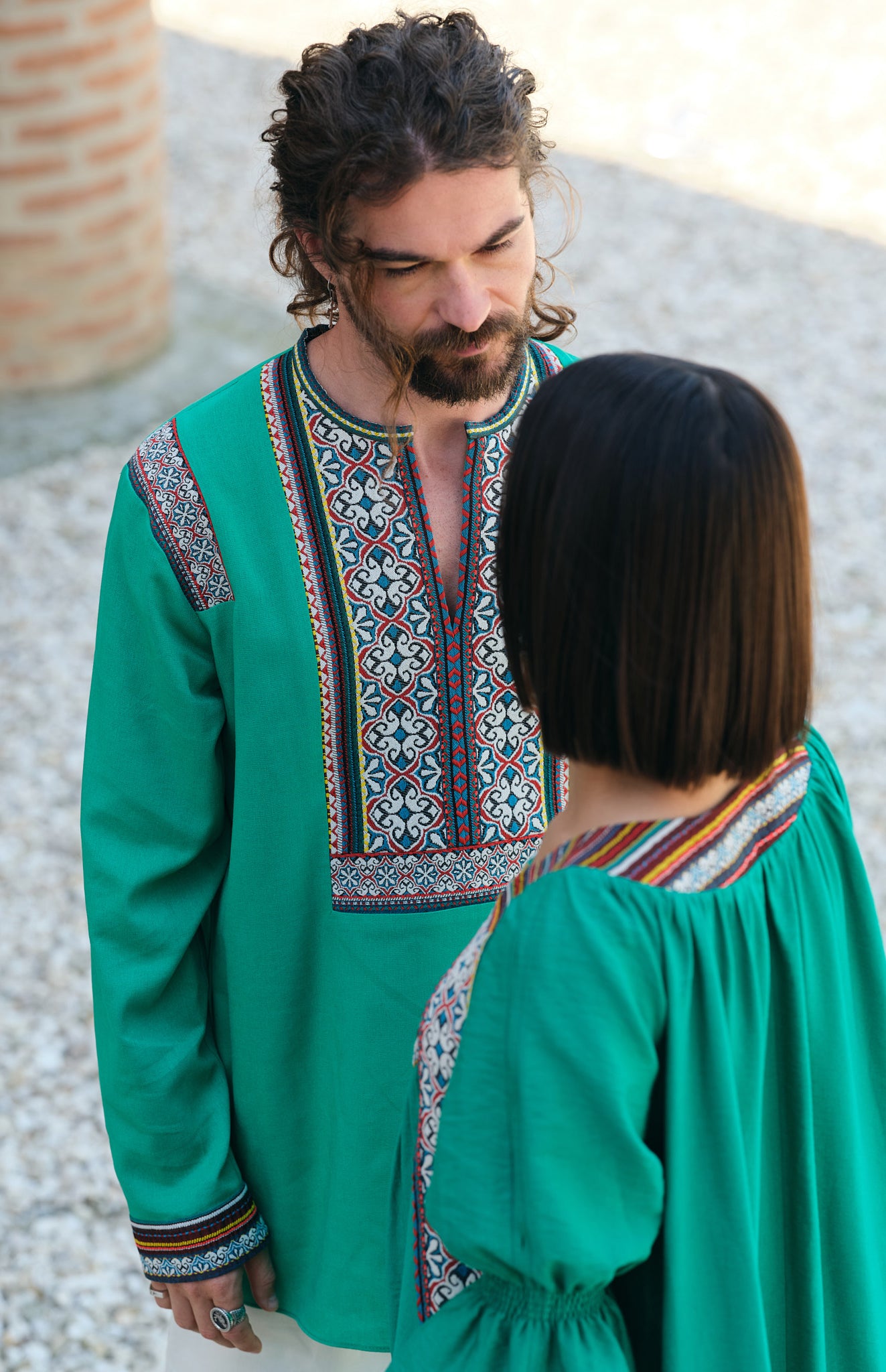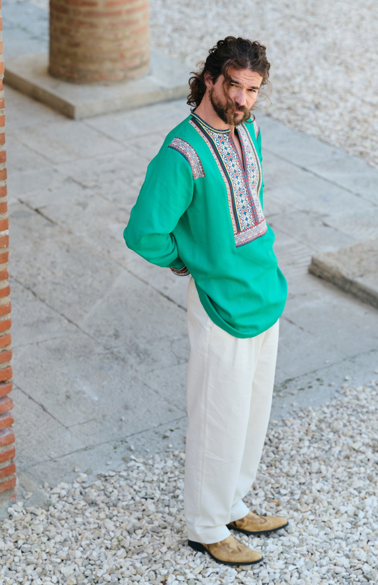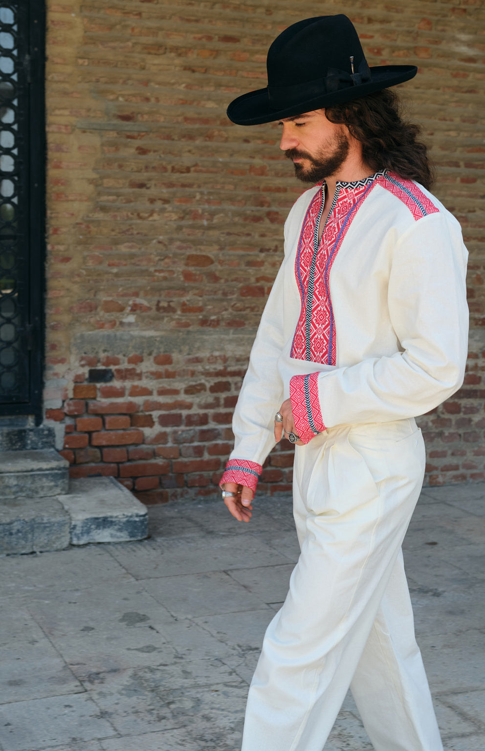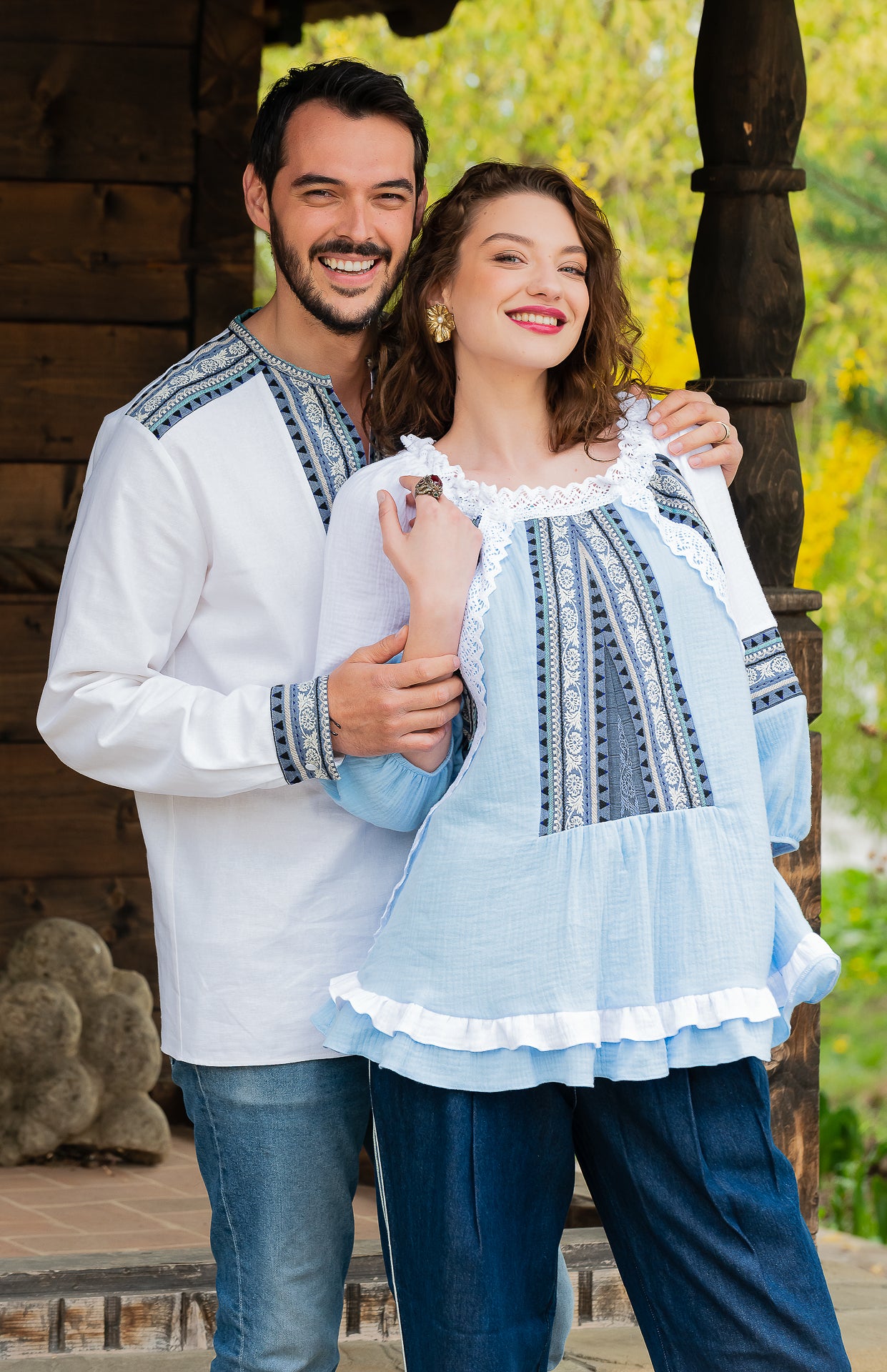 Jupân - Inspirată din poveștile folclorice, design-ul cămășii are la bază câteva elemente importante. Inul prespălat, cu platcă, epoleții și manșetele din jacquard etnic țesut se îmbină armonios pentru a definitiva un stil autentic. Oferă, de asemneea, o croială arhaică dreaptă, cu mânecile amplu croite. Simbolul jupânului inspiră putere și eleganță.