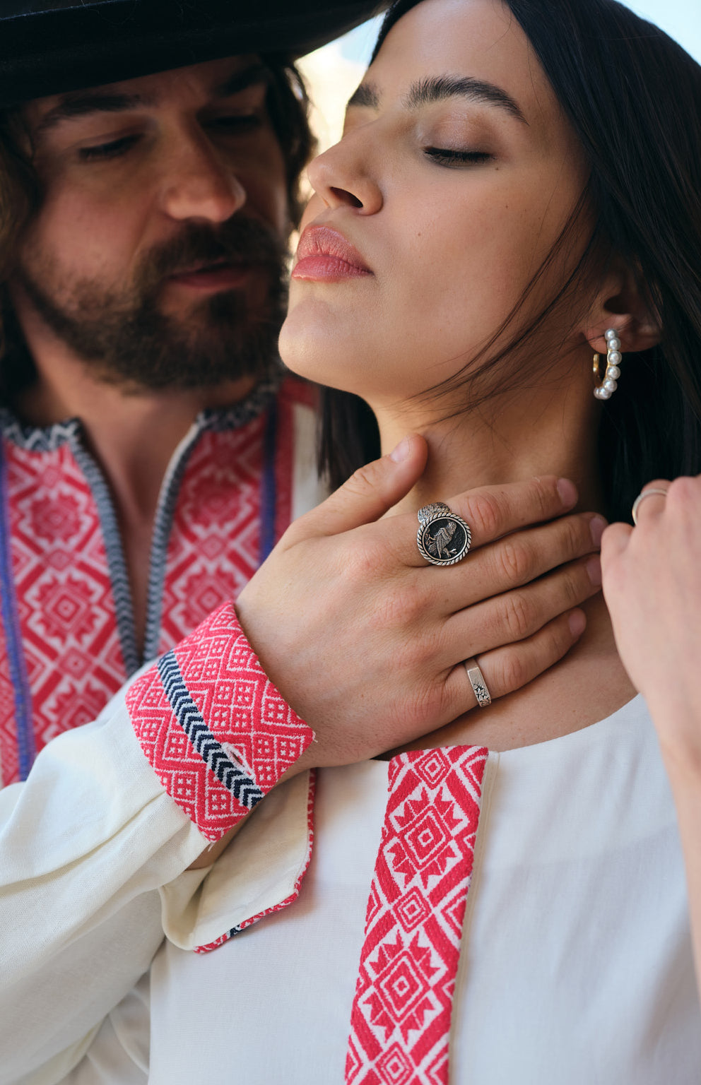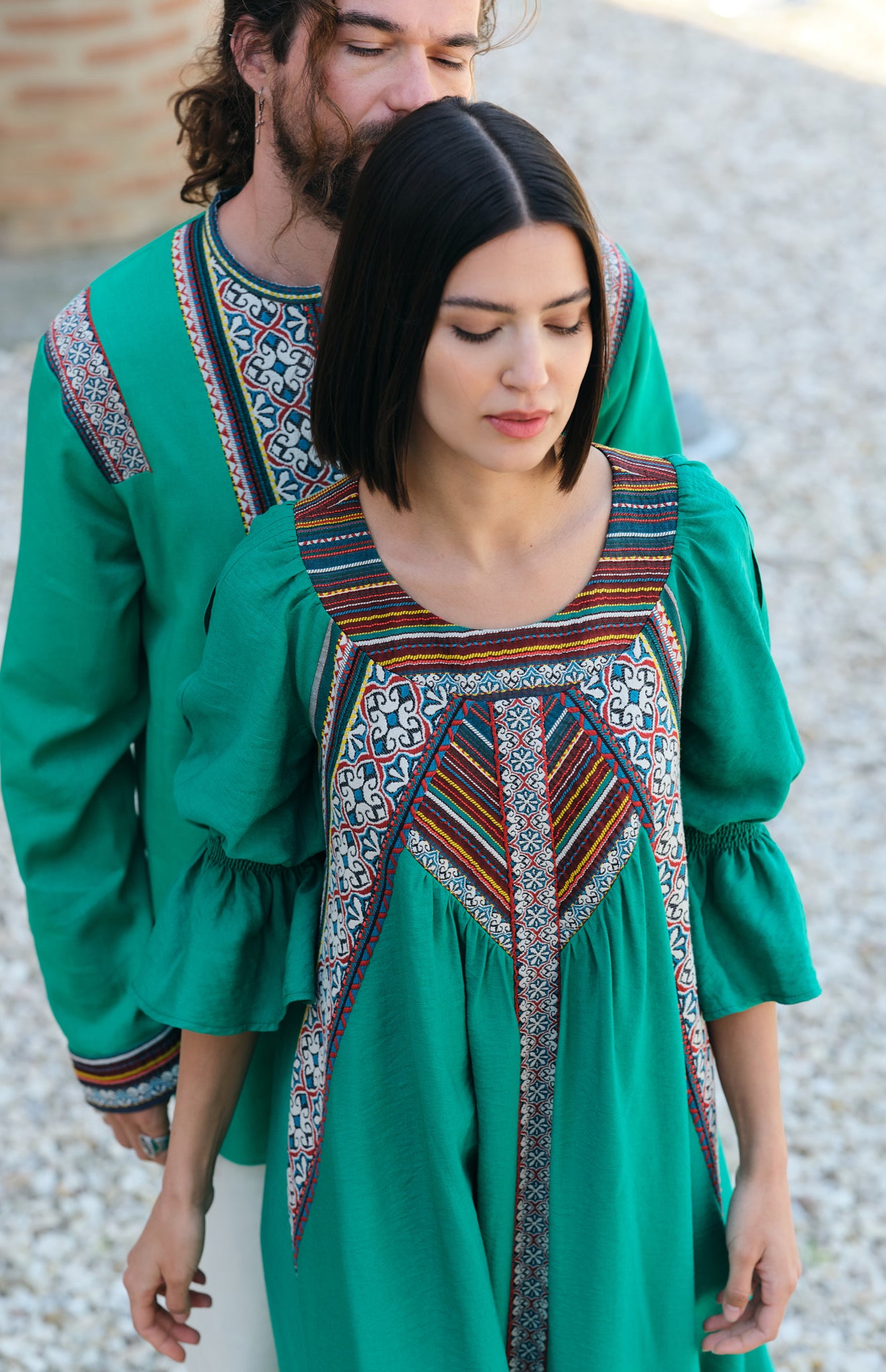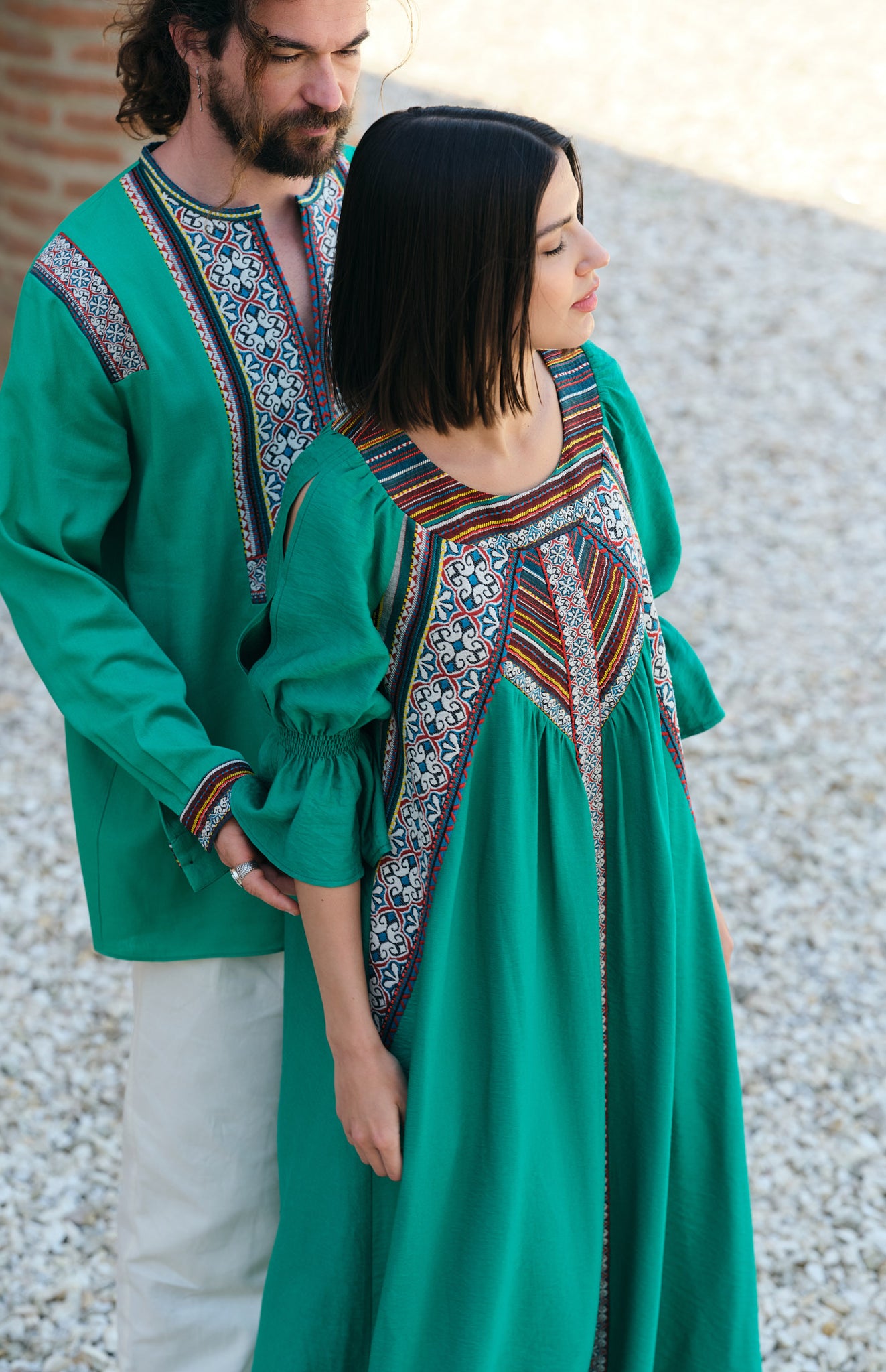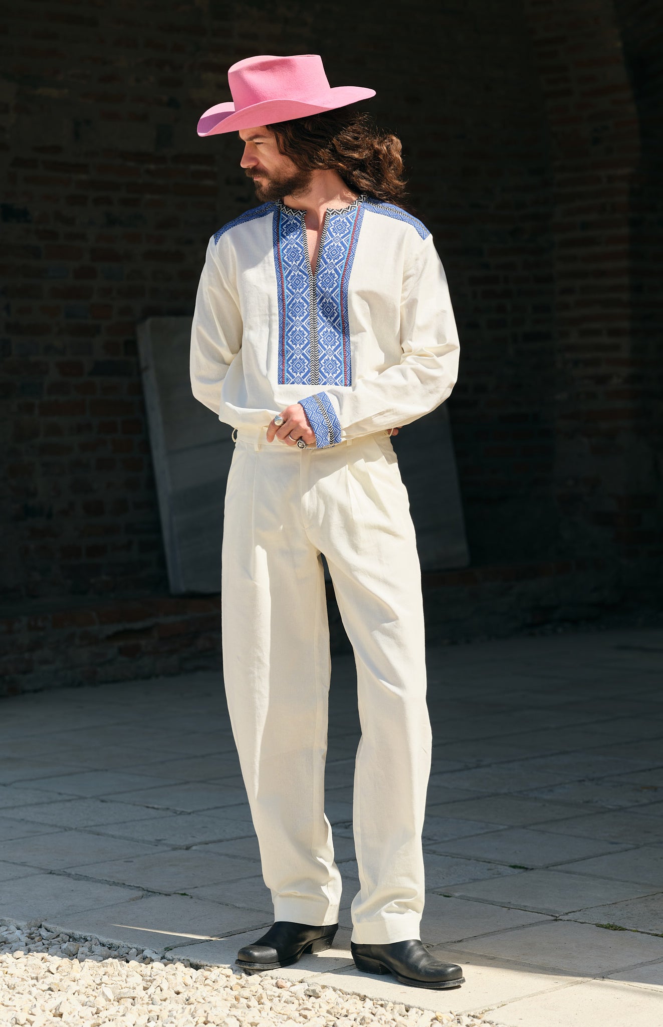 Jupân - Inspirată din poveștile folclorice, design-ul cămășii are la bază câteva elemente importante. Inul prespălat, cu platcă, epoleții și manșetele din jacquard etnic țesut se îmbină armonios pentru a definitiva un stil autentic. Oferă, de asemneea, o croială arhaică dreaptă, cu mânecile amplu croite. Simbolul jupânului inspiră putere și eleganță.