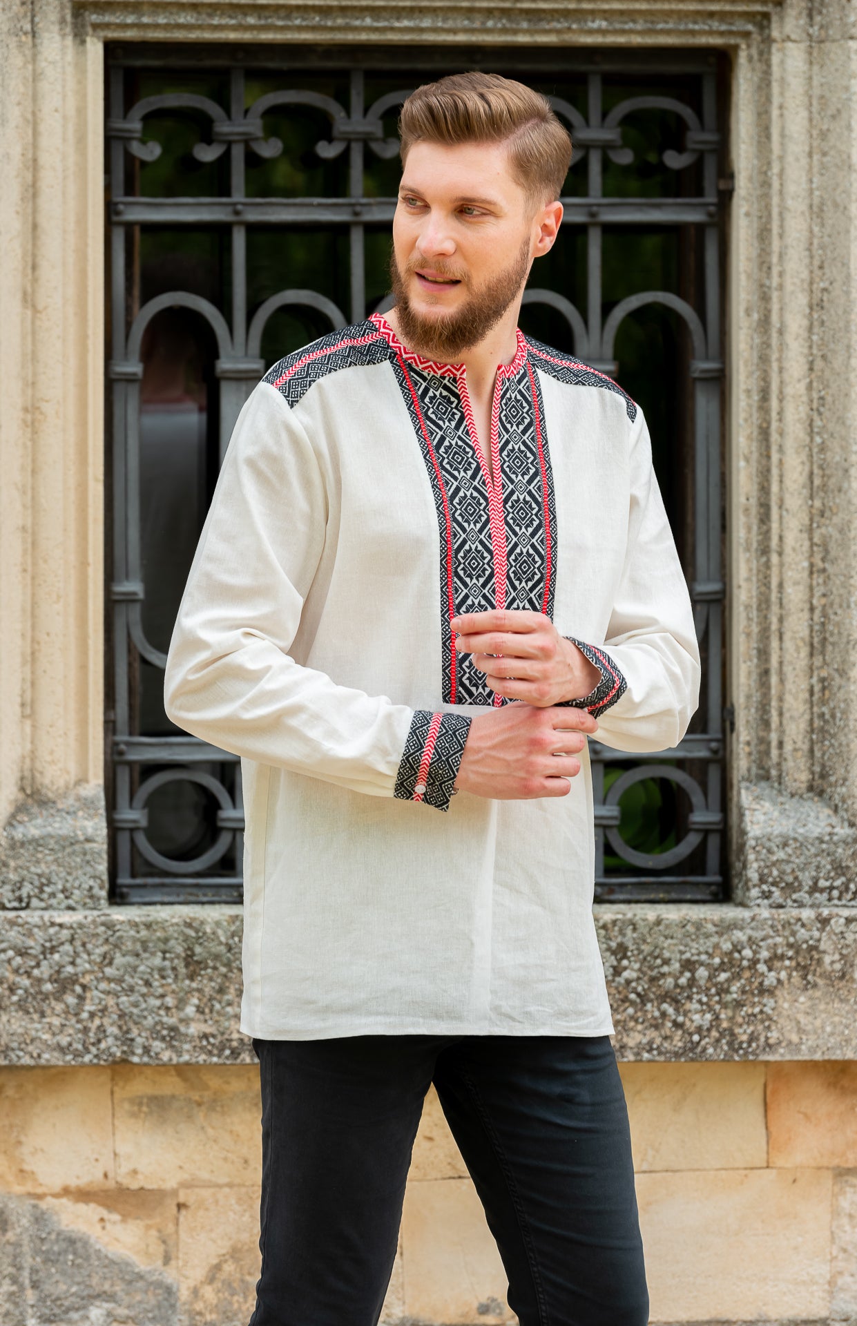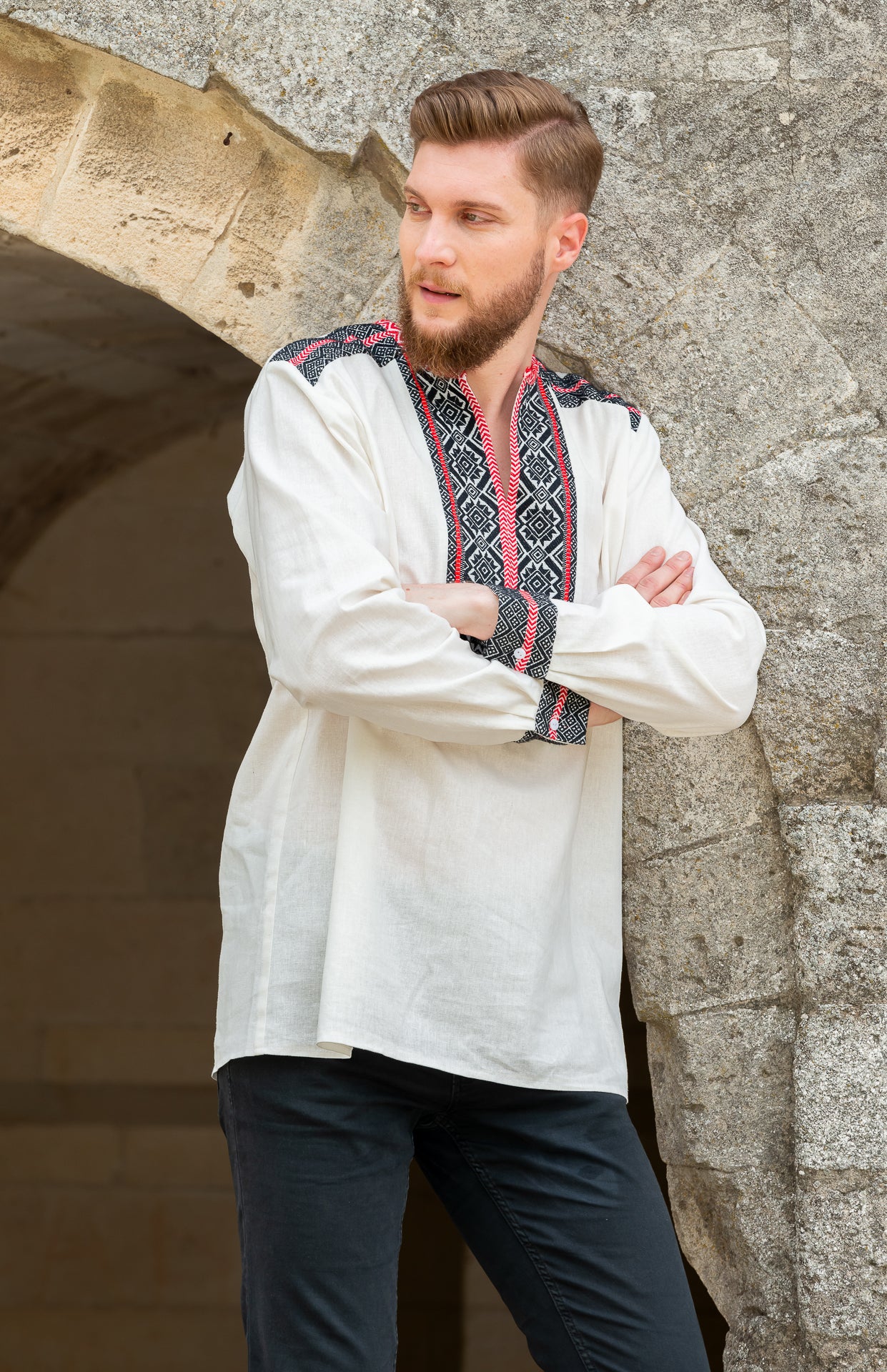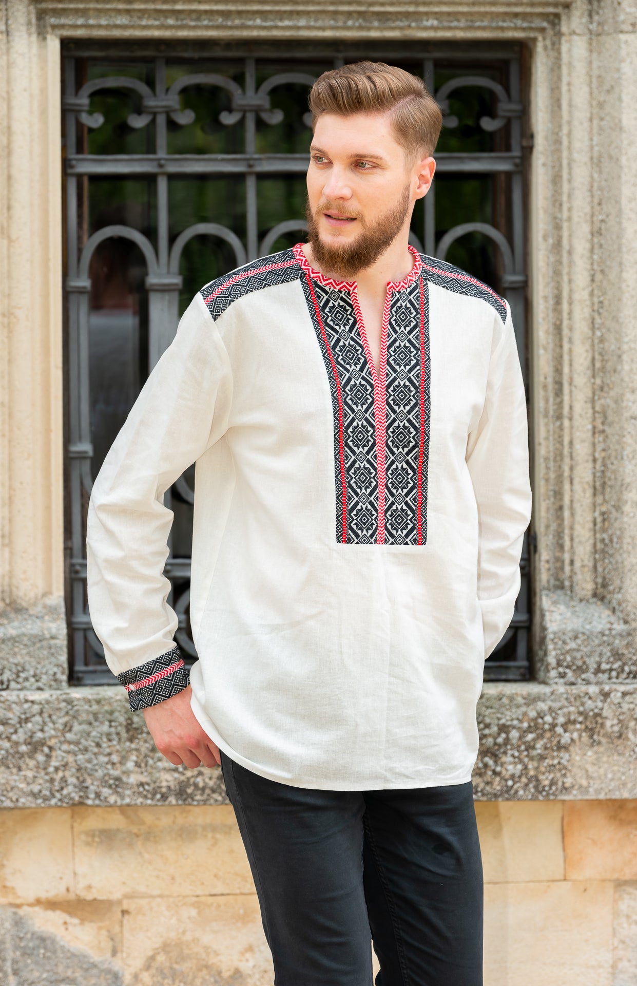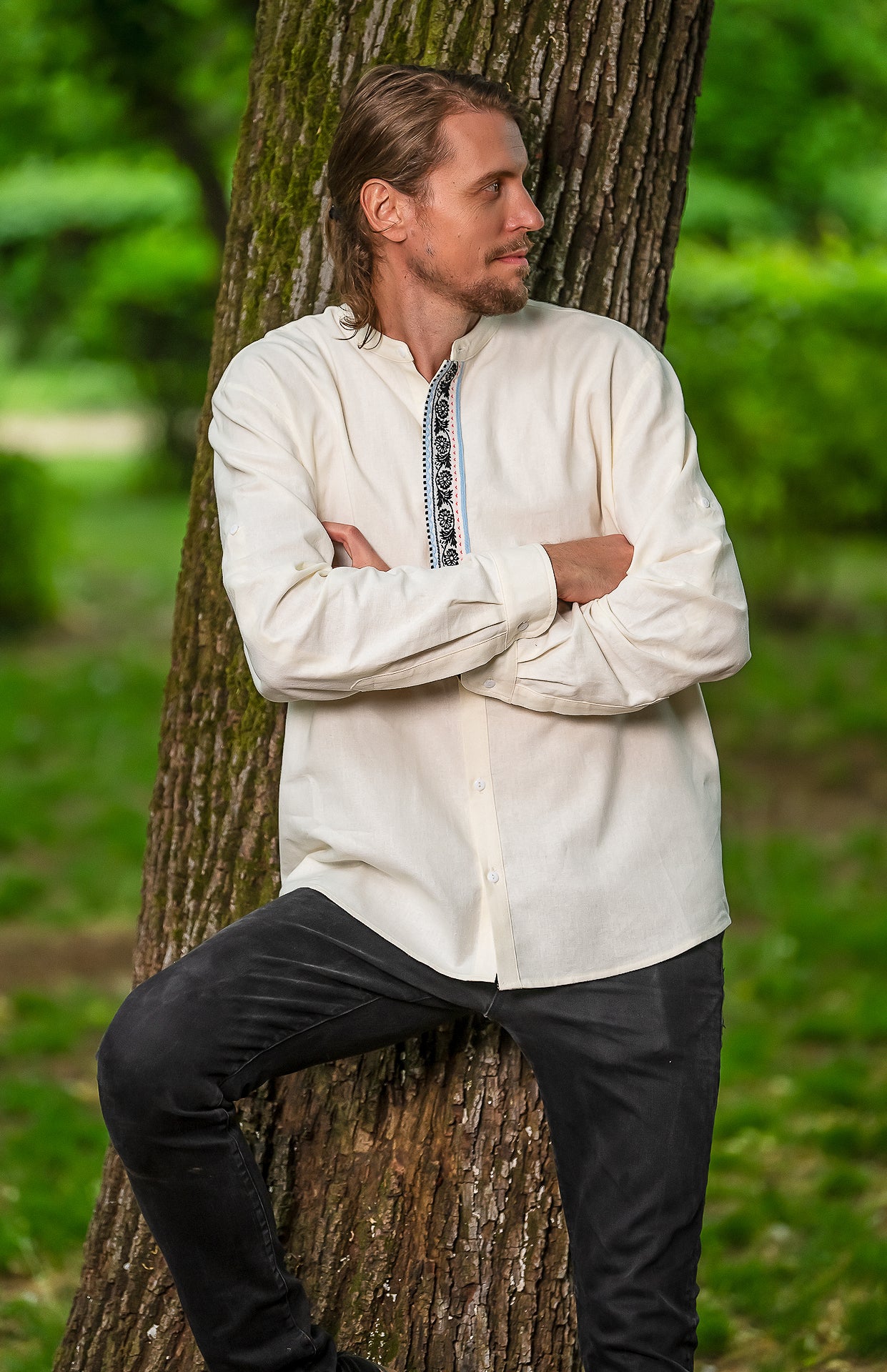 Pământ - Unul dintre cele mai reprezentative elemente din istoria românilor. Din cele mai vechi timpuri, oamenii au lucrat pământul și s-au ocupat de muncile câmpului. O camasa traditionala barbati care integrează motivul pământului evidențiază cu succes vechile tradiții, prin alăturarea modelelelor reprezentative.