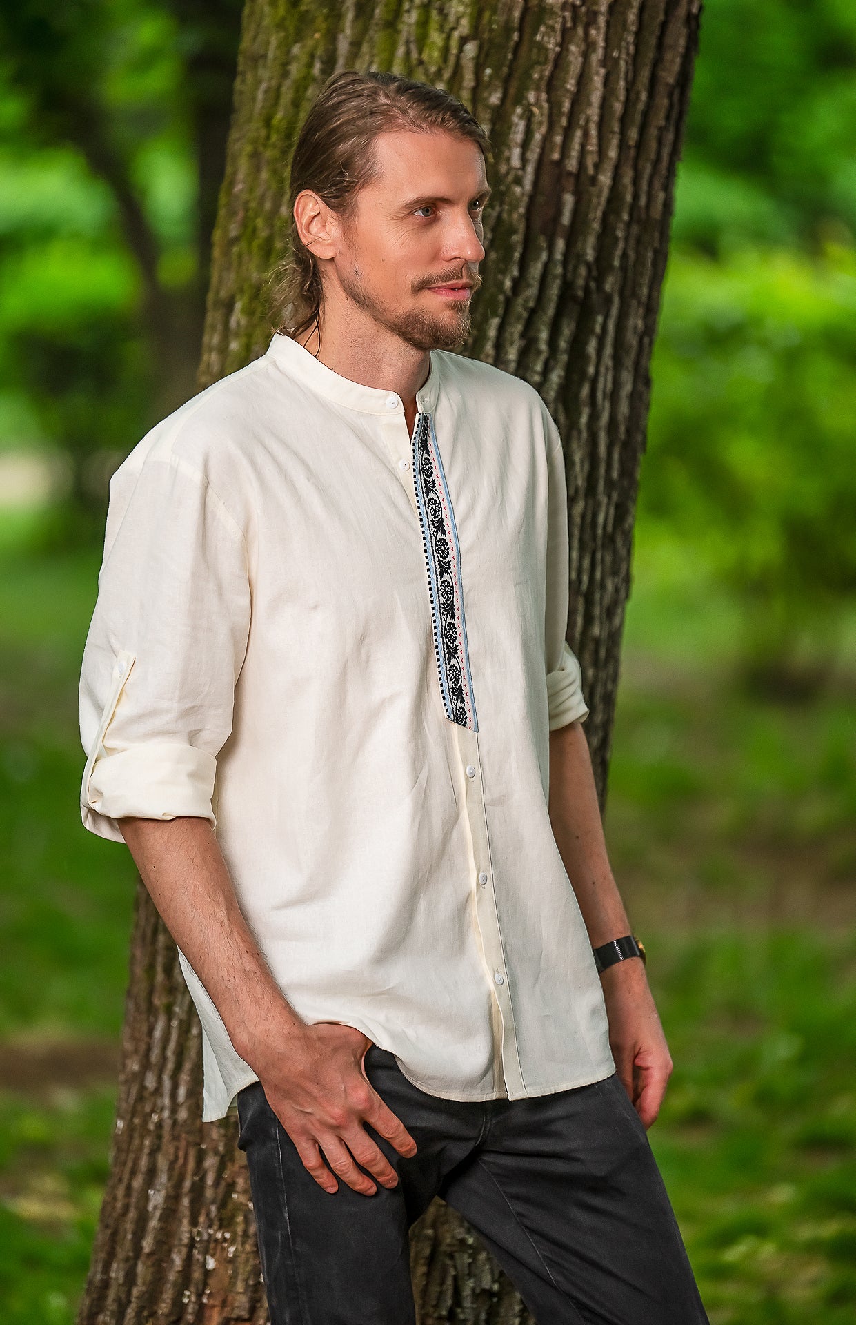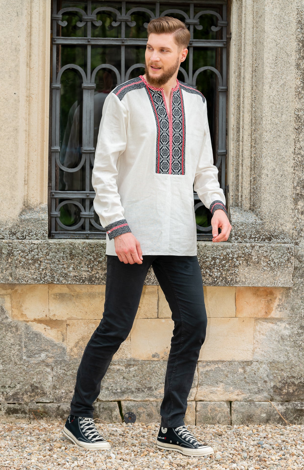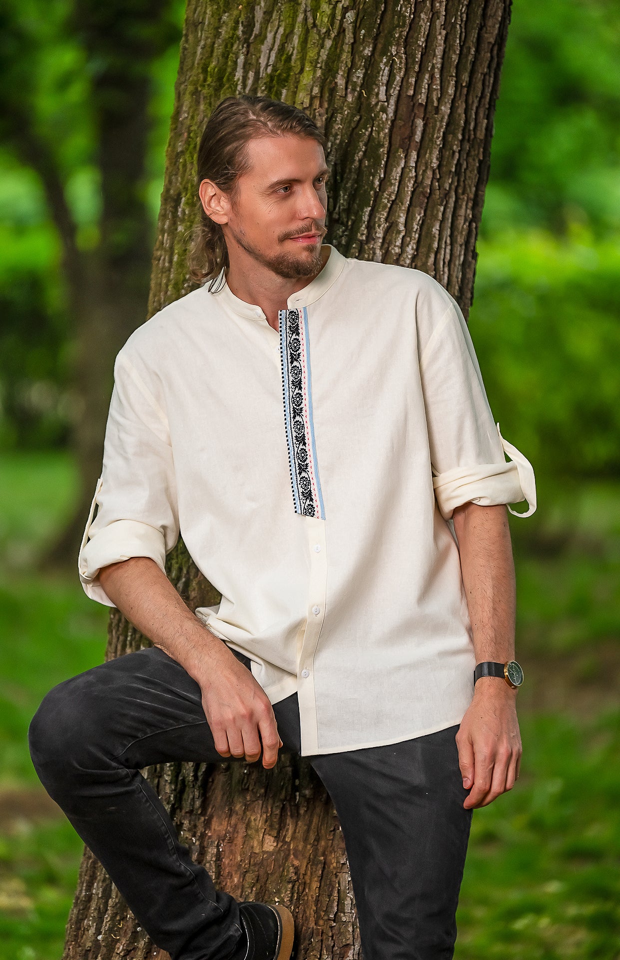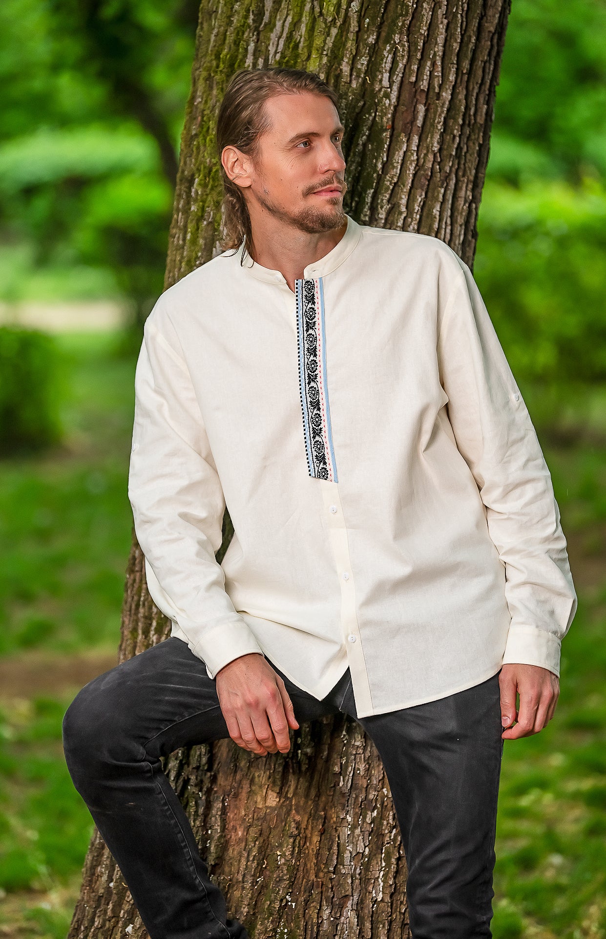 Pământ - Unul dintre cele mai reprezentative elemente din istoria românilor. Din cele mai vechi timpuri, oamenii au lucrat pământul și s-au ocupat de muncile câmpului. O camasa traditionala barbati care integrează motivul pământului evidențiază cu succes vechile tradiții, prin alăturarea modelelelor reprezentative.