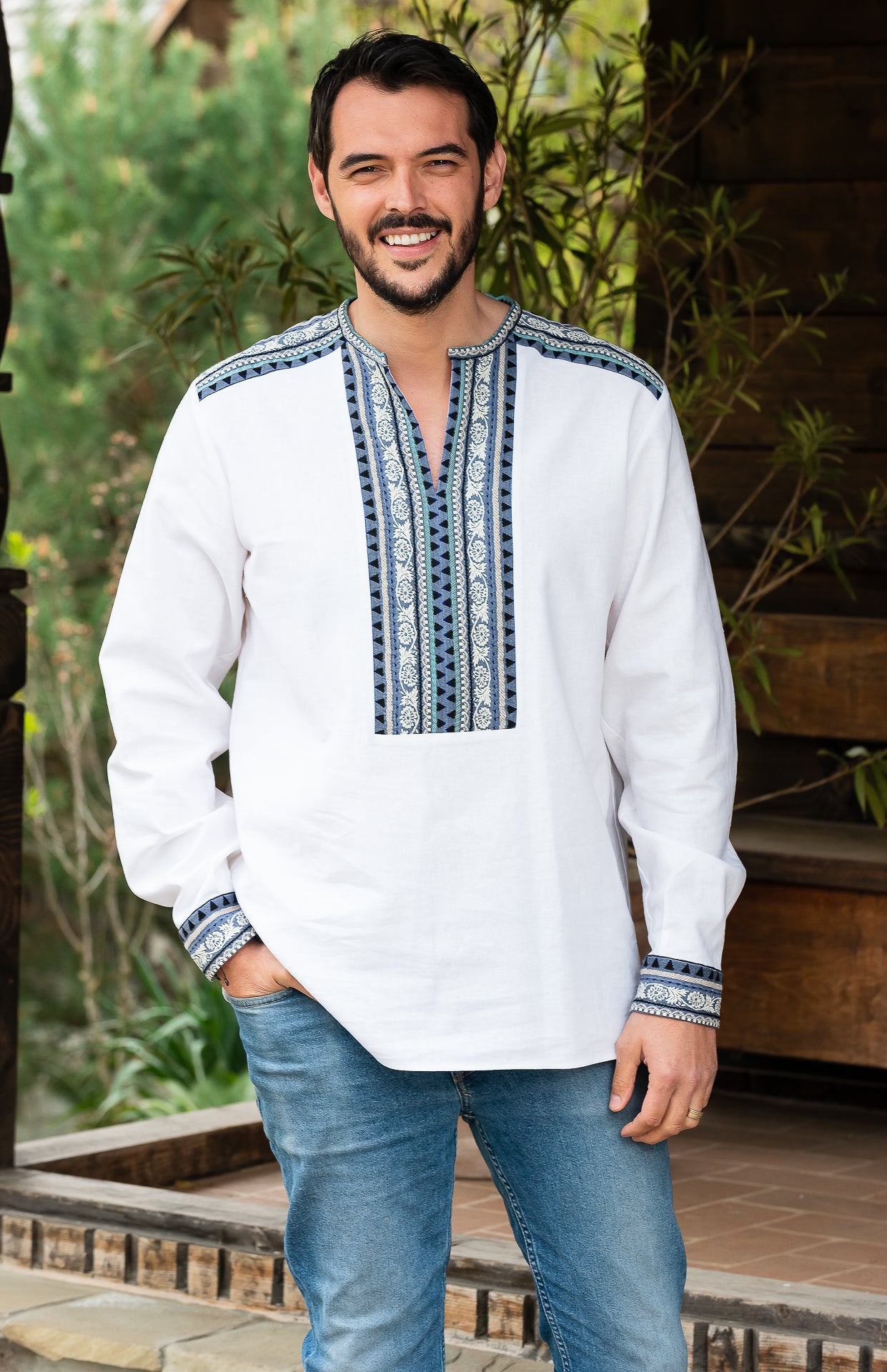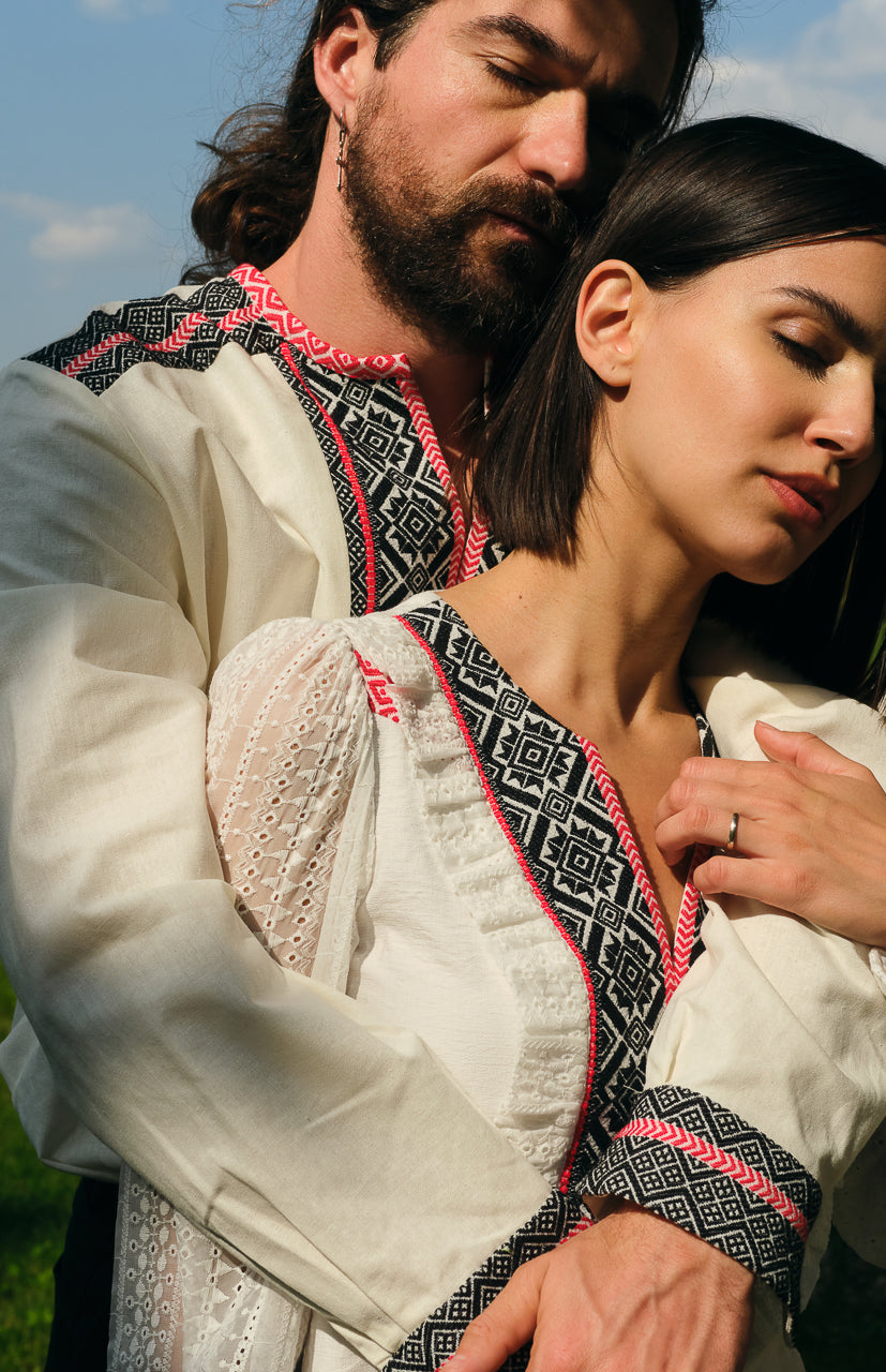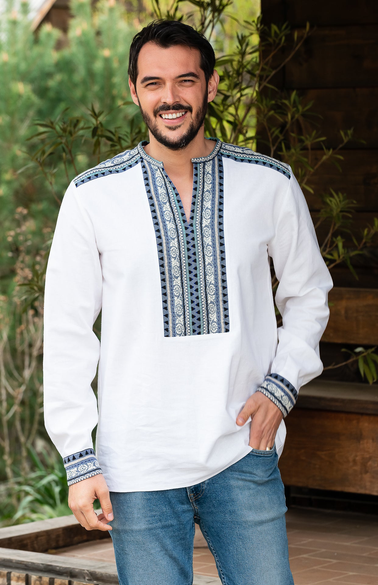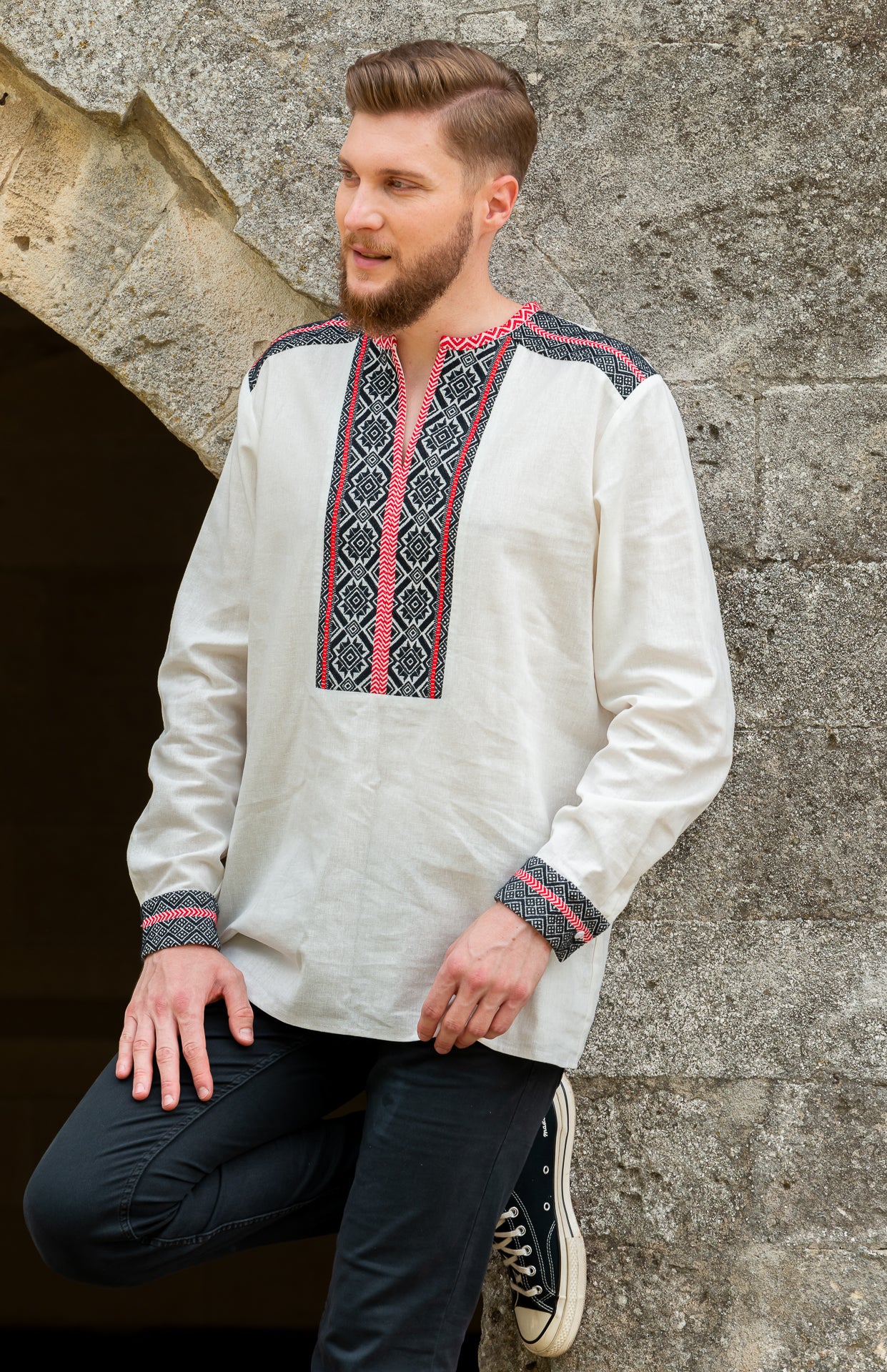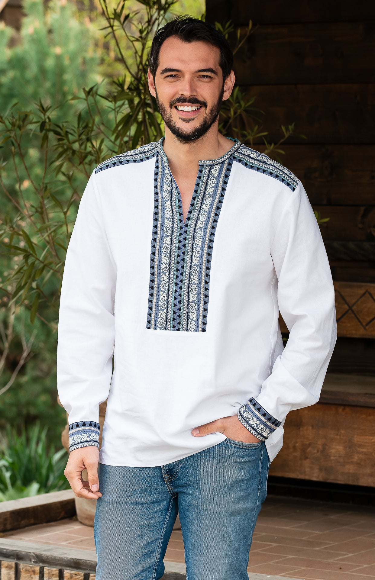 Pământ - Unul dintre cele mai reprezentative elemente din istoria românilor. Din cele mai vechi timpuri, oamenii au lucrat pământul și s-au ocupat de muncile câmpului. O camasa traditionala barbati care integrează motivul pământului evidențiază cu succes vechile tradiții, prin alăturarea modelelelor reprezentative.