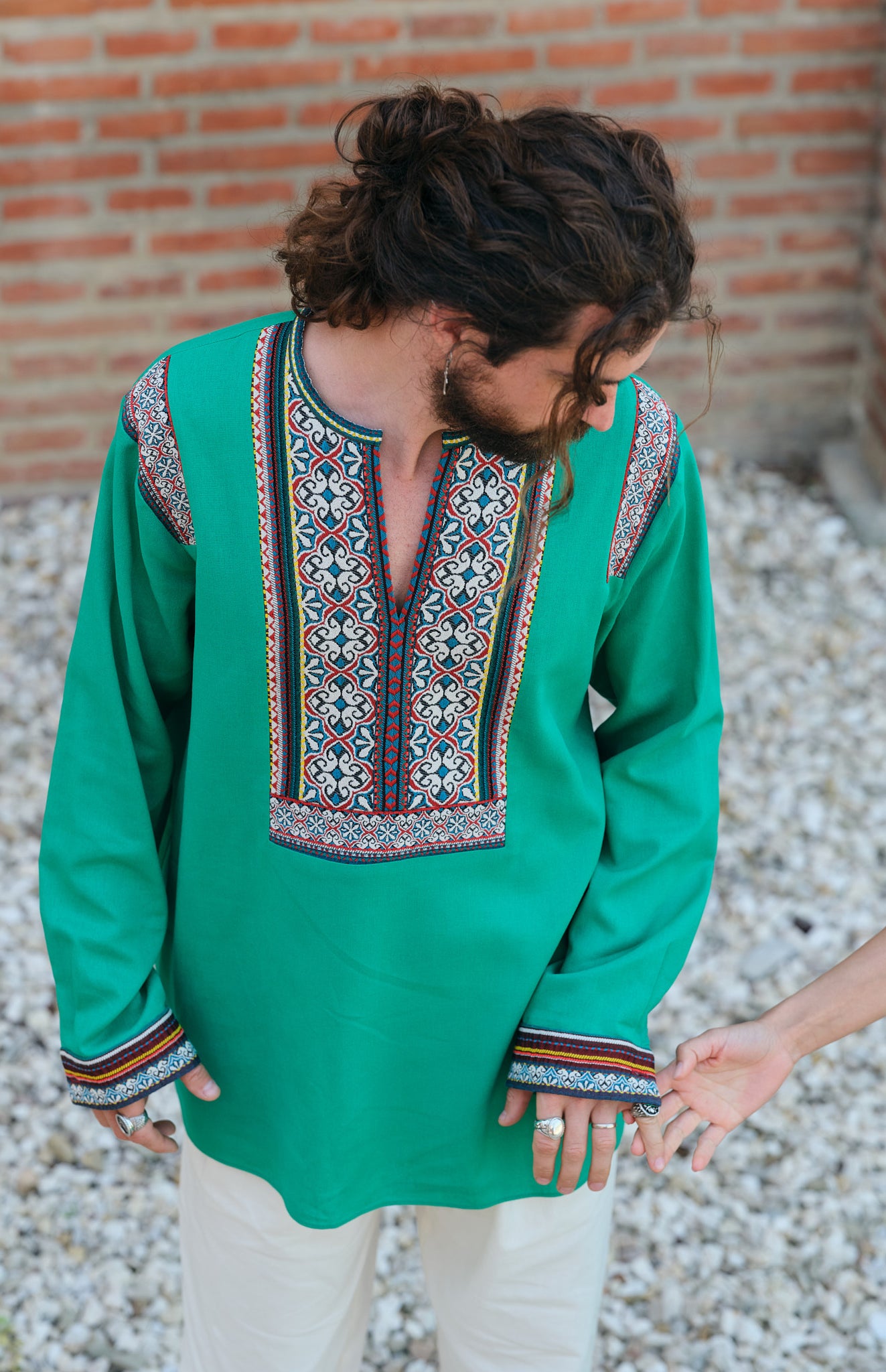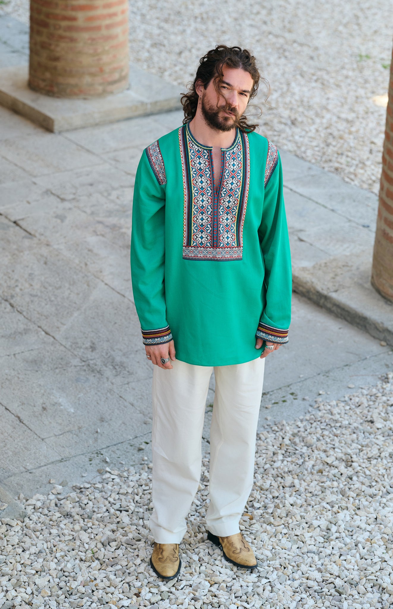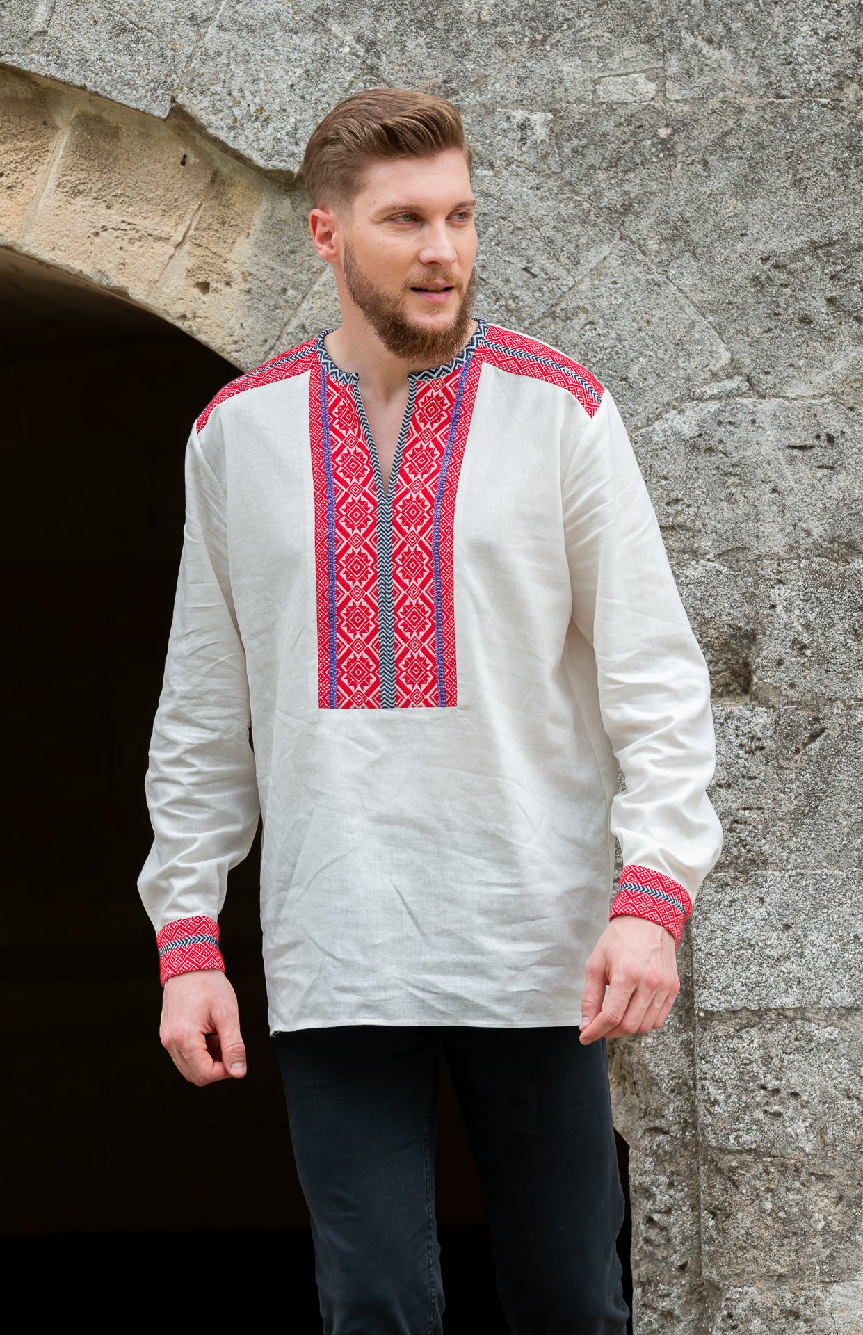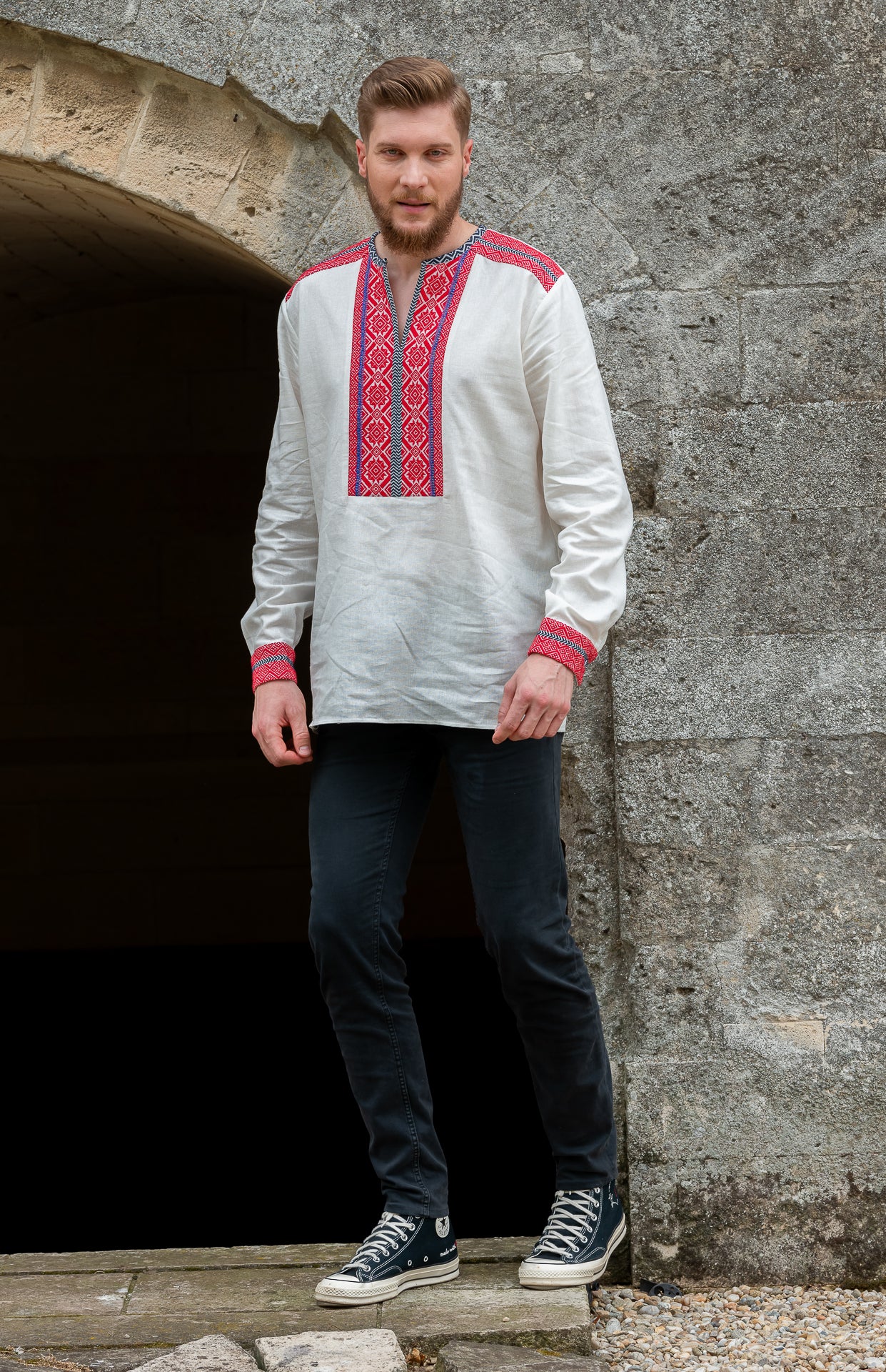 Pământ - Unul dintre cele mai reprezentative elemente din istoria românilor. Din cele mai vechi timpuri, oamenii au lucrat pământul și s-au ocupat de muncile câmpului. O camasa traditionala barbati care integrează motivul pământului evidențiază cu succes vechile tradiții, prin alăturarea modelelelor reprezentative.