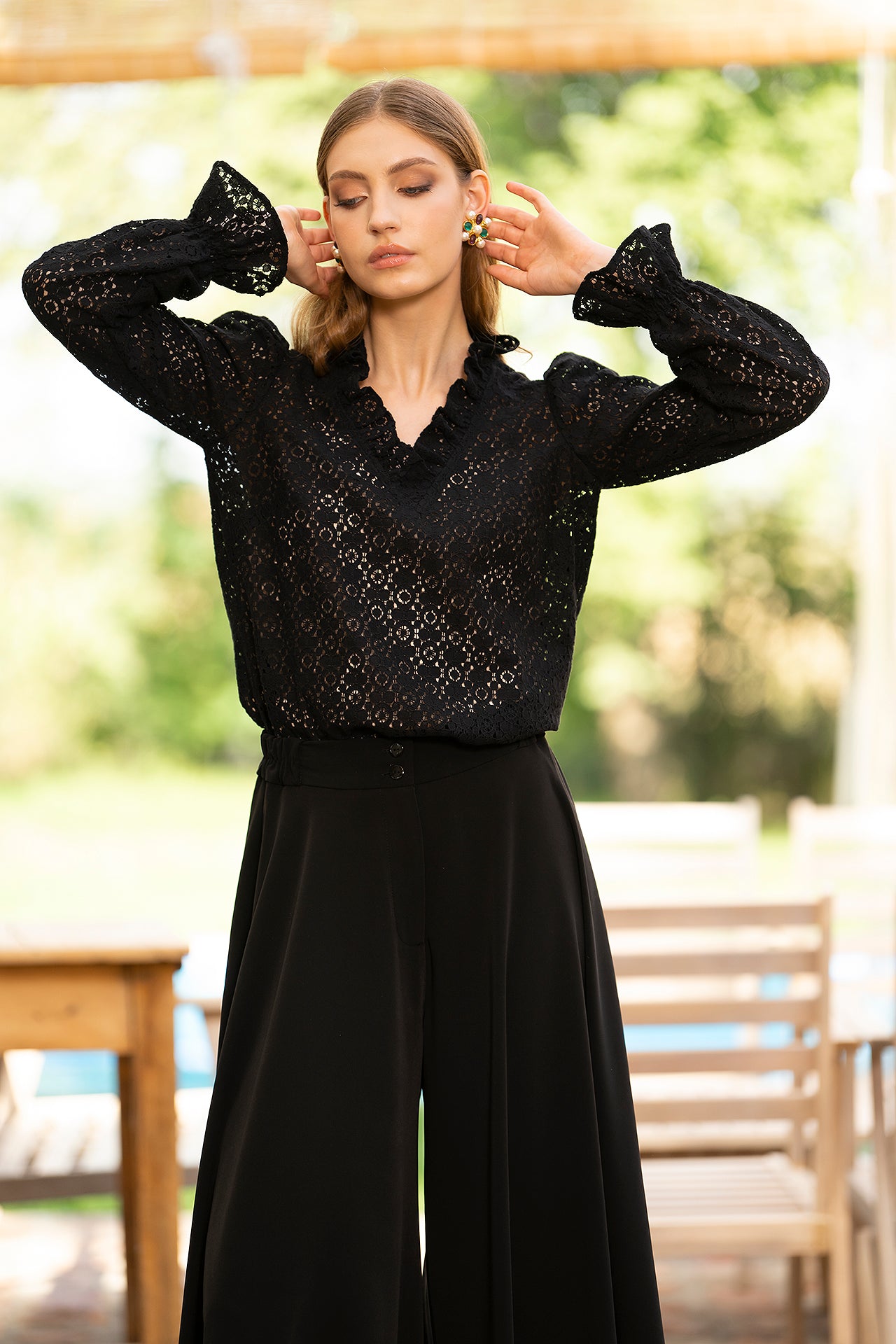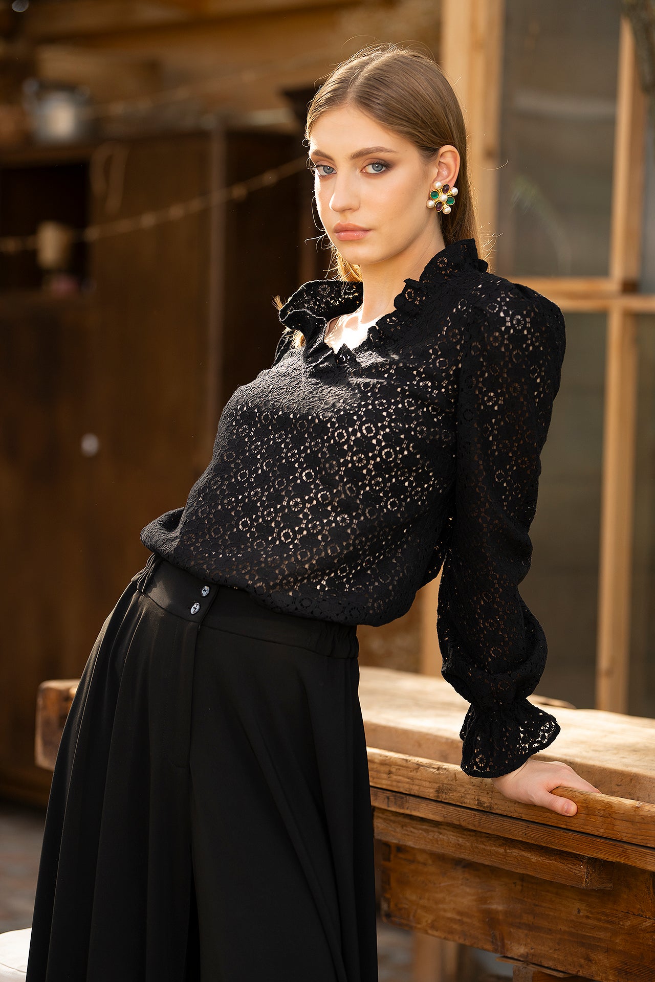 Bluza din dantelă este o piesă simplă si versatilă, perfecta pentru ținutele feminine de zi cu zi.