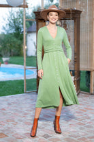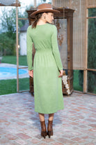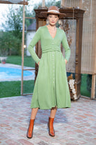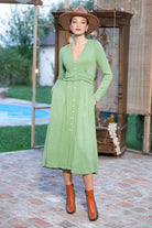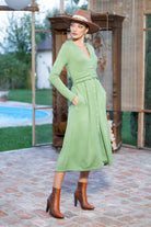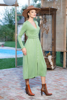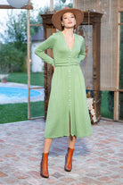 Rochia Kira din tricot verde mentă cu nasturi tip perlă