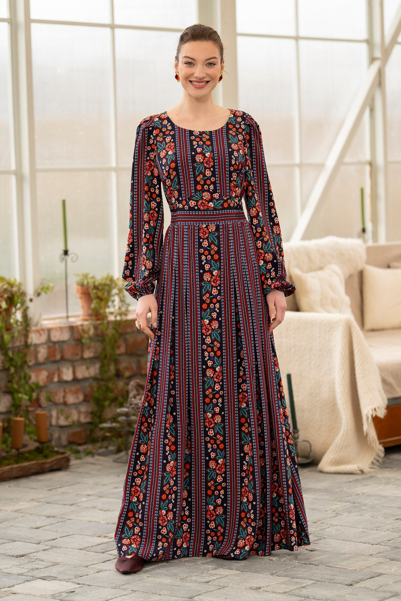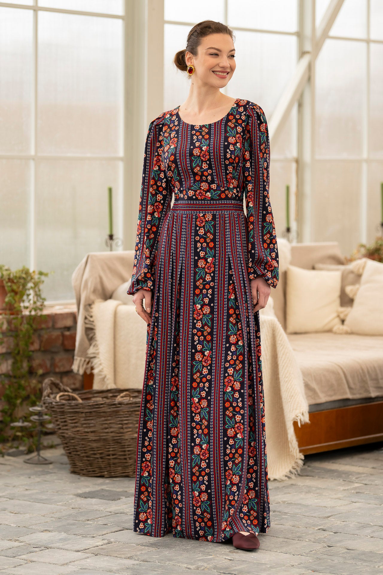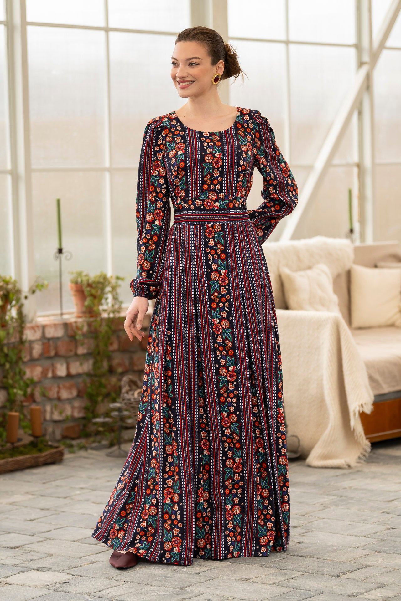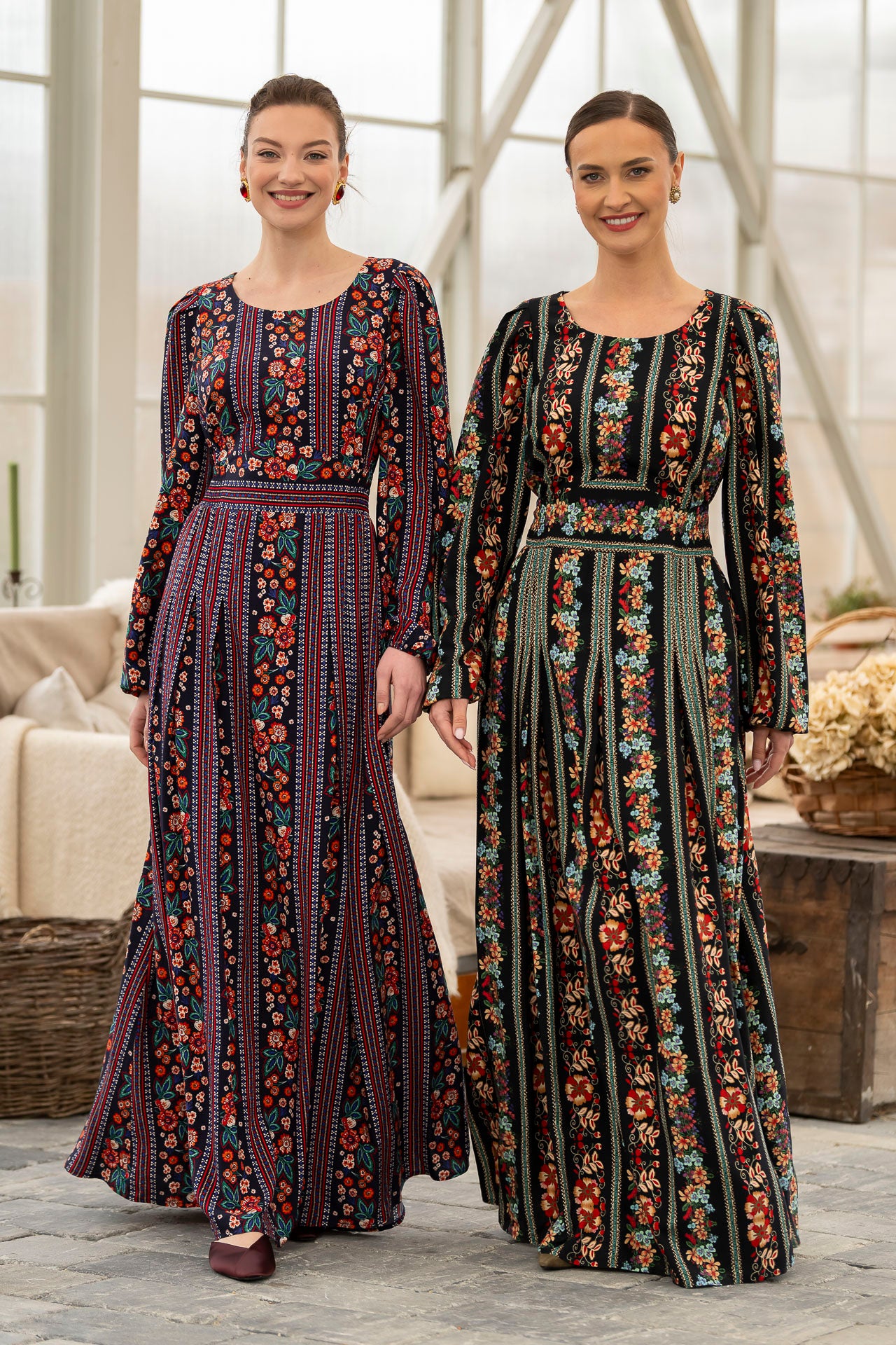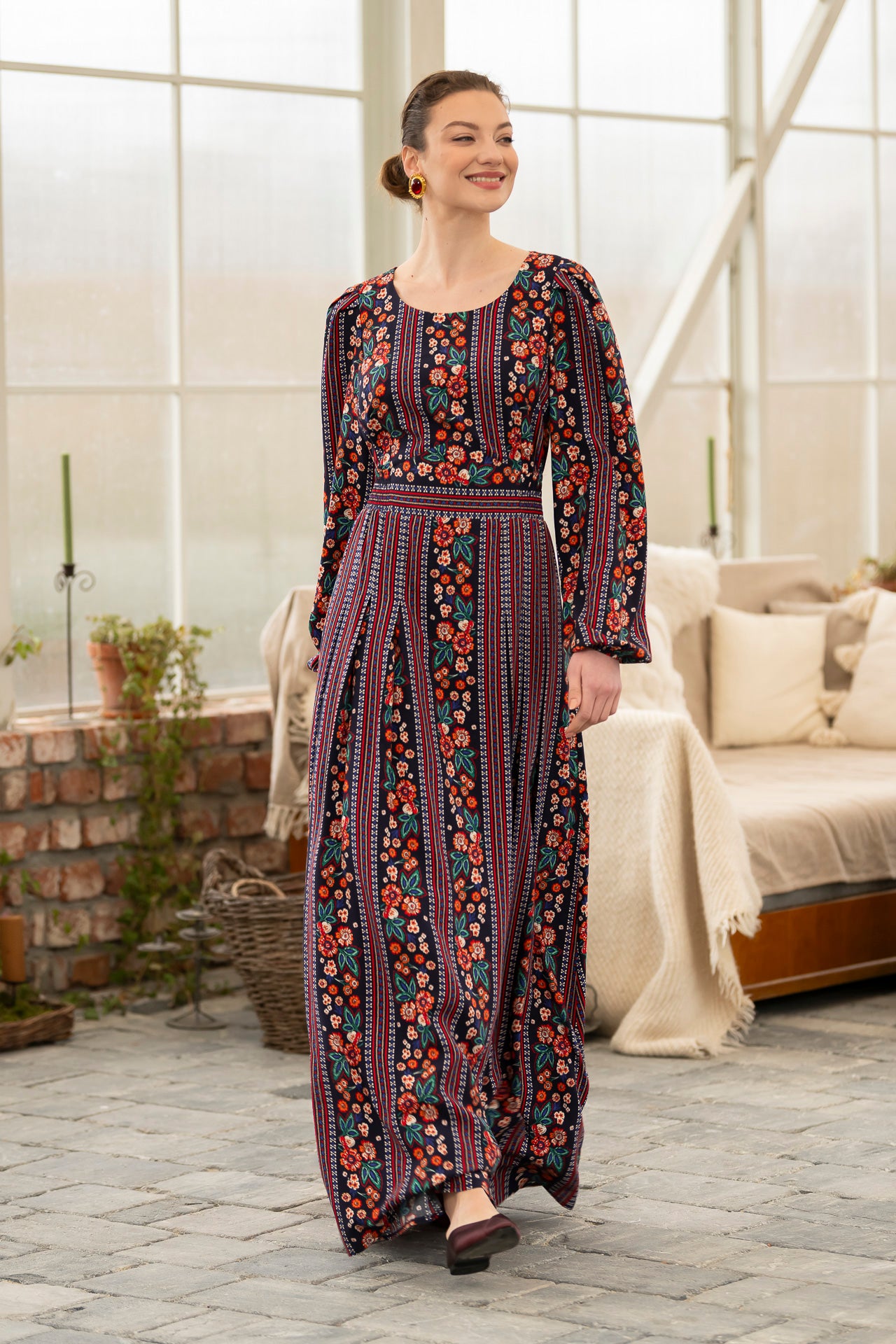 Conceptul imprimeului creat de noi, îmbină armonios motivele florale delicate cu accente geometrice inspirate din estetica etno , iar designul lejer și fluid este perfect pentru zilele însorite.