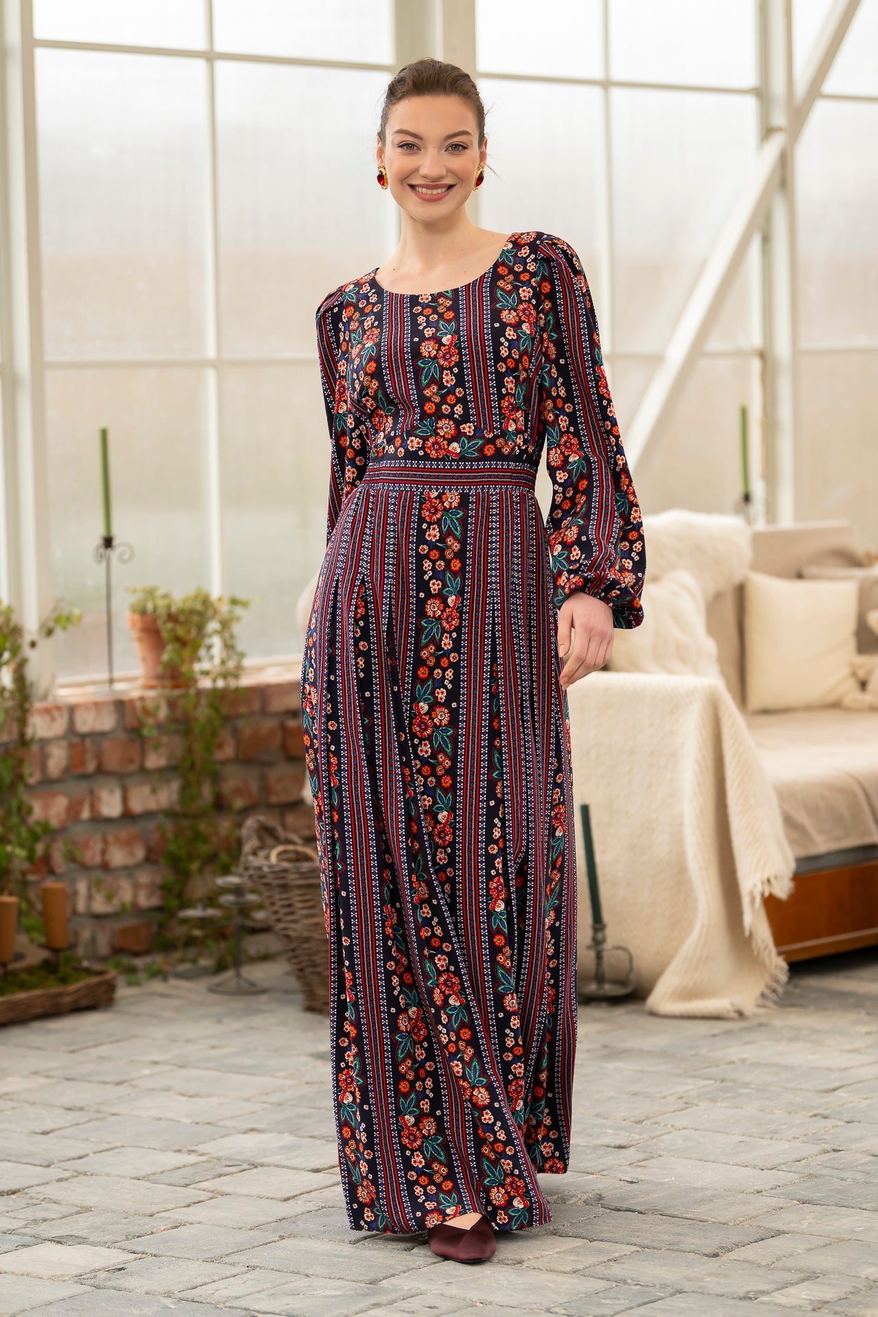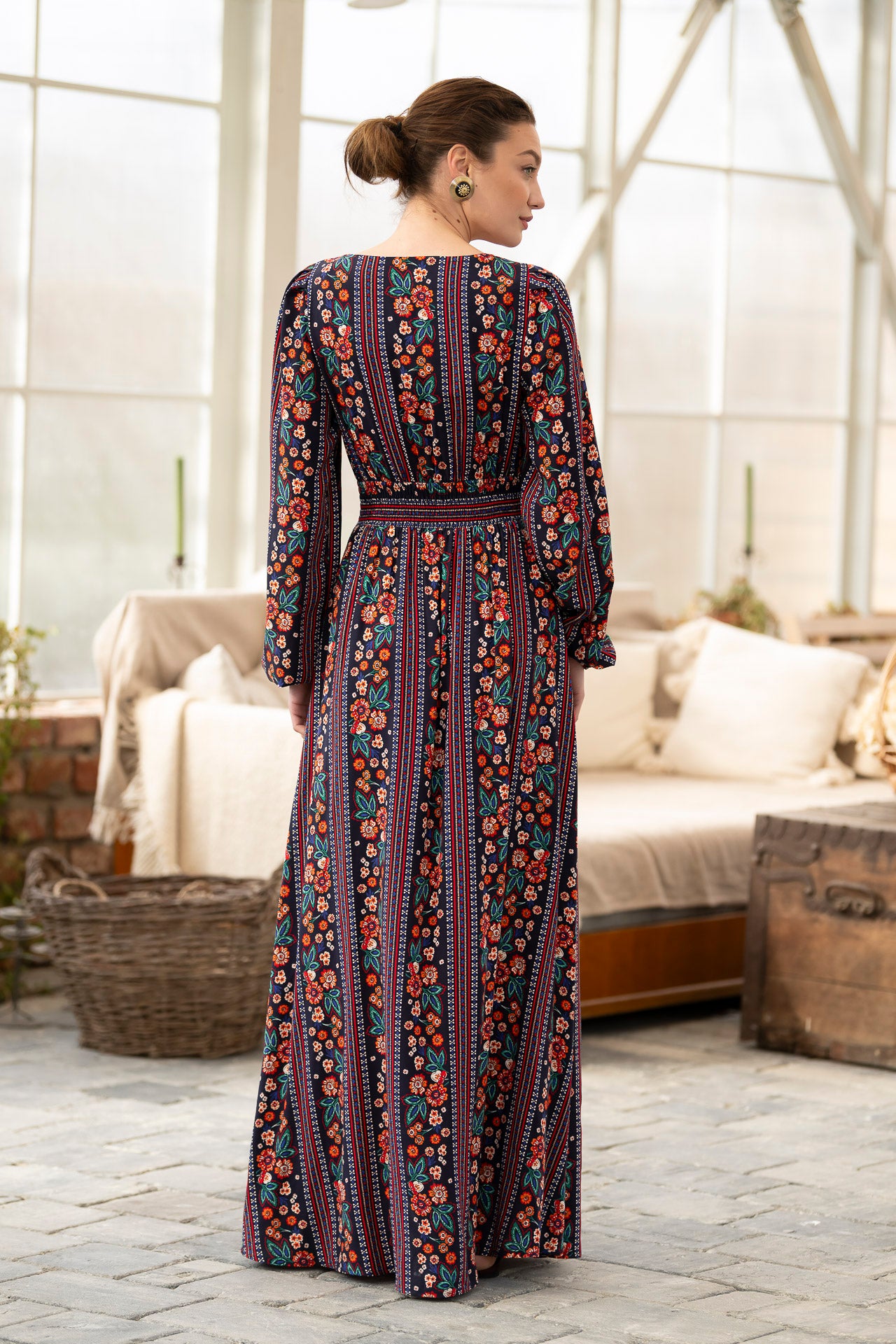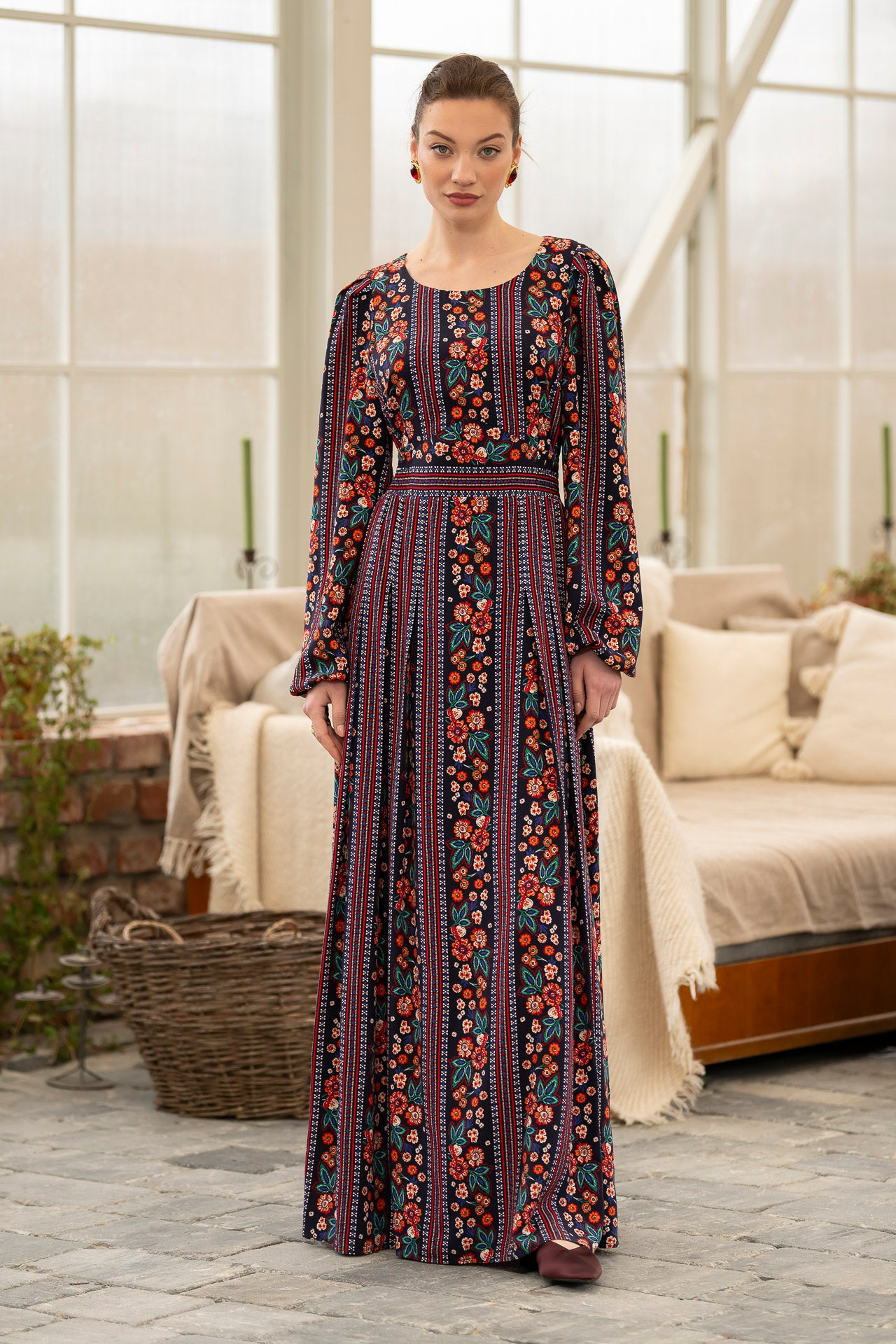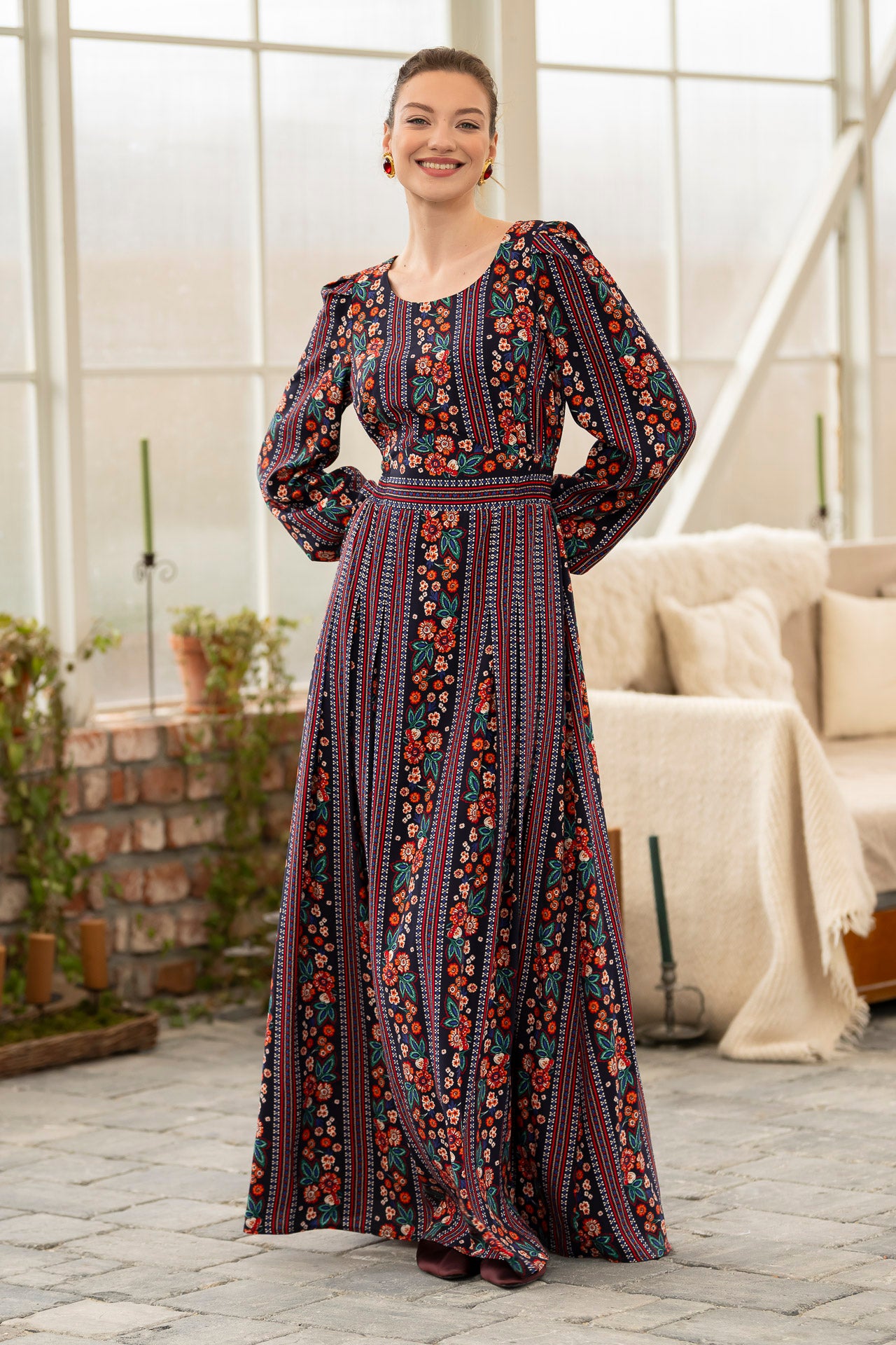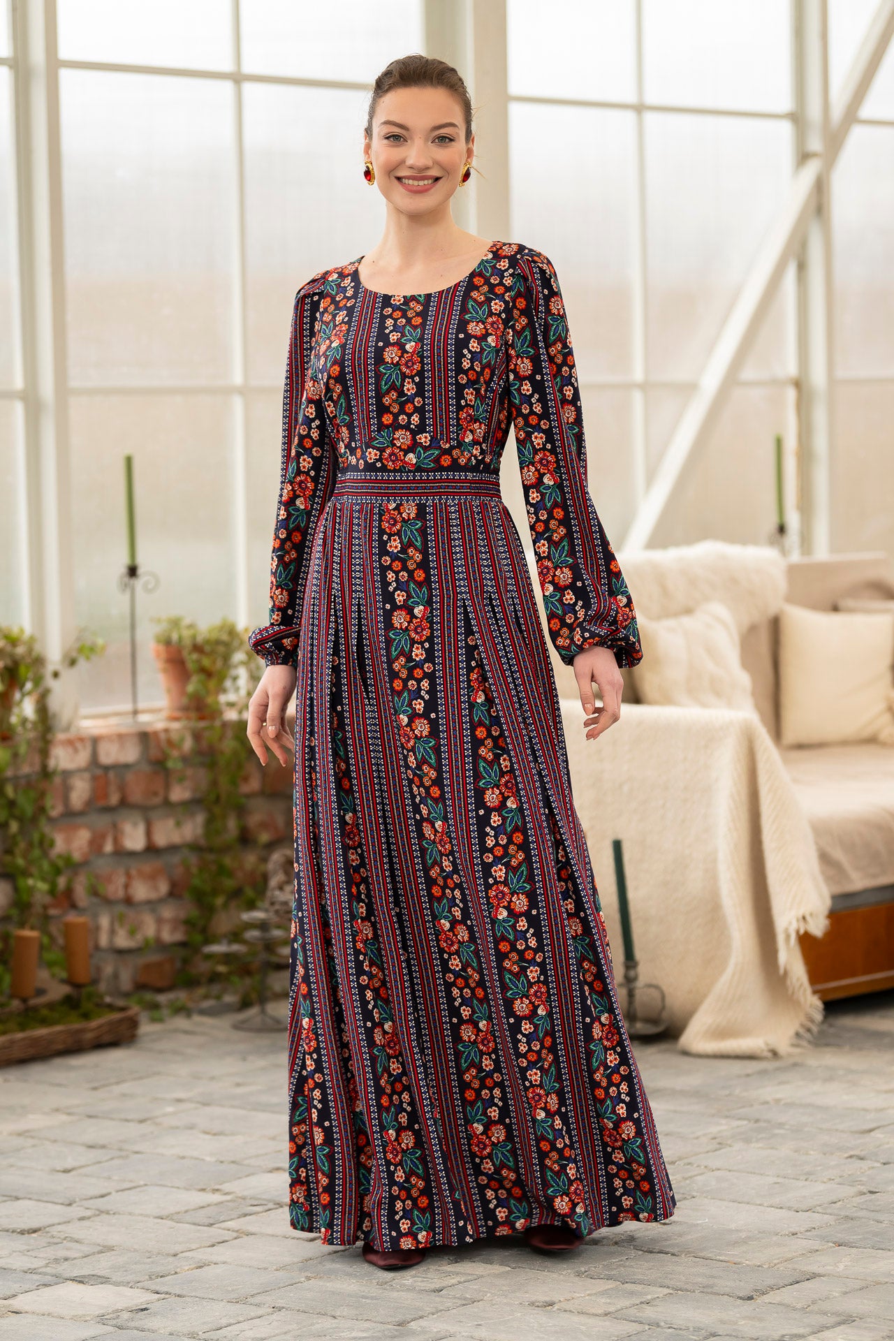 Conceptul imprimeului creat de noi, îmbină armonios motivele florale delicate cu accente geometrice inspirate din estetica etno , iar designul lejer și fluid este perfect pentru zilele însorite.
