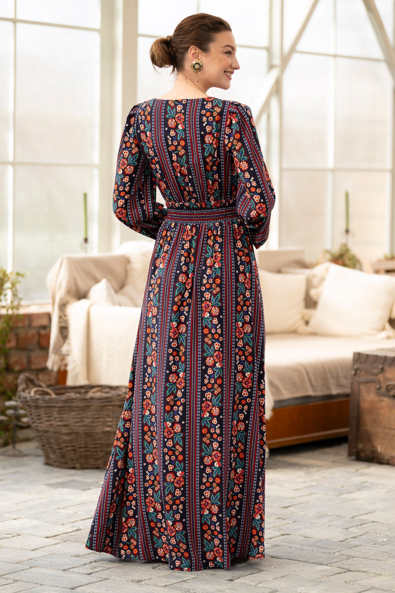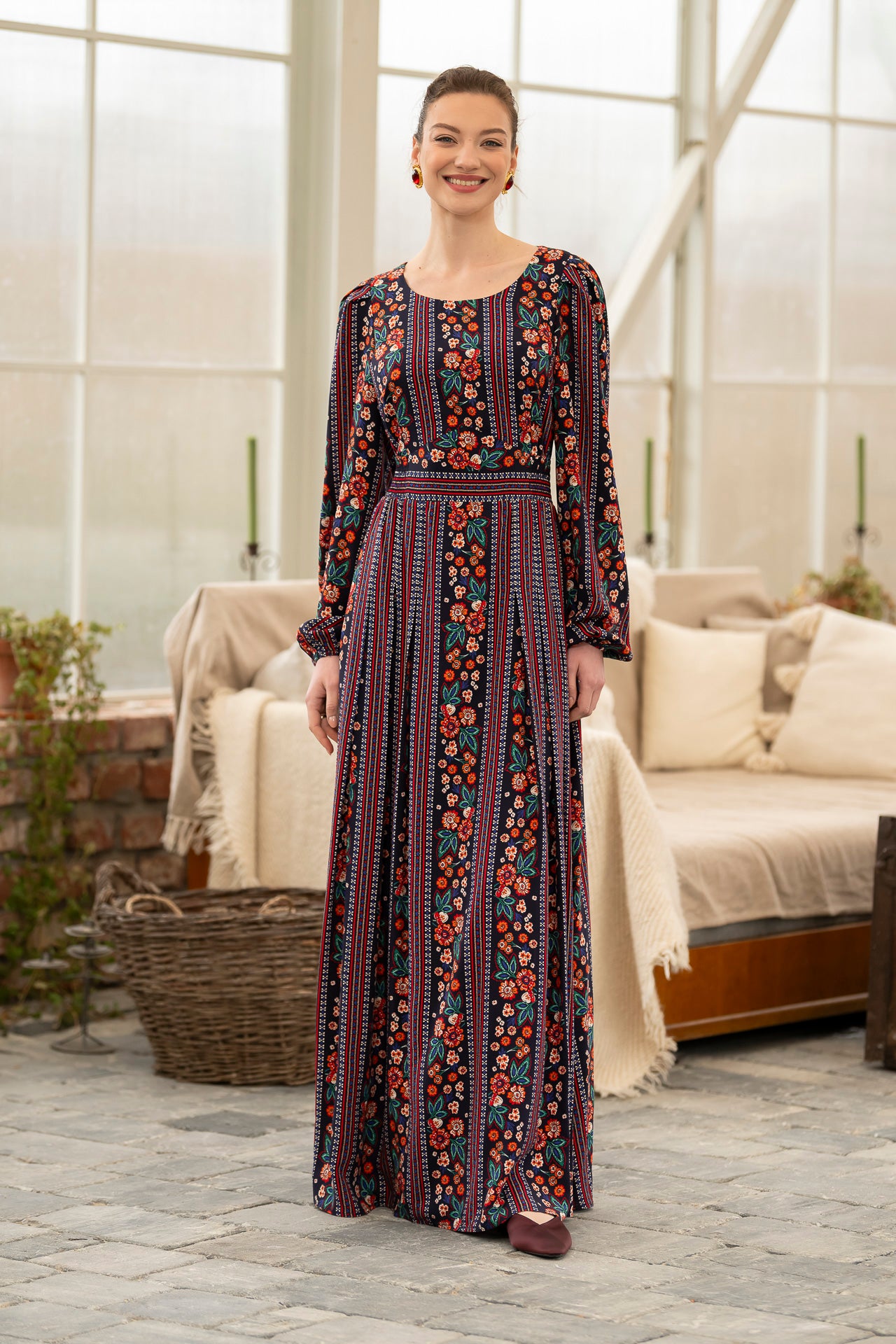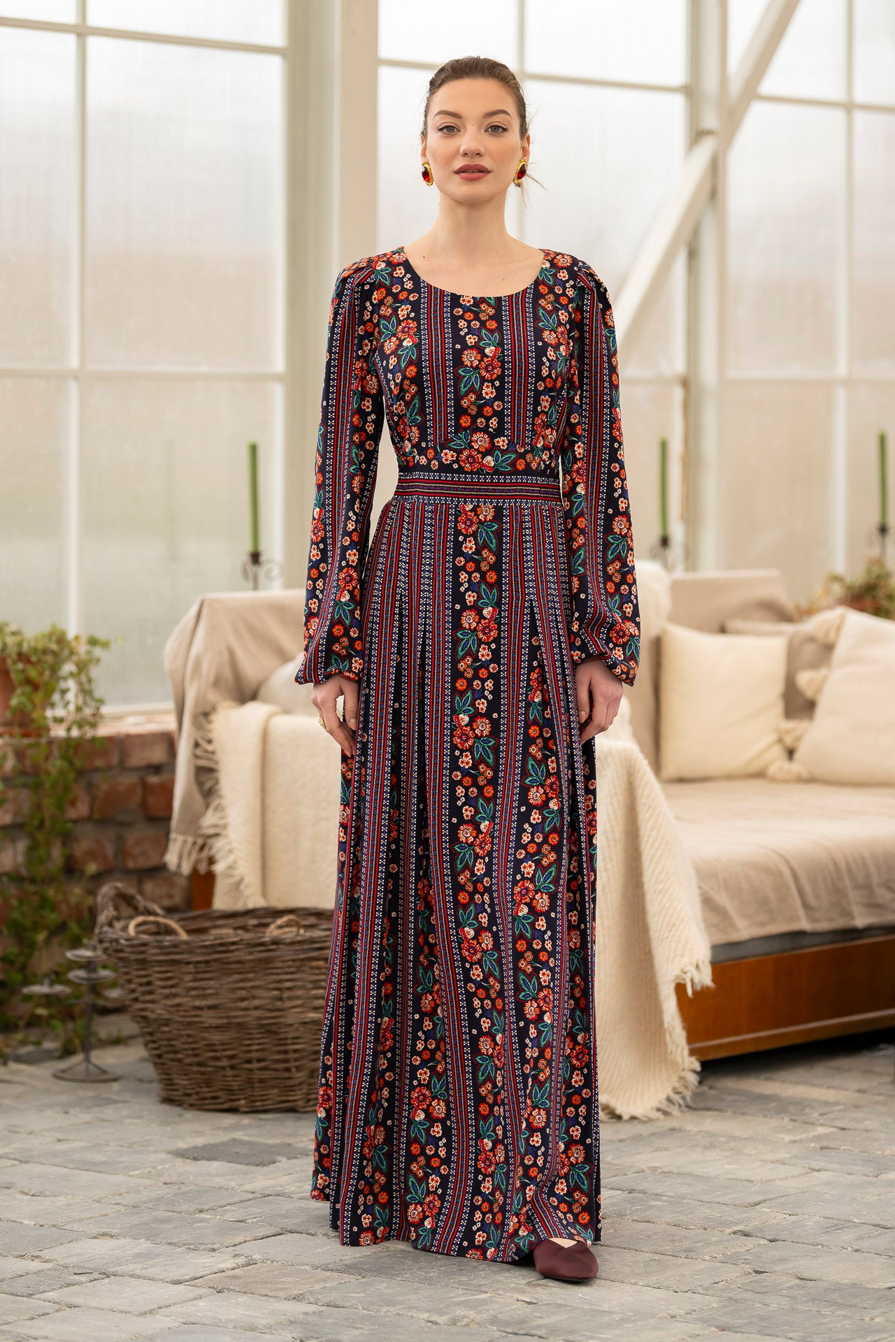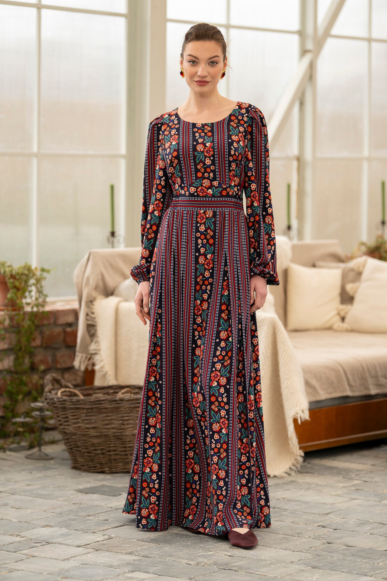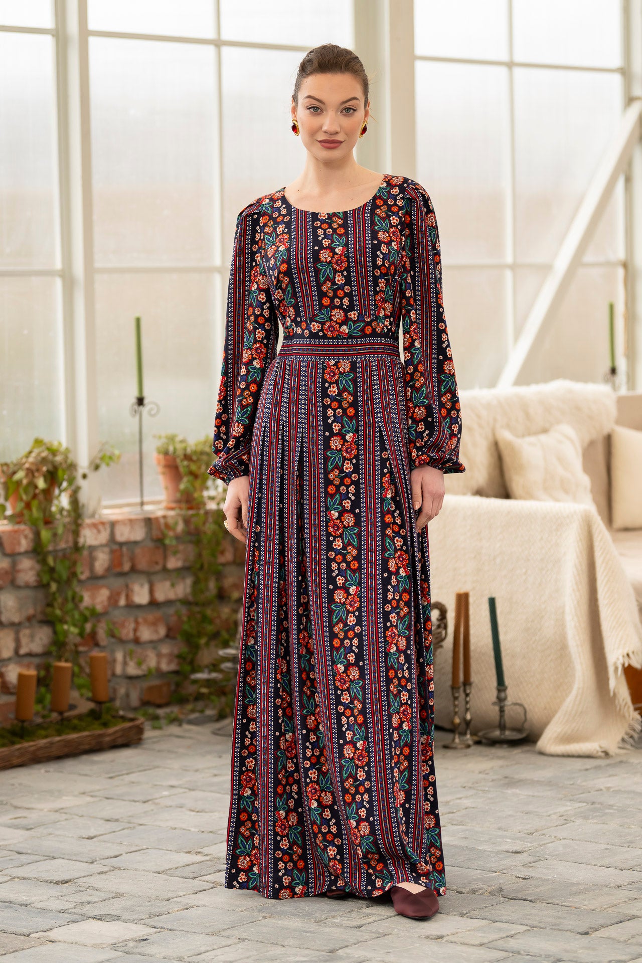 Conceptul imprimeului creat de noi, îmbină armonios motivele florale delicate cu accente geometrice inspirate din estetica etno , iar designul lejer și fluid este perfect pentru zilele însorite.