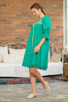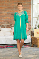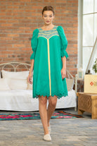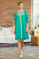 Rochia este confecționată din batist de bumbac și jacquard etnic țesut din fire de bumbac.