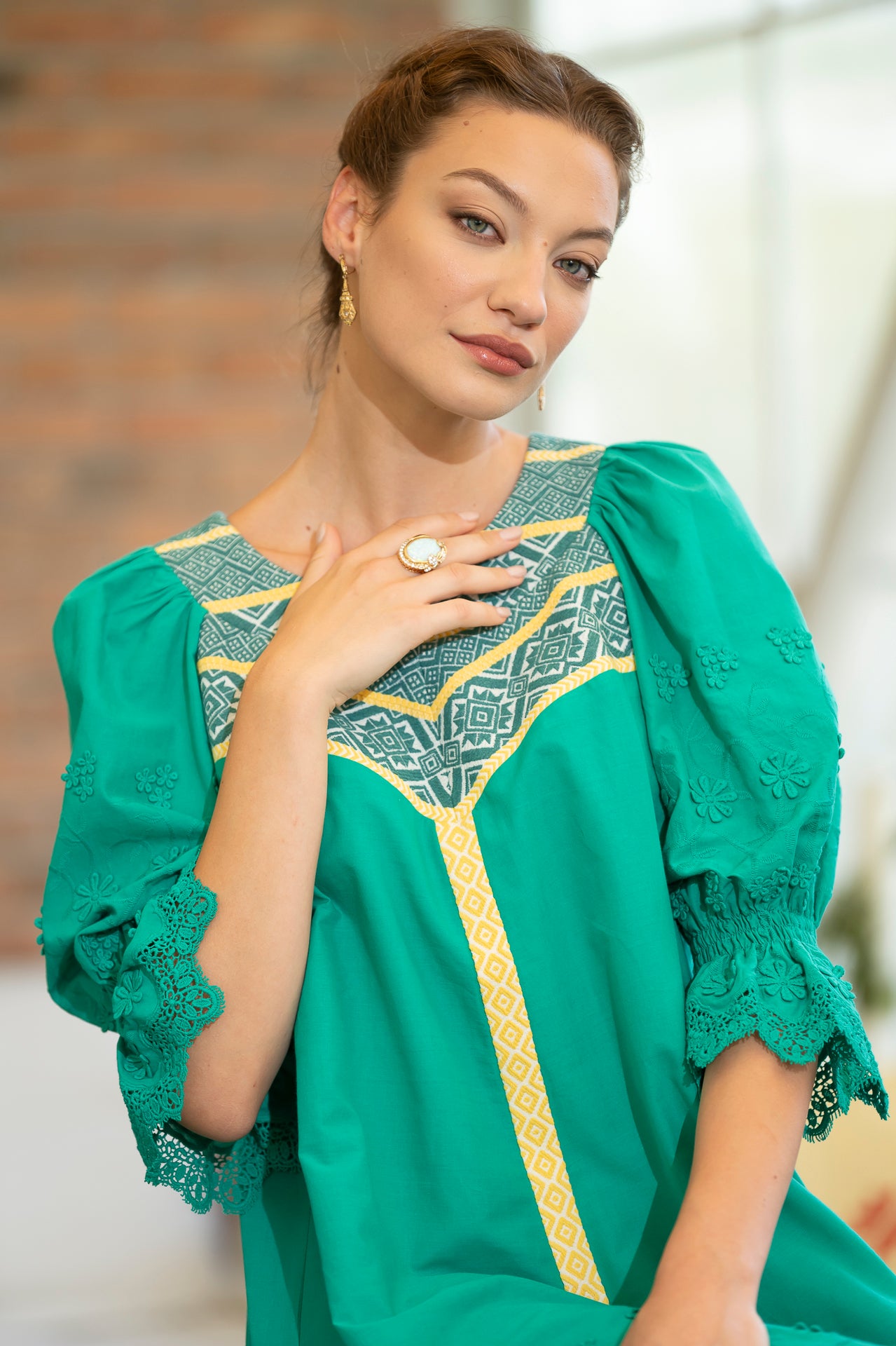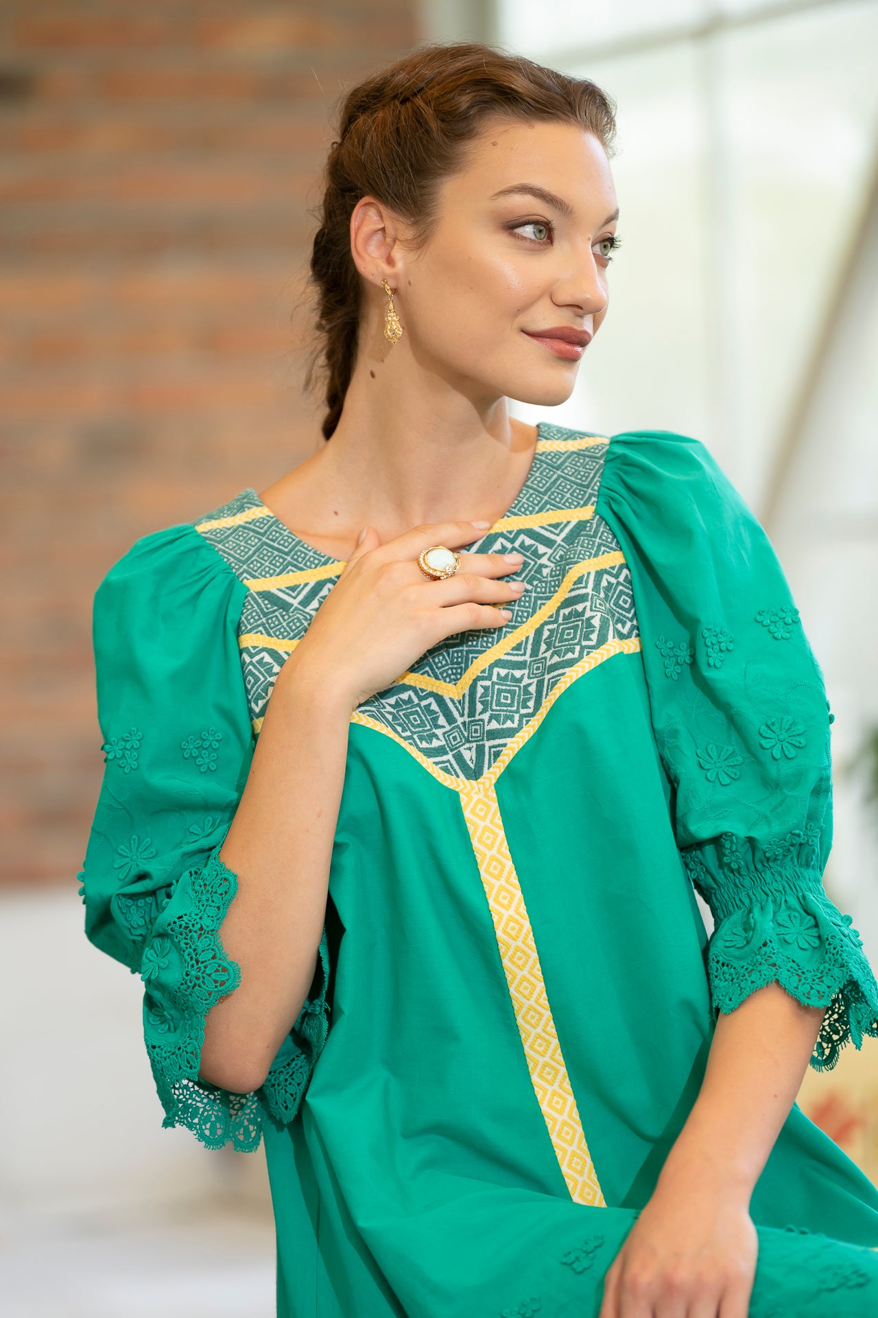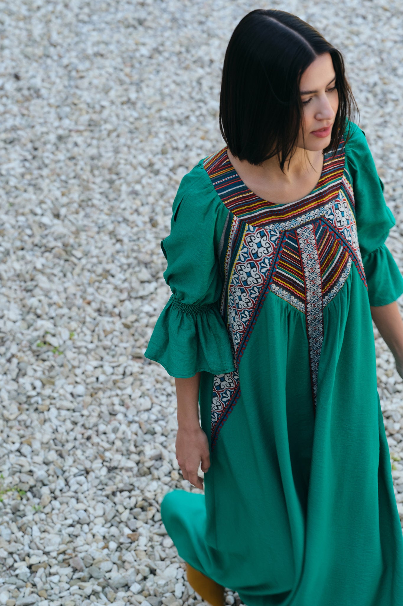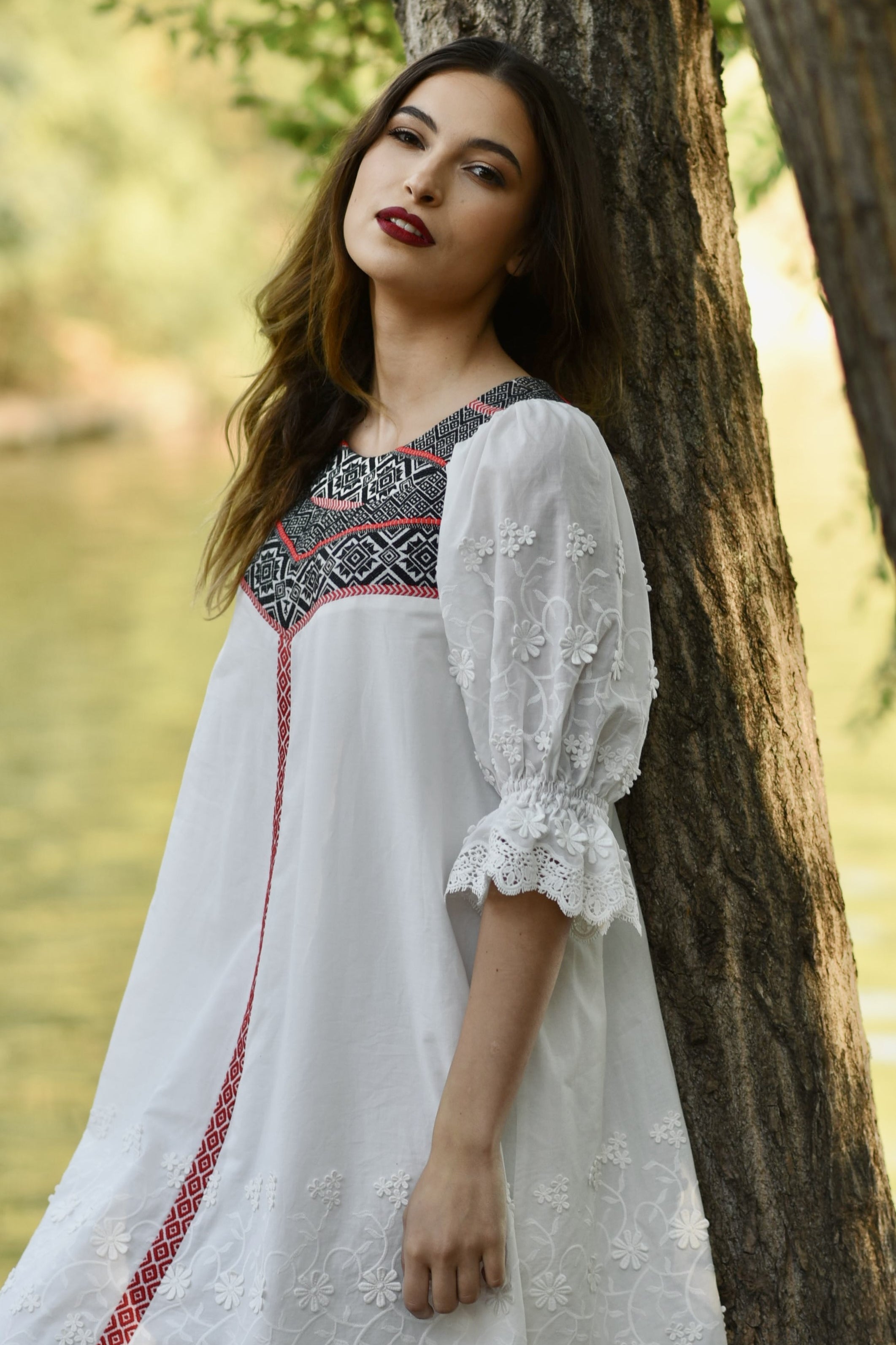 La IIANA, reinterpretăm moștenirea tradițională într-un stil contemporan, adăugând broderii fine și accente artizanale pe rochii elegante, fără a compromite confortul și stilul actual.