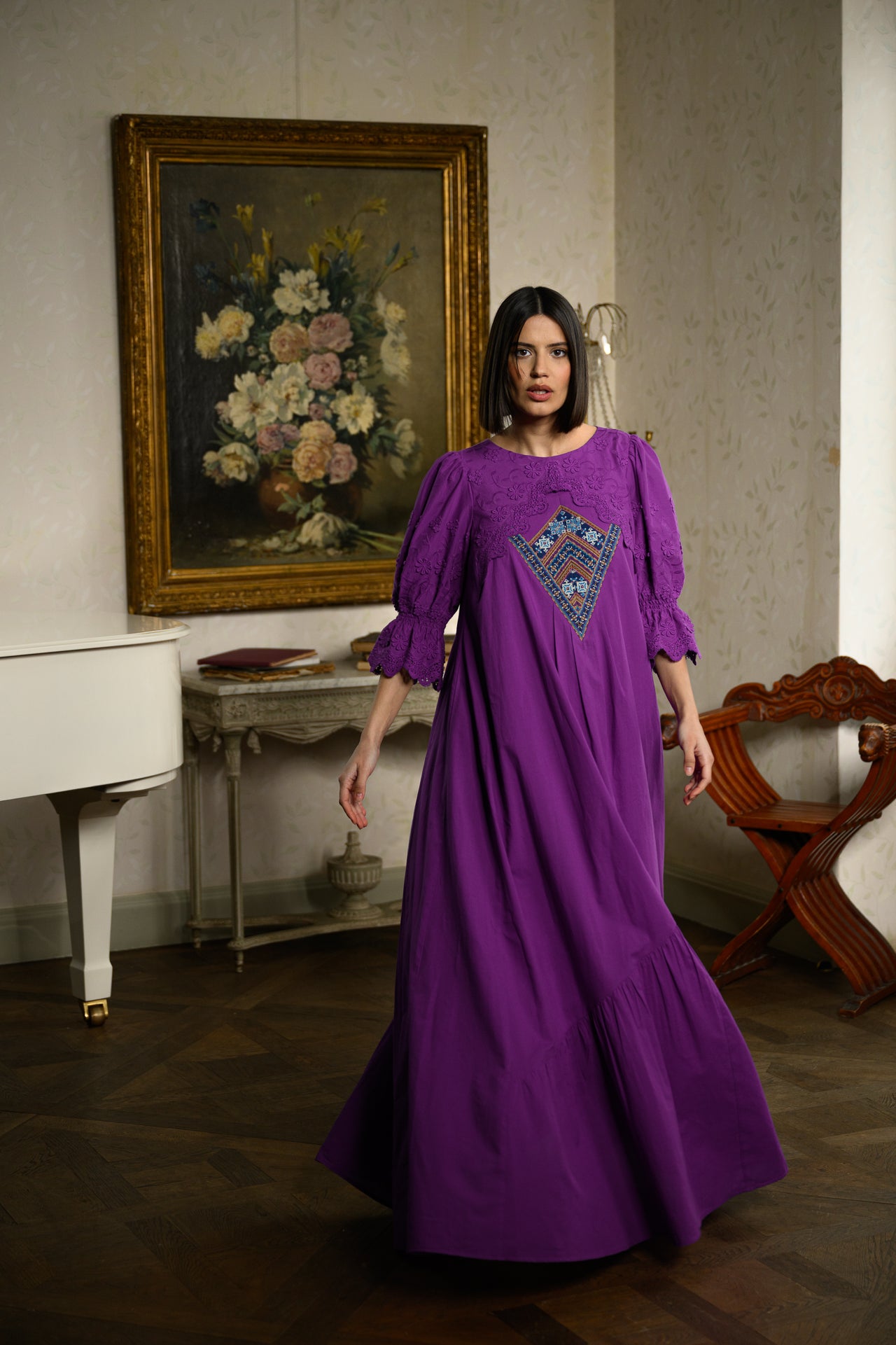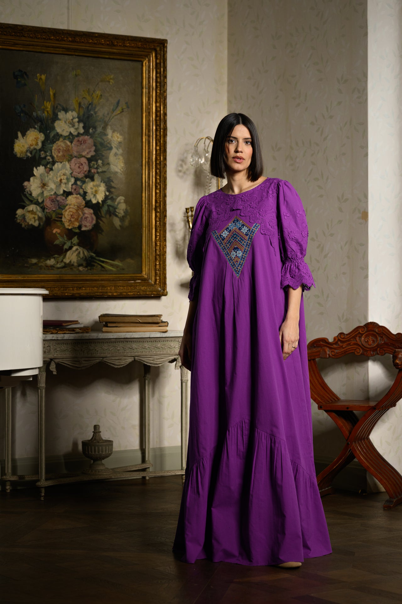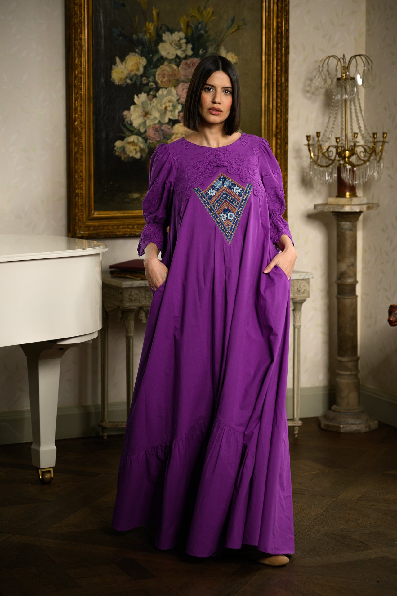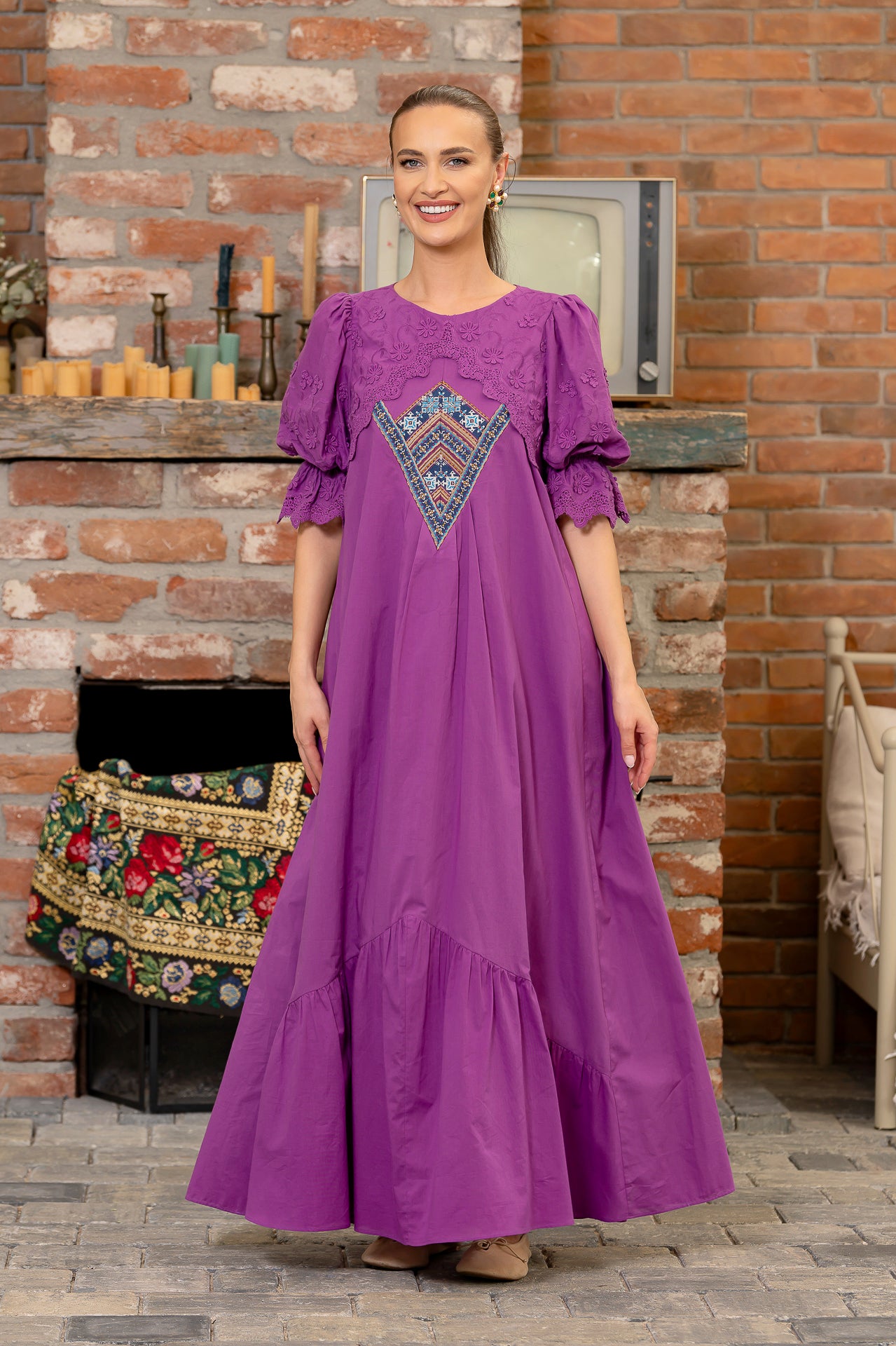 La IIANA, reinterpretăm moștenirea tradițională într-un stil contemporan, adăugând broderii fine și accente artizanale pe rochii elegante, fără a compromite confortul și stilul actual.