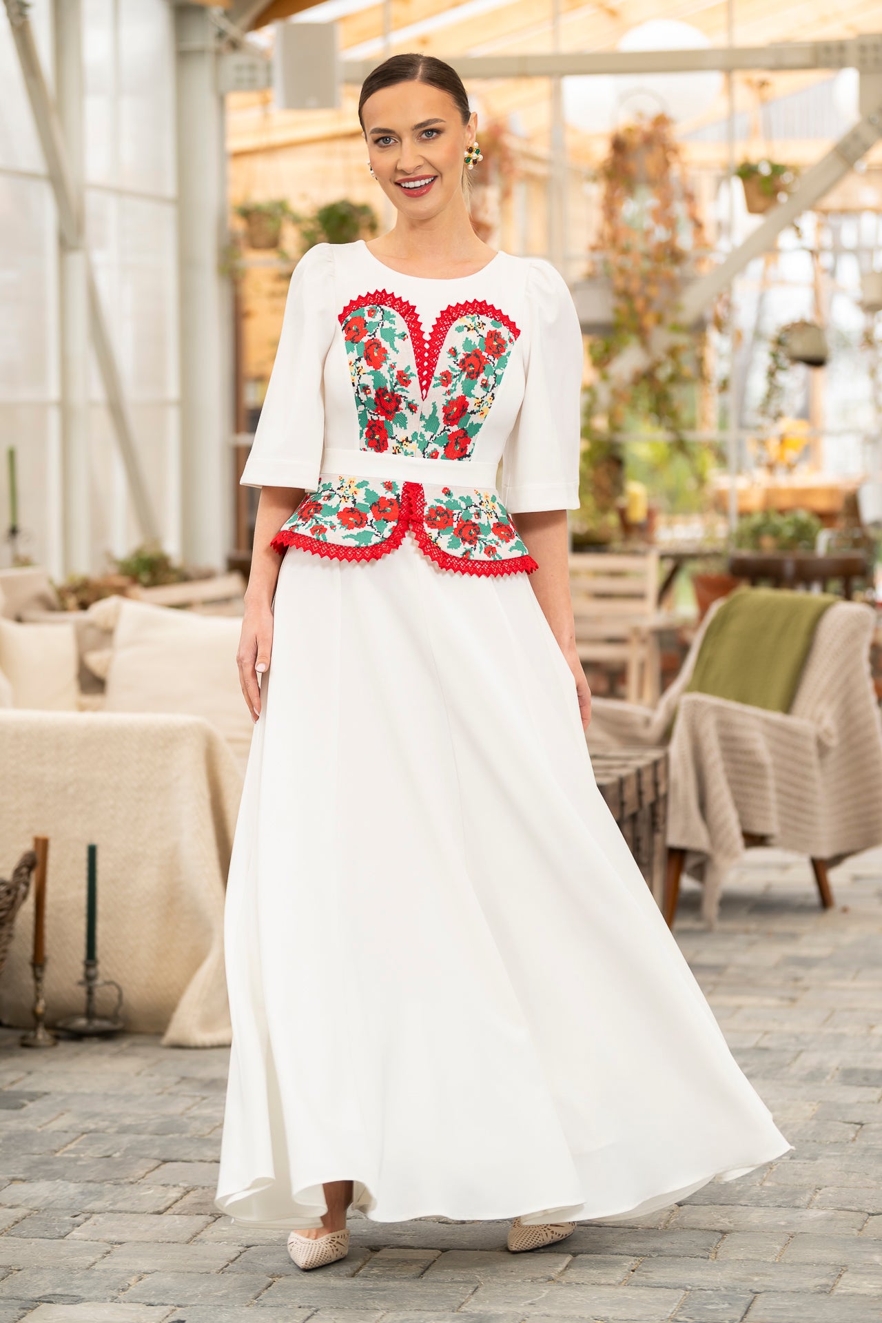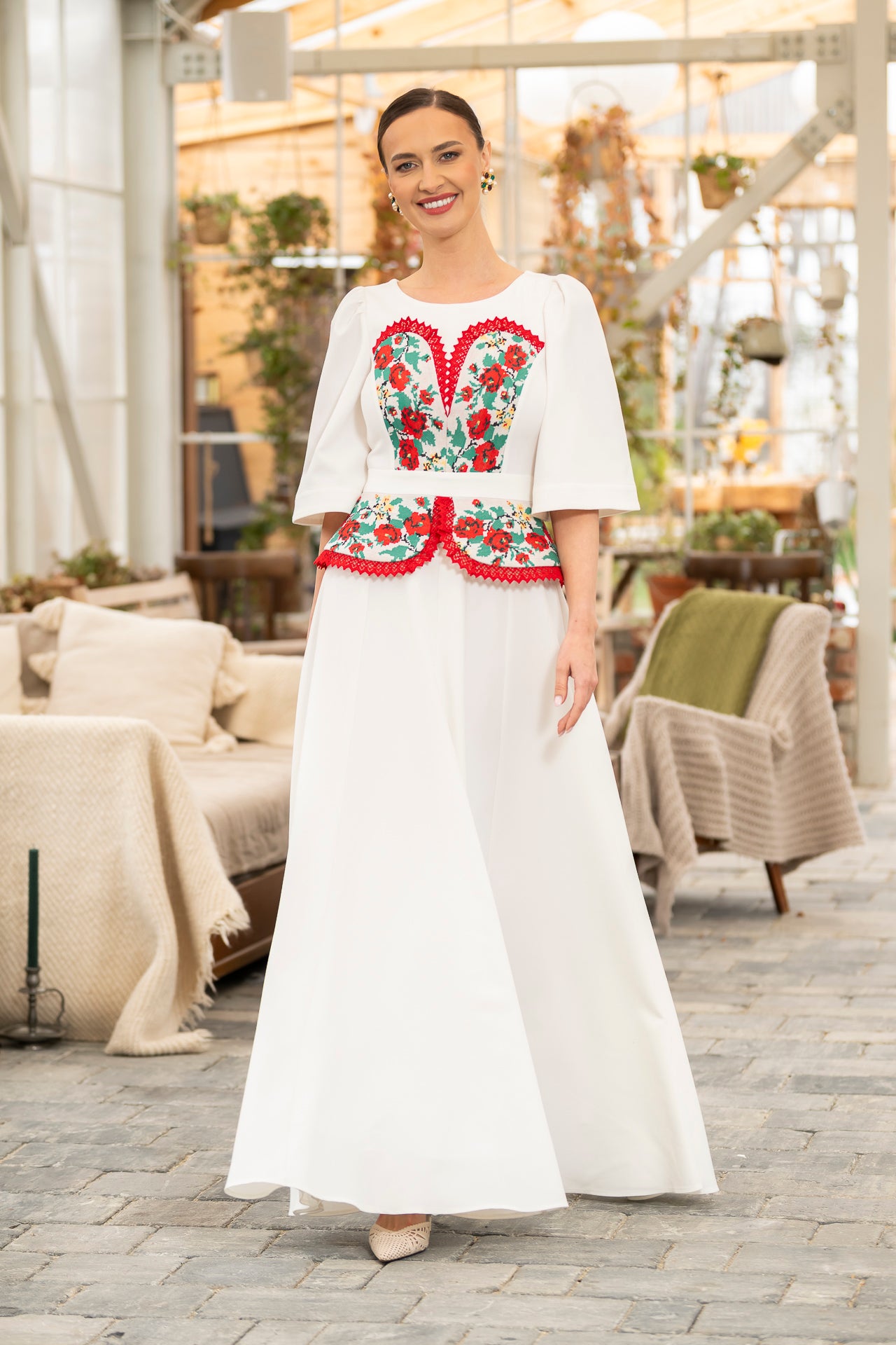 O rochie de mireasă tradițională este mai mult decât o ținută – este o expresie a identității culturale și a frumuseții meșteșugului autentic românesc. Cusute manual, cu broderii delicate inspirate din folclor, aceste rochii păstrează vie tradiția, aducând în același timp un aer sofisticat și elegant. Fiecare model este realizat din materiale naturale și brodat cu motive autentice, transformând ziua nunții într-un moment cu adevărat special.