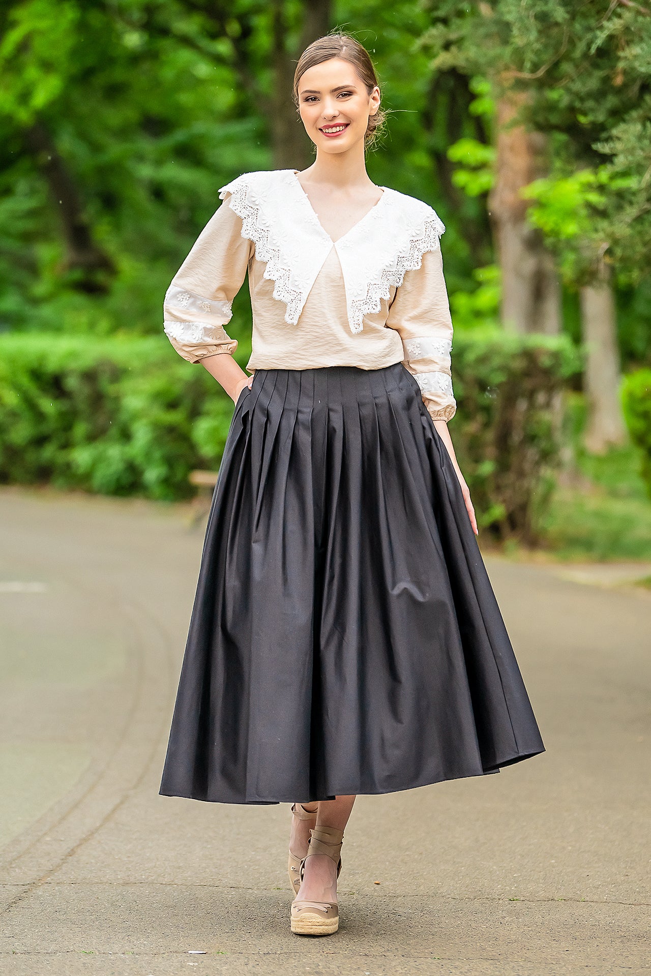 Bluza crem cu guler este o piesă versatilă și elegantă, care poate fi integrată cu succes în orice ținută de zi cu zi.