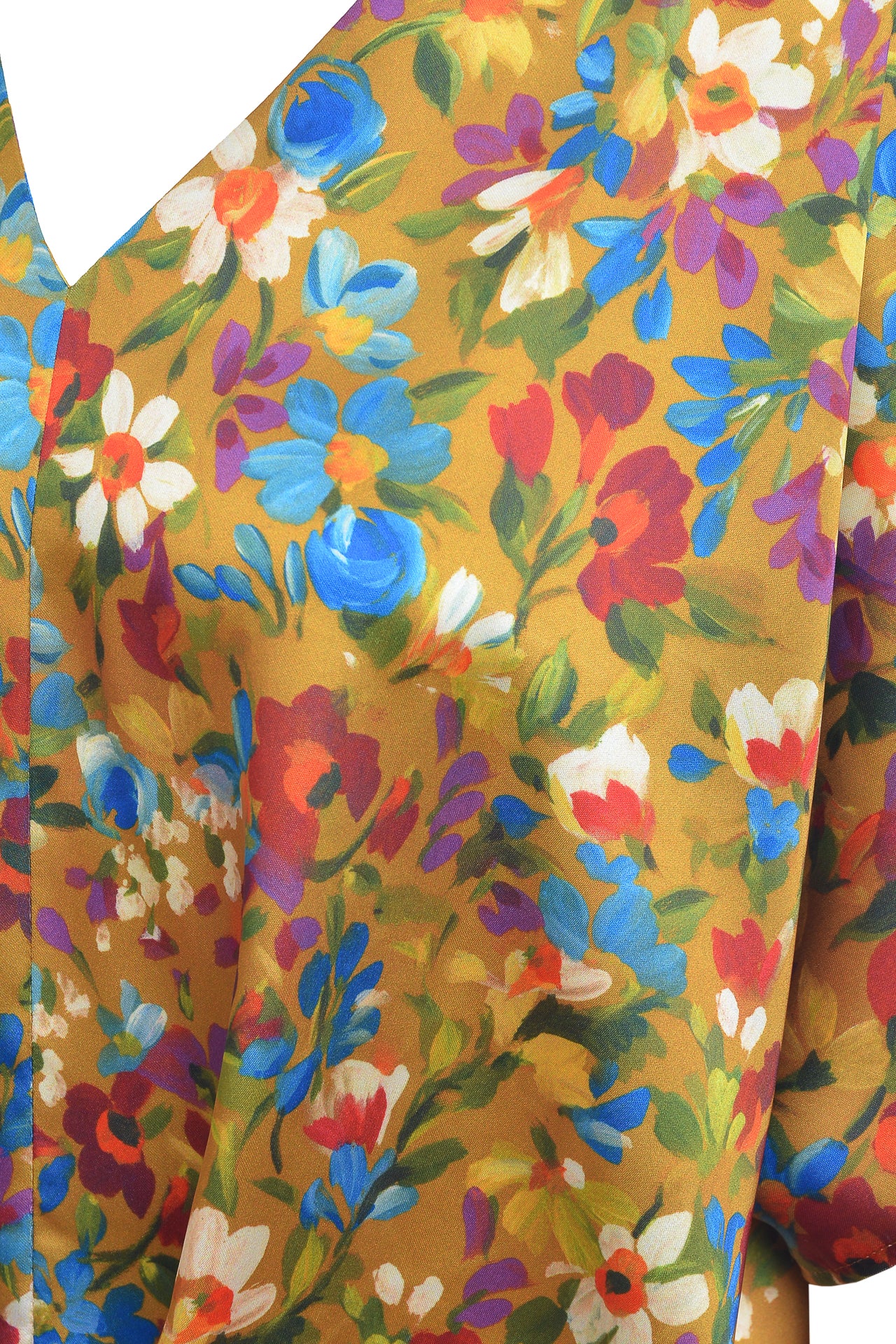 Bluza cu mânecă scurtă Primavera are un croi lejer, cu decolteu în anchior și mânecă scurtă, cu