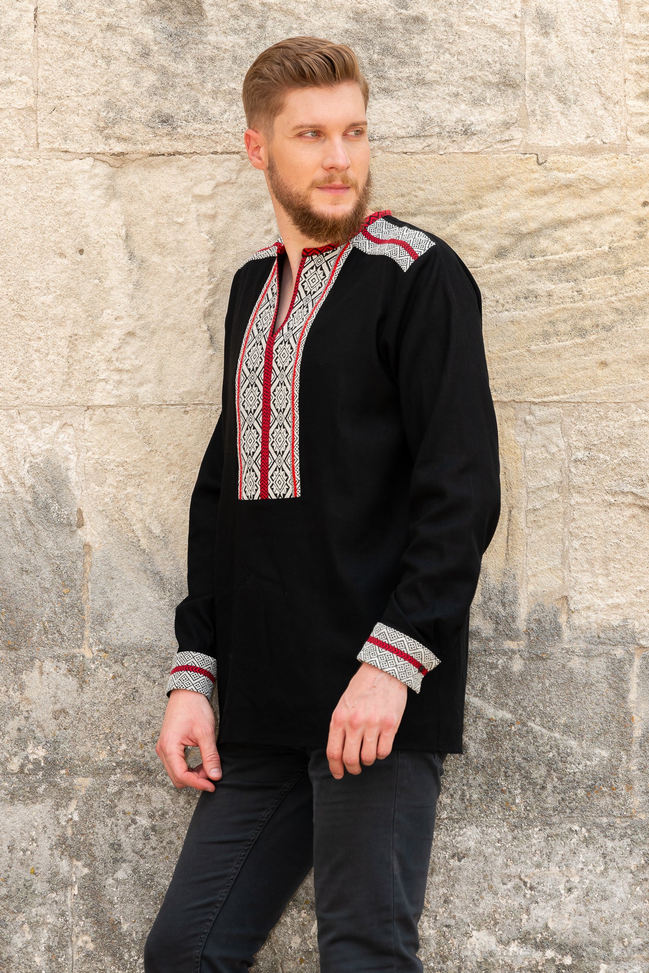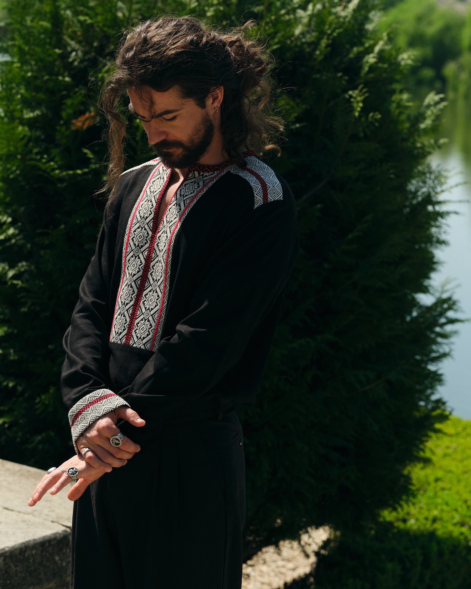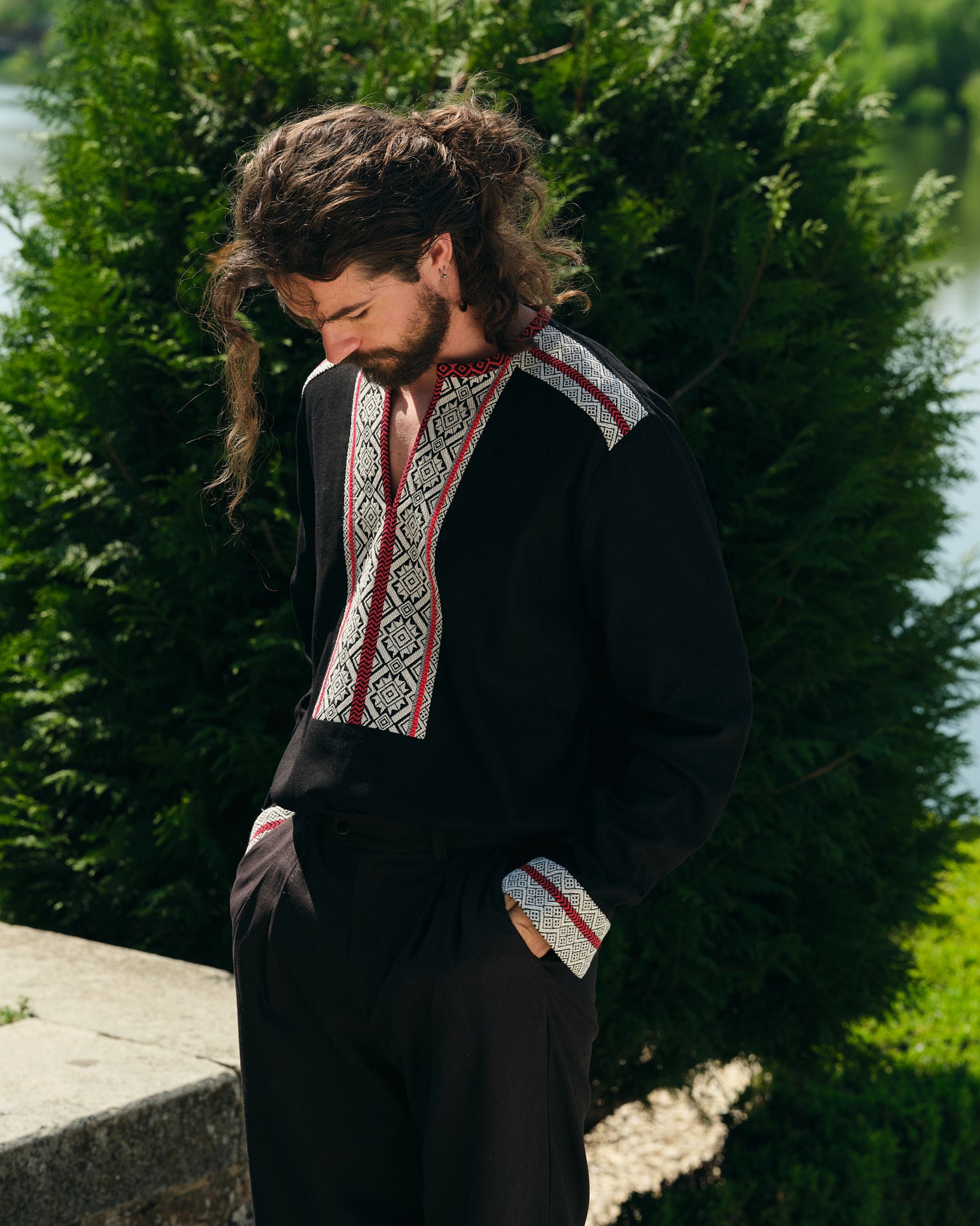 Camasa Barbateasca Traditionala Vladislav Cu Motive Populare este o piesă stilizată, inspirată din portul popular. Aceasta este confecționată din in prespalat, cu platcă, epoleți și manșete din jacquard etnic țesut. Are o croiala arhaică dreapta, cu mânecile amplu croite. Poate fi integrată cu succes într-o ținută relaxată de zi cu jeans și într-o ținută tradiționala cu pantalon.