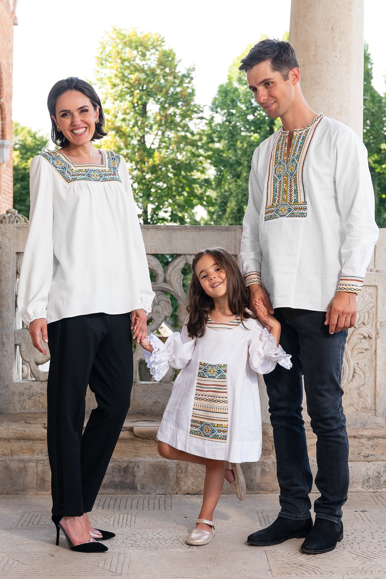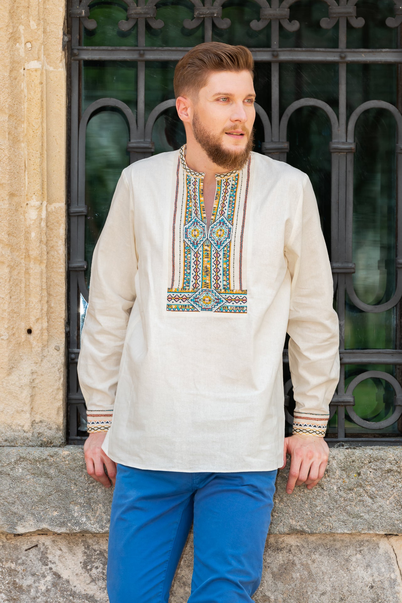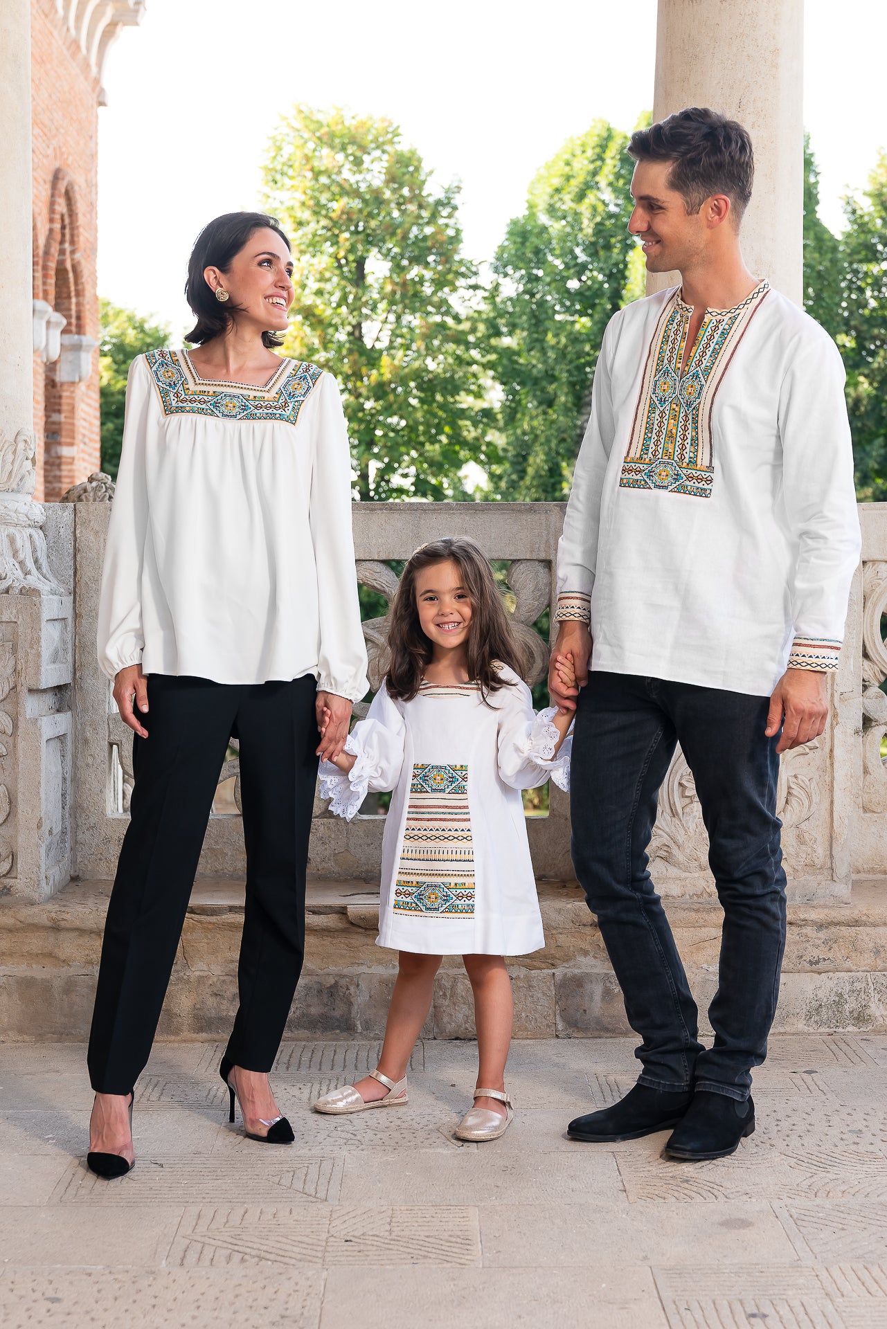 Camasa traditionala lui Basarab este o piesă stilizată, inspirată din portul popular. Este confecționată din in prespalat, cu platcă și manșete din jacquard etnic țesut. Are o croială arhaică dreaptă, cu mânecile amplu croite. Camasa traditionala poate fi integrată cu succes în ținute diverse și oferă un look autentic.