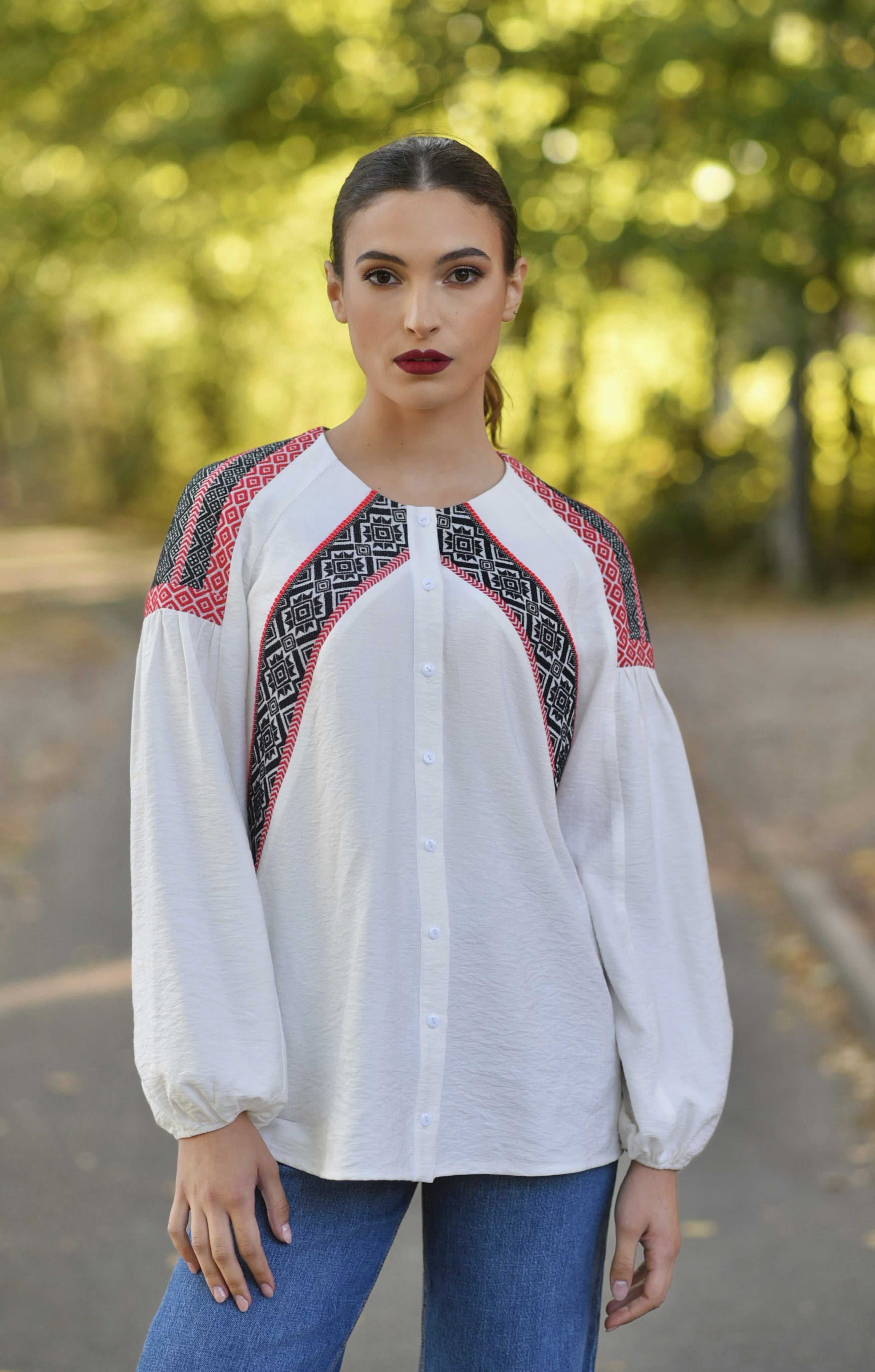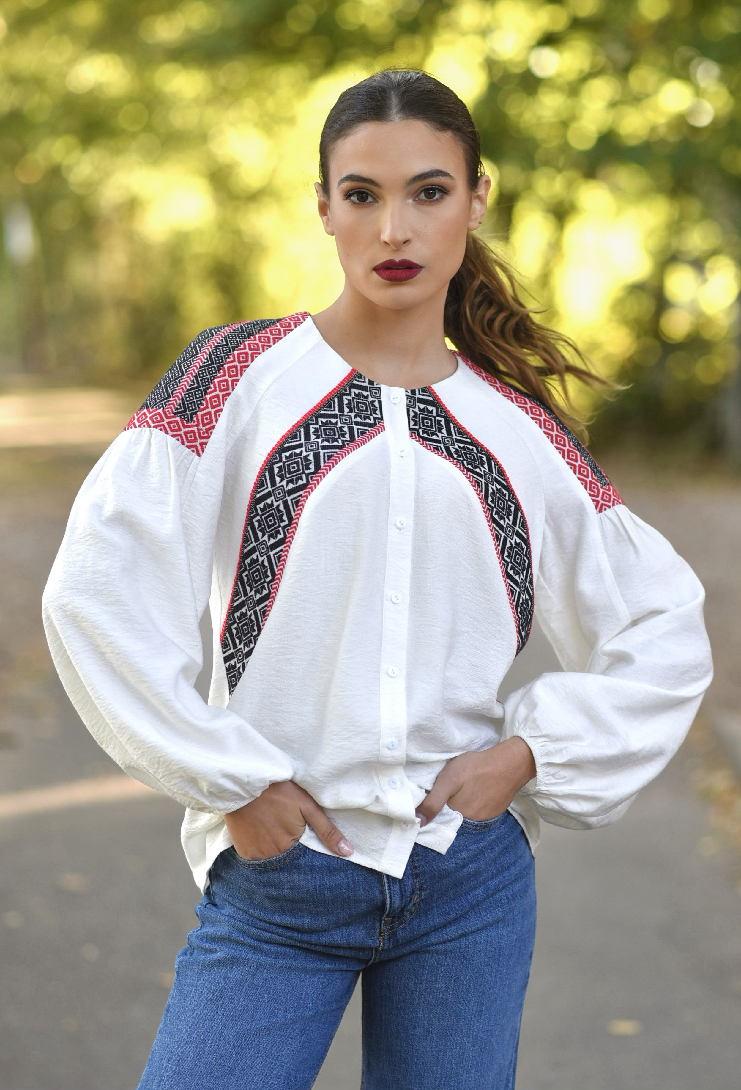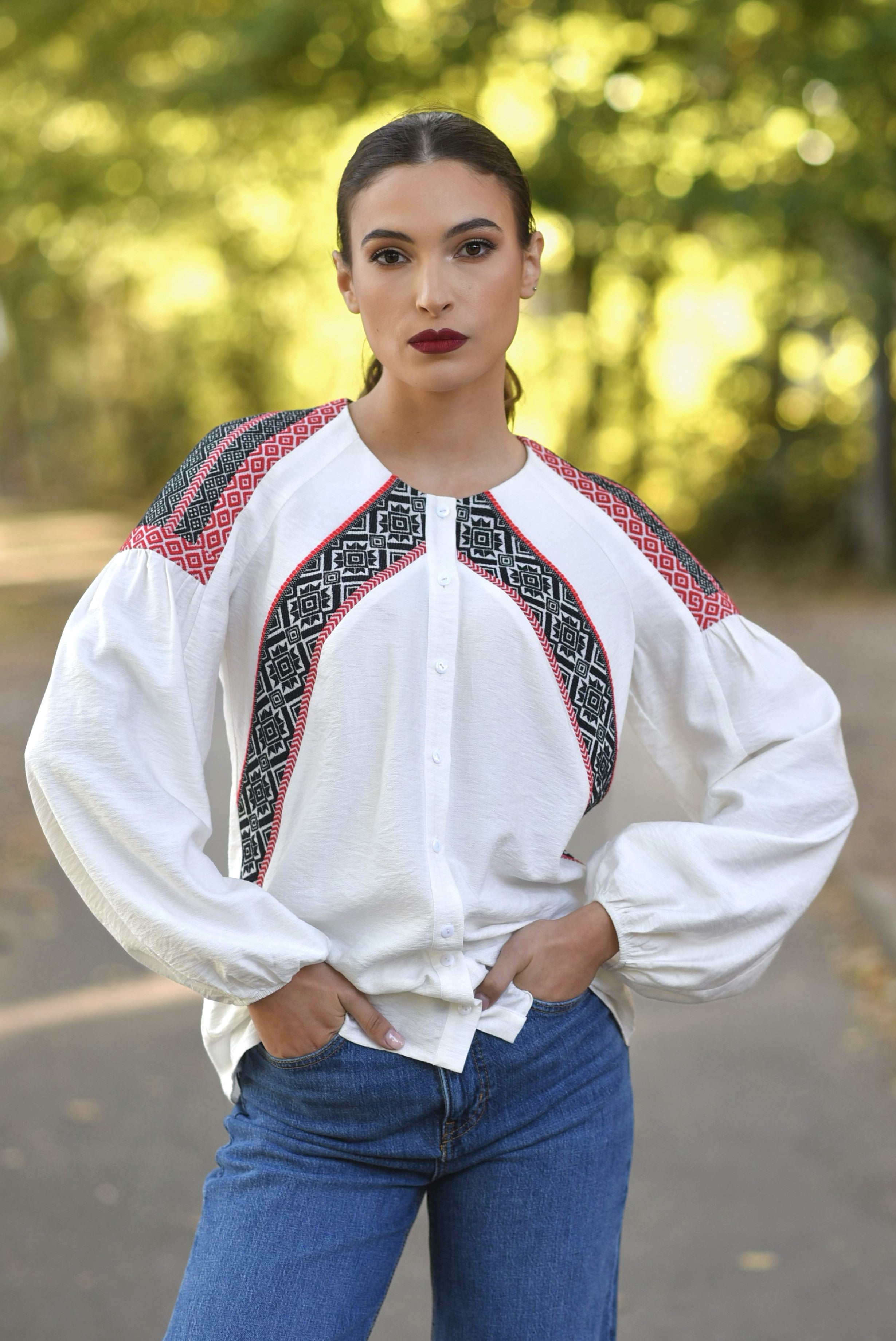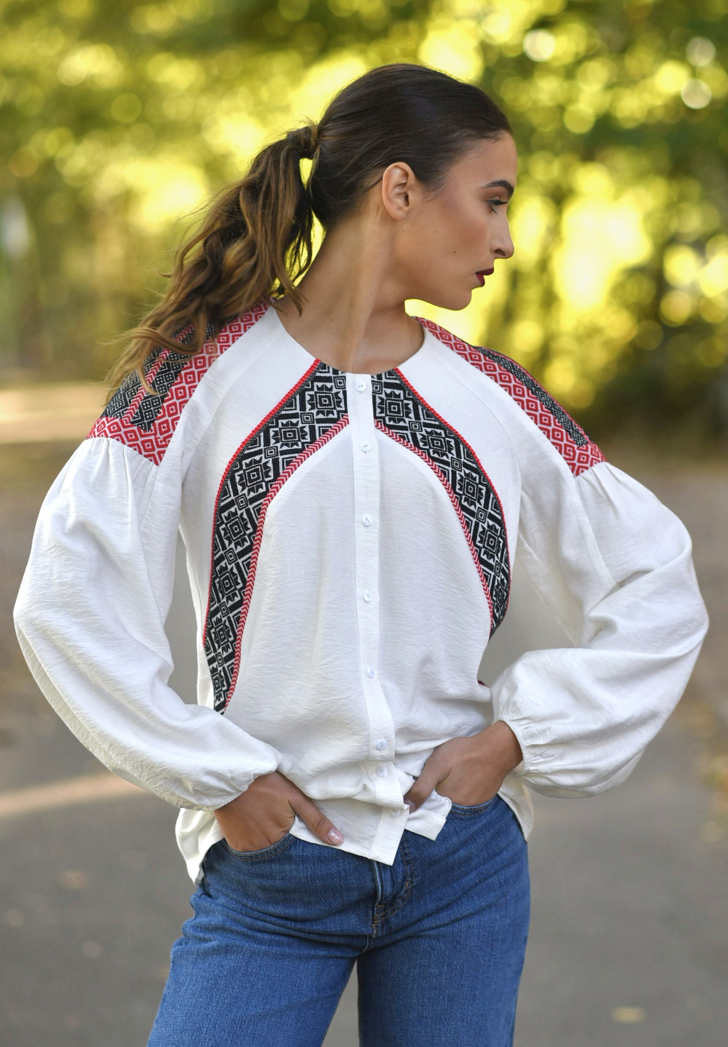 Cămașa IIANA este o piesă specială care îmbină armonios elementele tradiționale arhaice cu versatilitatea epocii moderne.