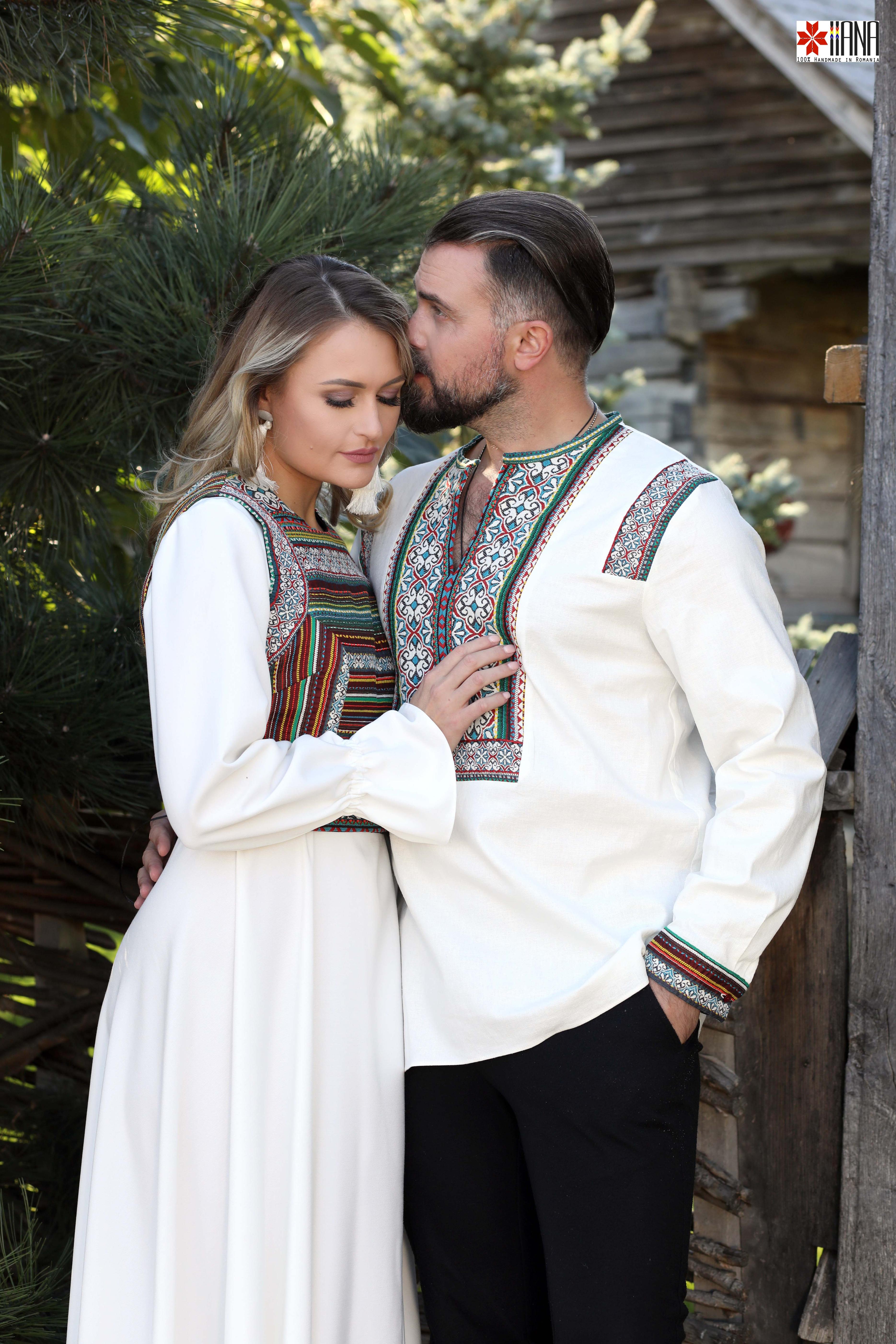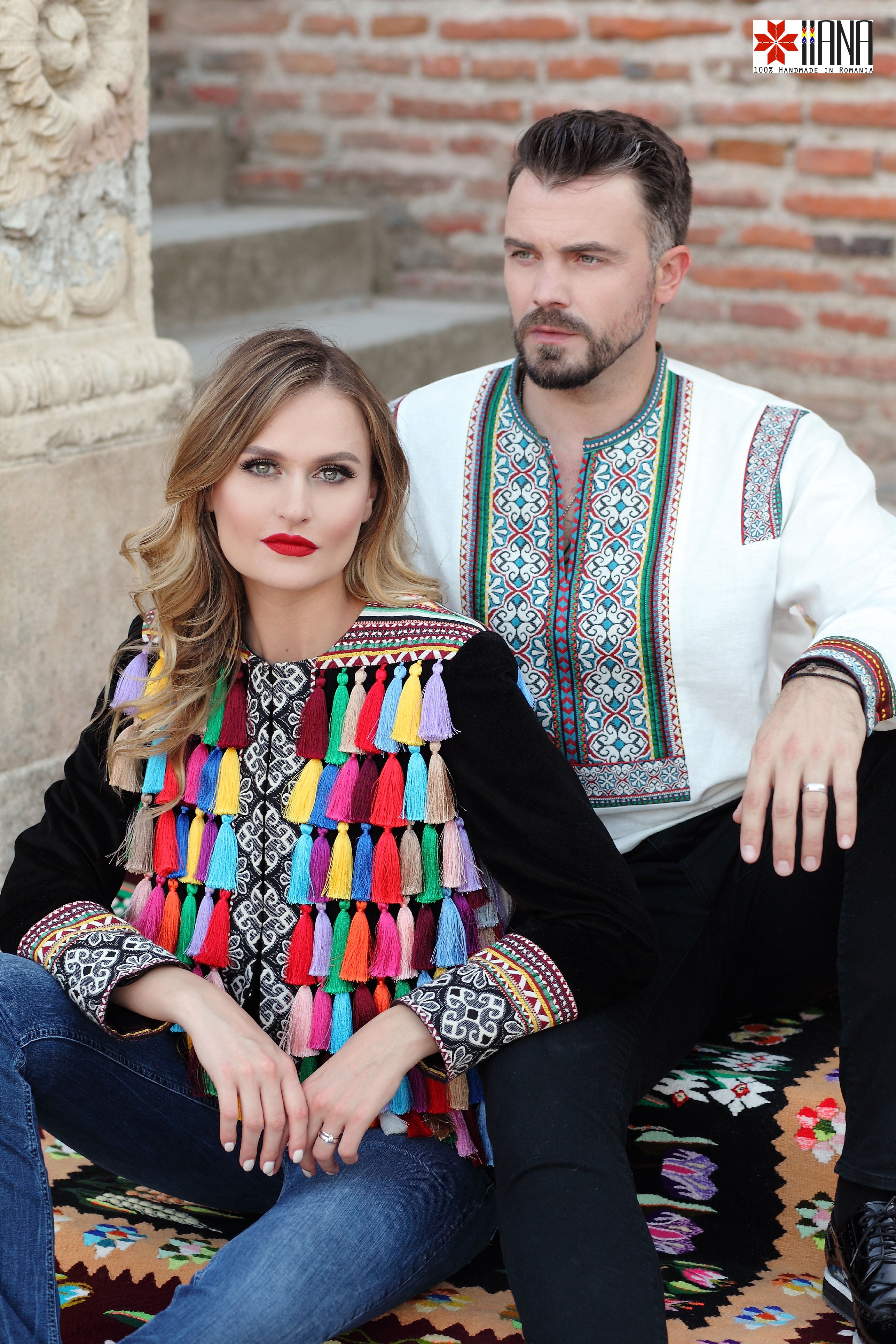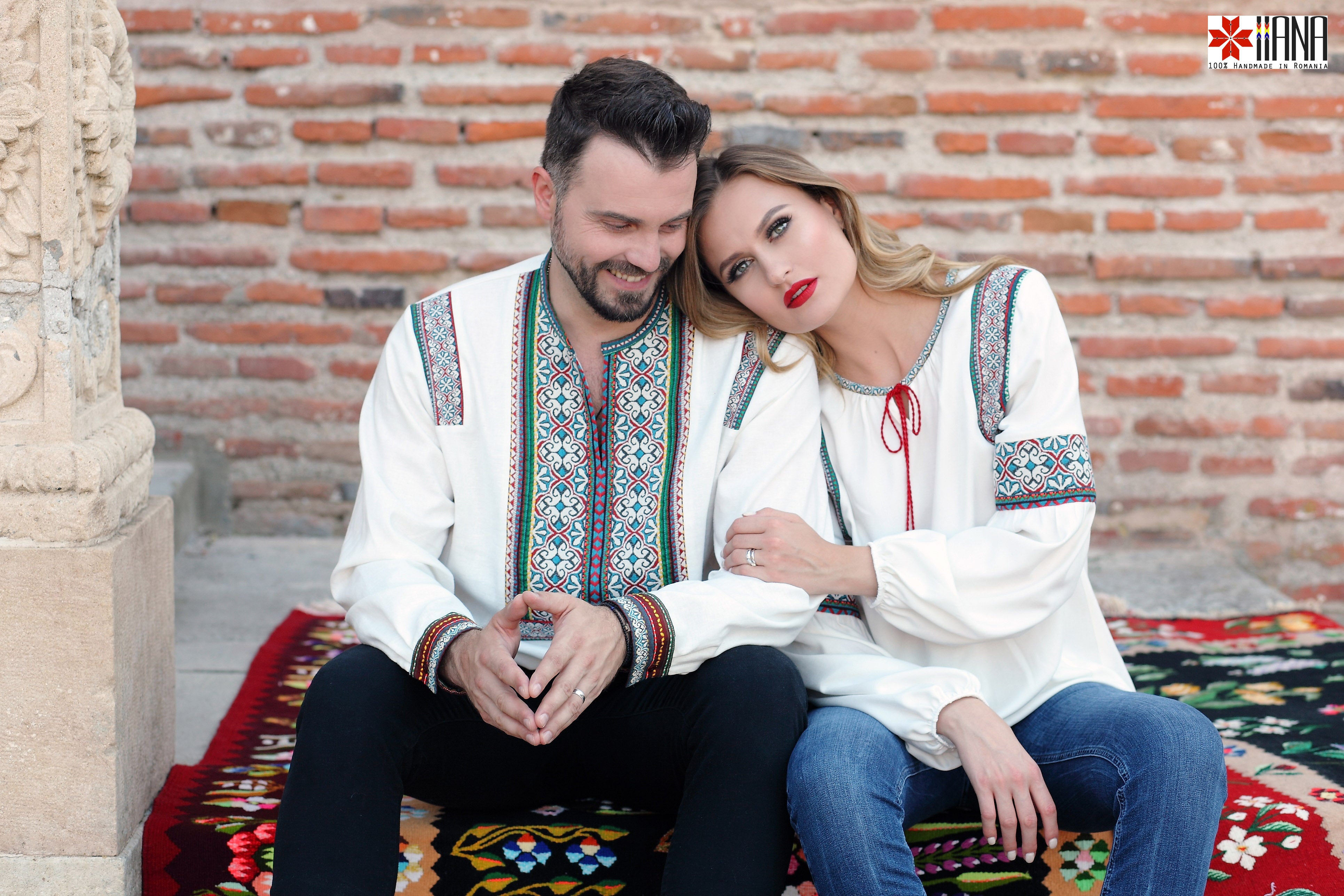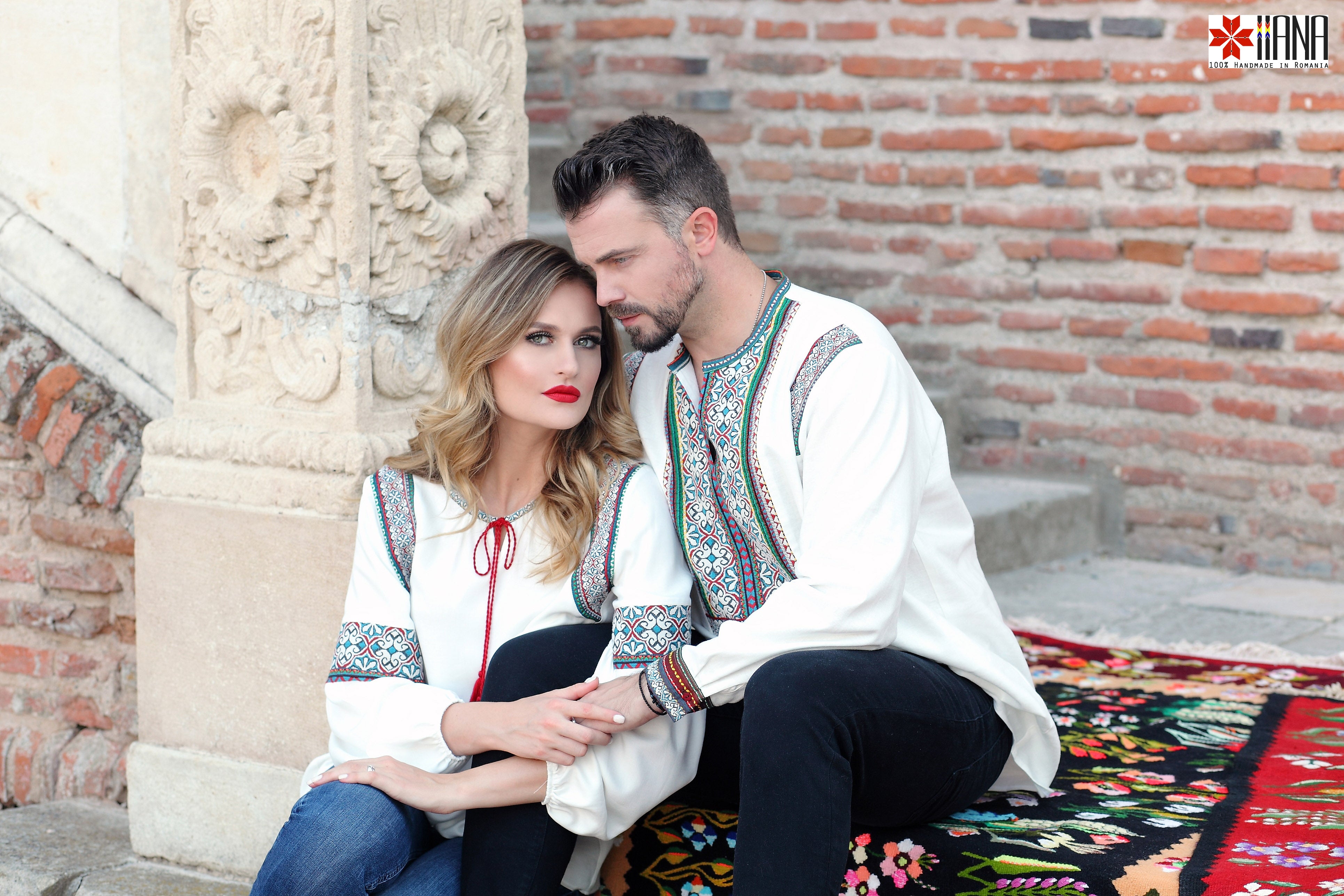 Camasa barbateasca romaneasca de horă este o piesă stilizată, inspirată din portul popular. Este confecționată din in prespălat, cu platcă, epoleți și manșete din jacquard etnic țesut. Are o croială arhaică dreaptă, cu mânecile amplu croite. Poate fi integrată cu succes într-o ținută relaxată de zi cu jeans și într-o ținută tradițională cu pantalon.