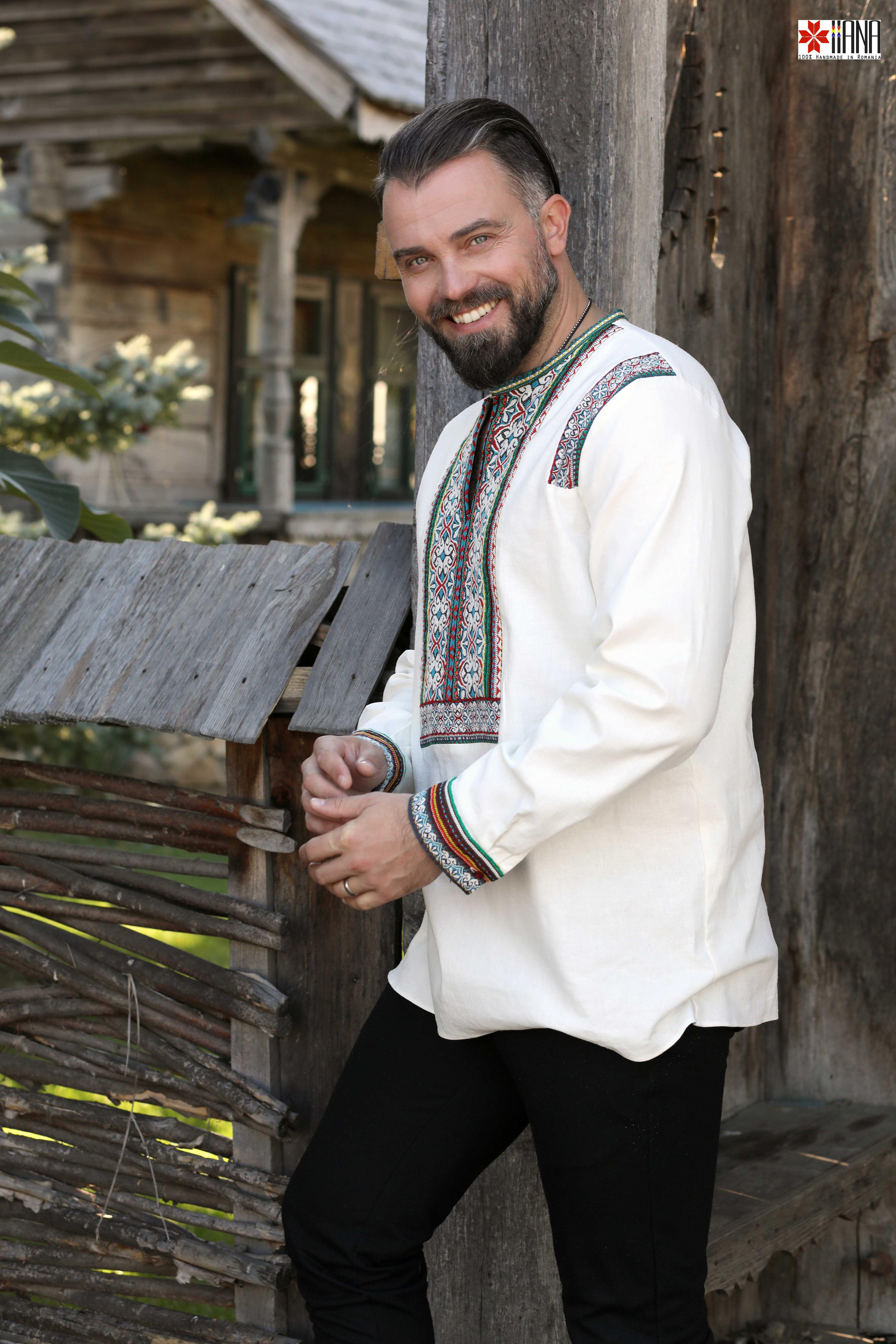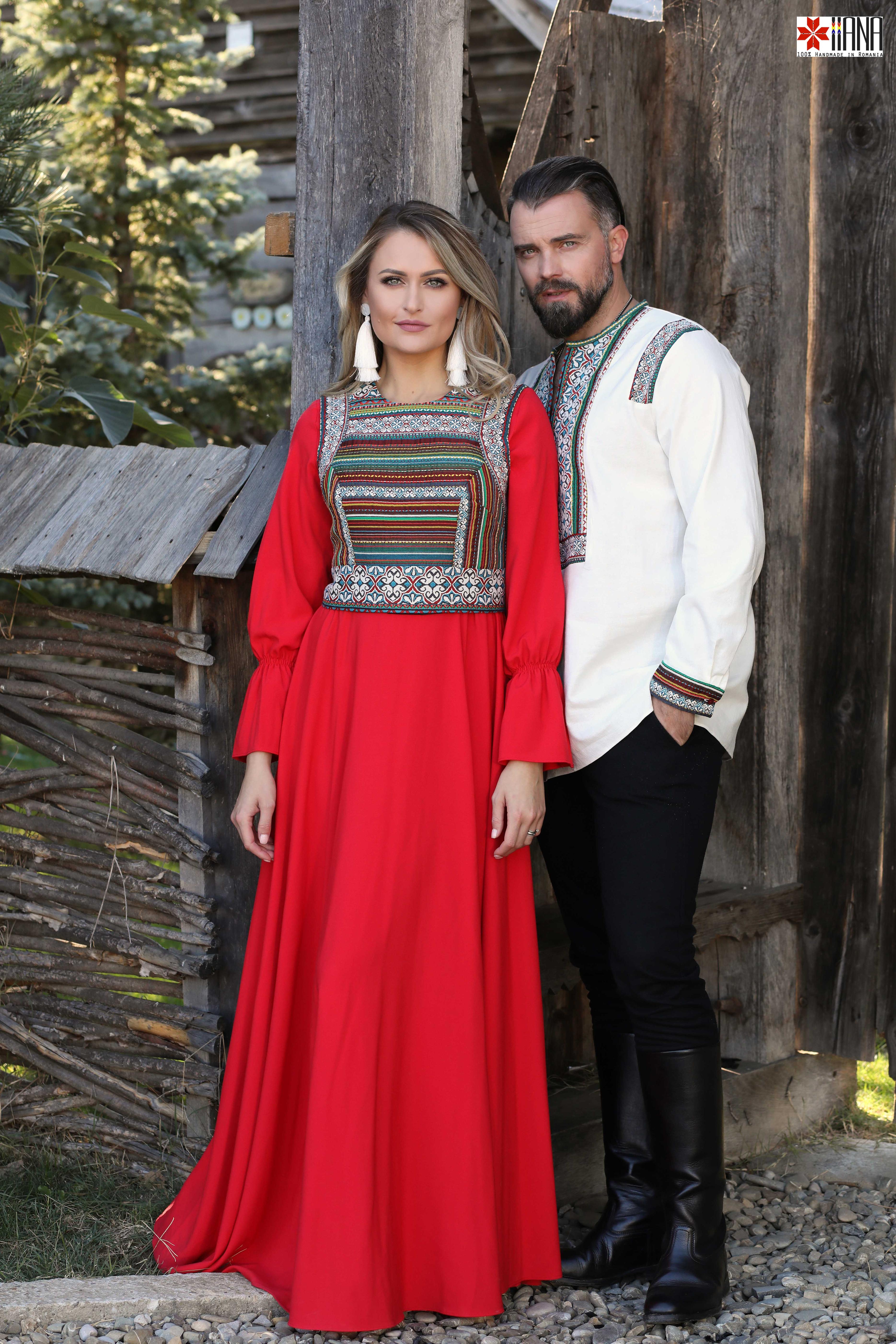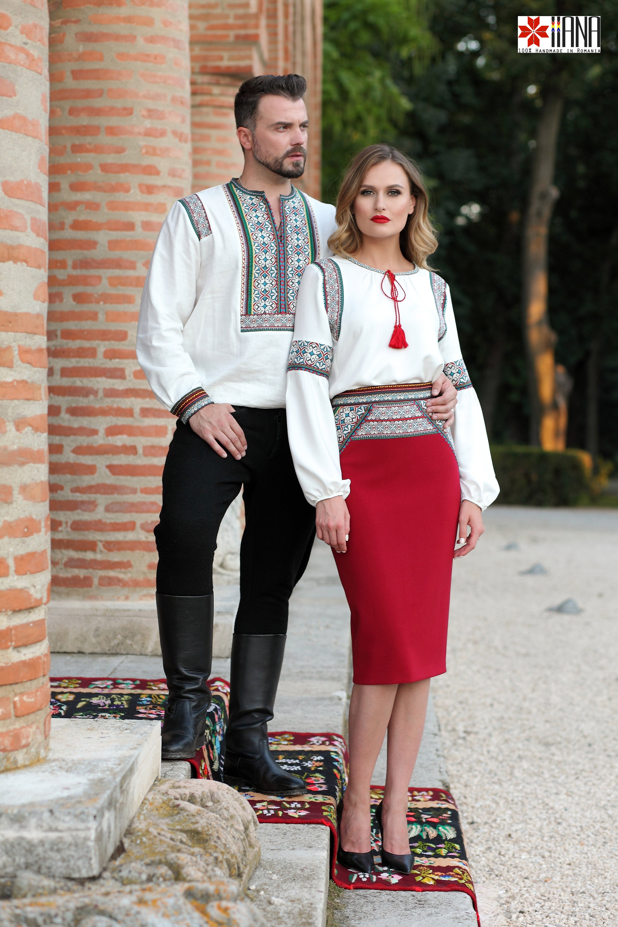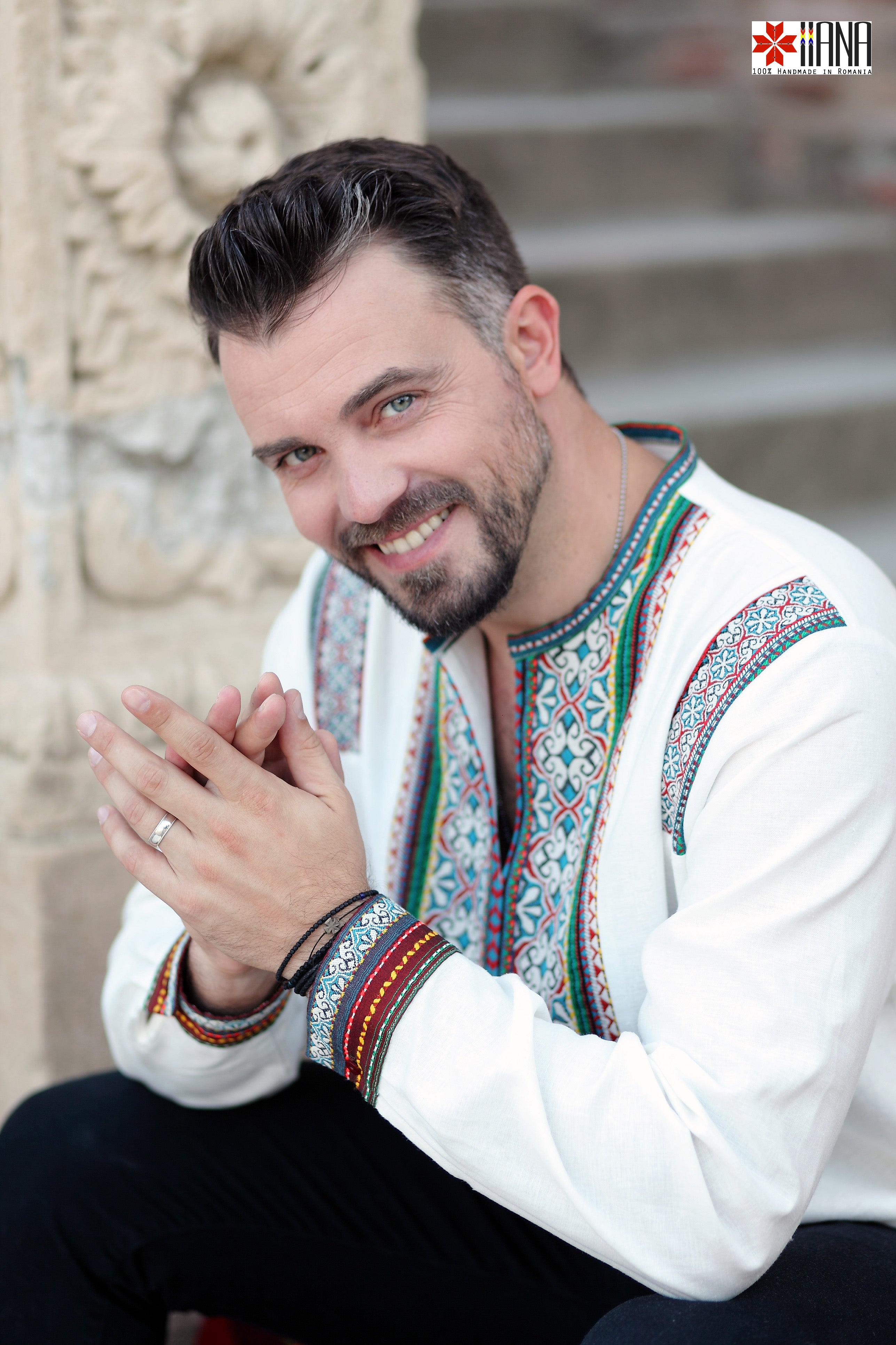 Camasa barbateasca romaneasca de horă este o piesă stilizată, inspirată din portul popular. Este confecționată din in prespălat, cu platcă, epoleți și manșete din jacquard etnic țesut. Are o croială arhaică dreaptă, cu mânecile amplu croite. Poate fi integrată cu succes într-o ținută relaxată de zi cu jeans și într-o ținută tradițională cu pantalon.