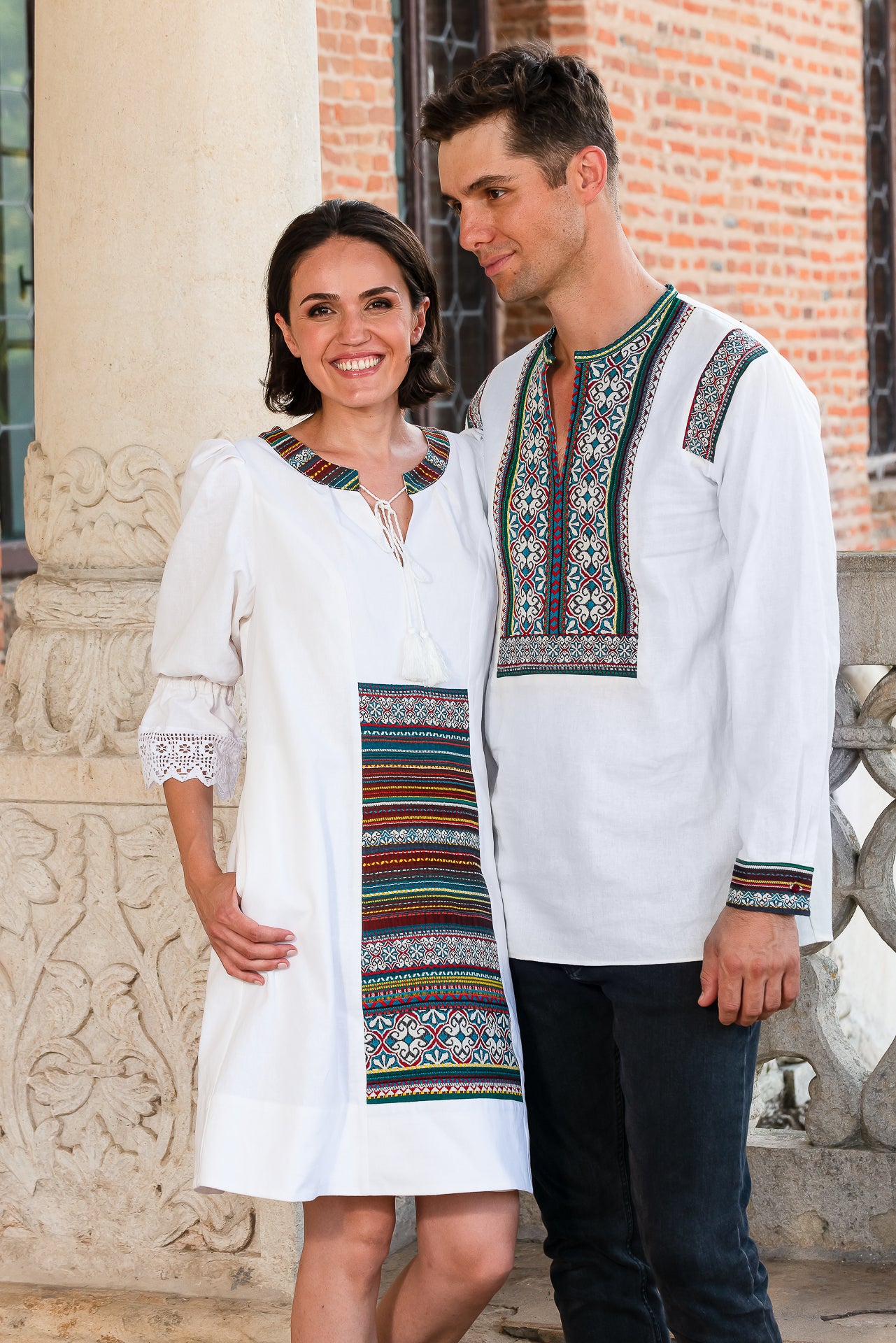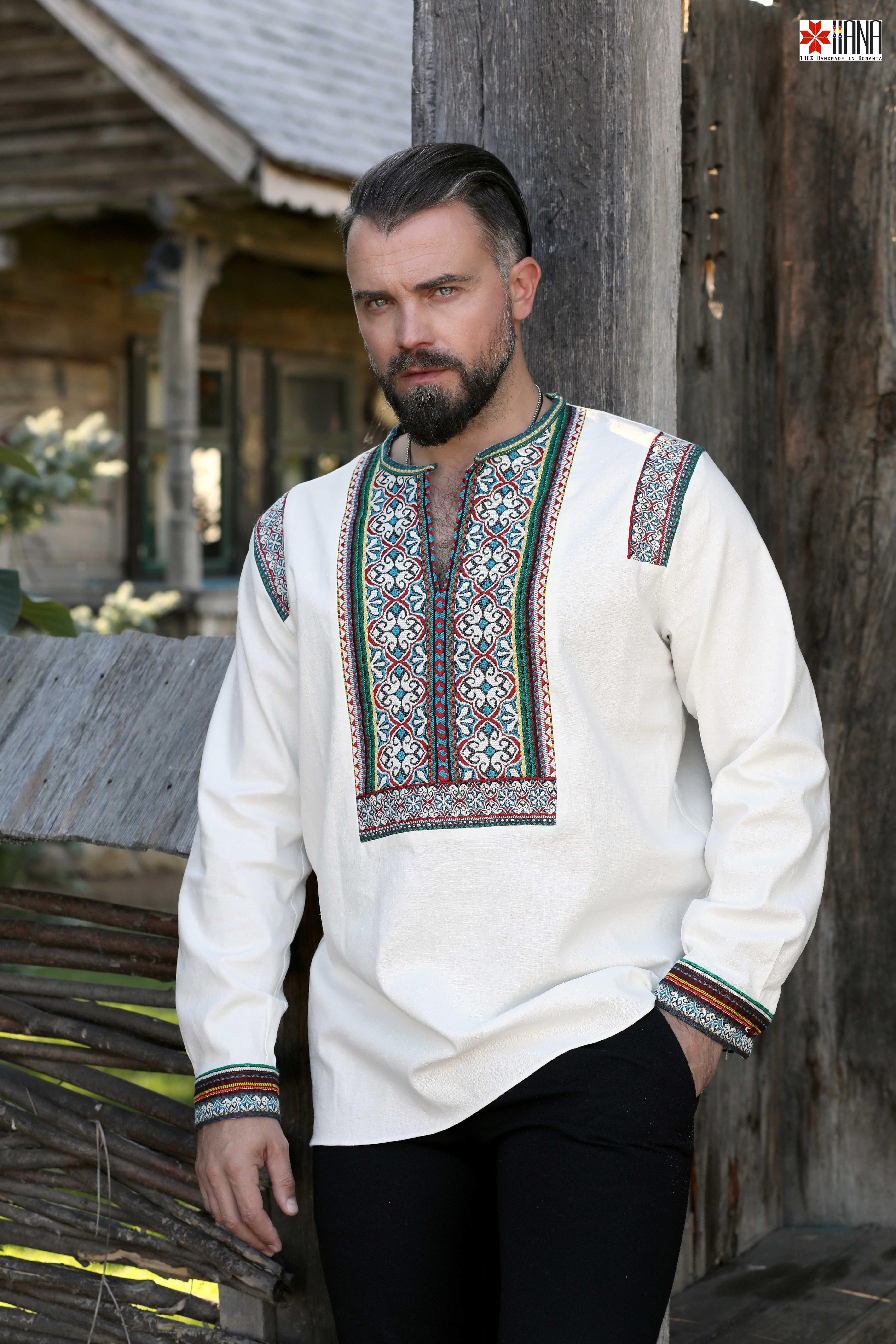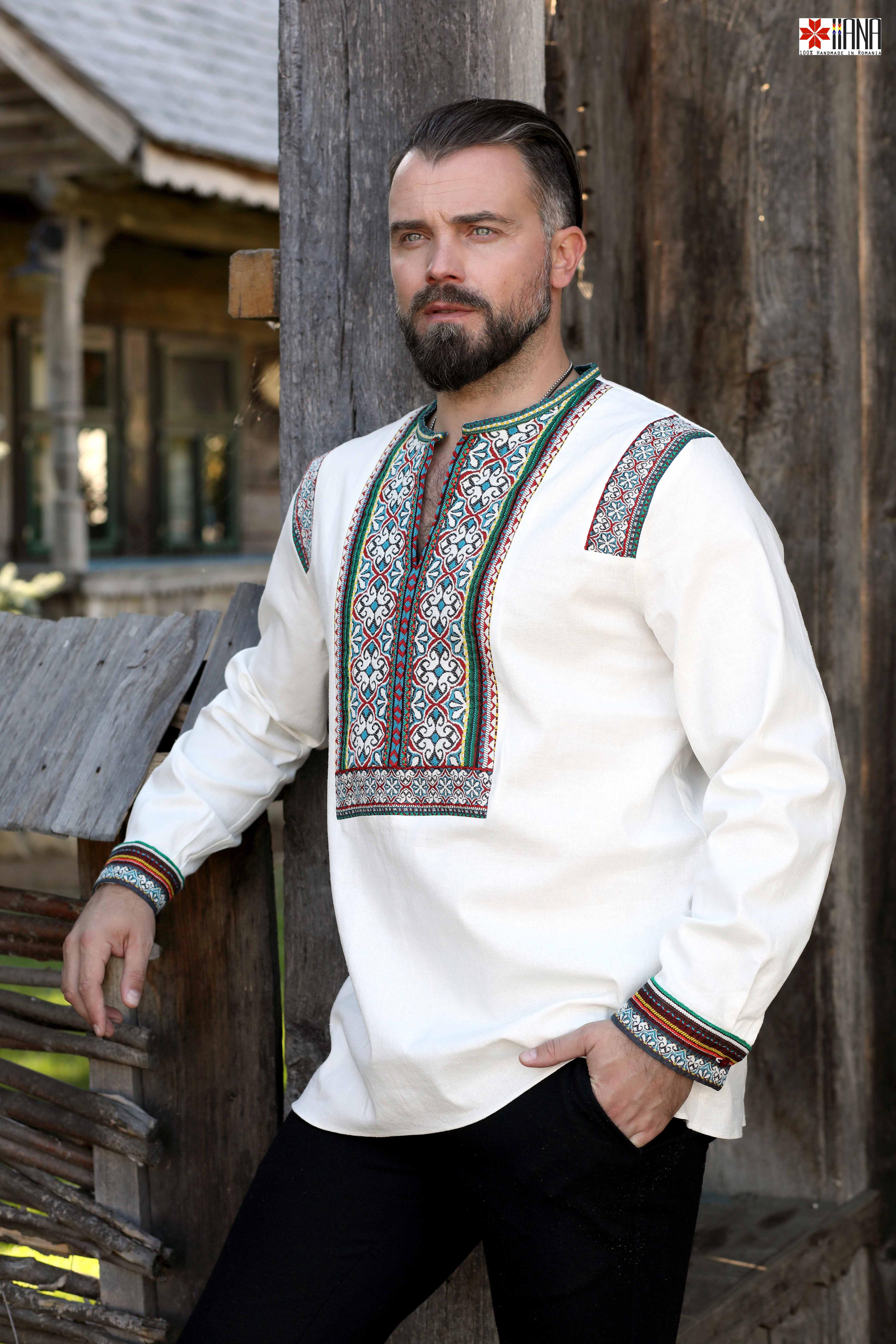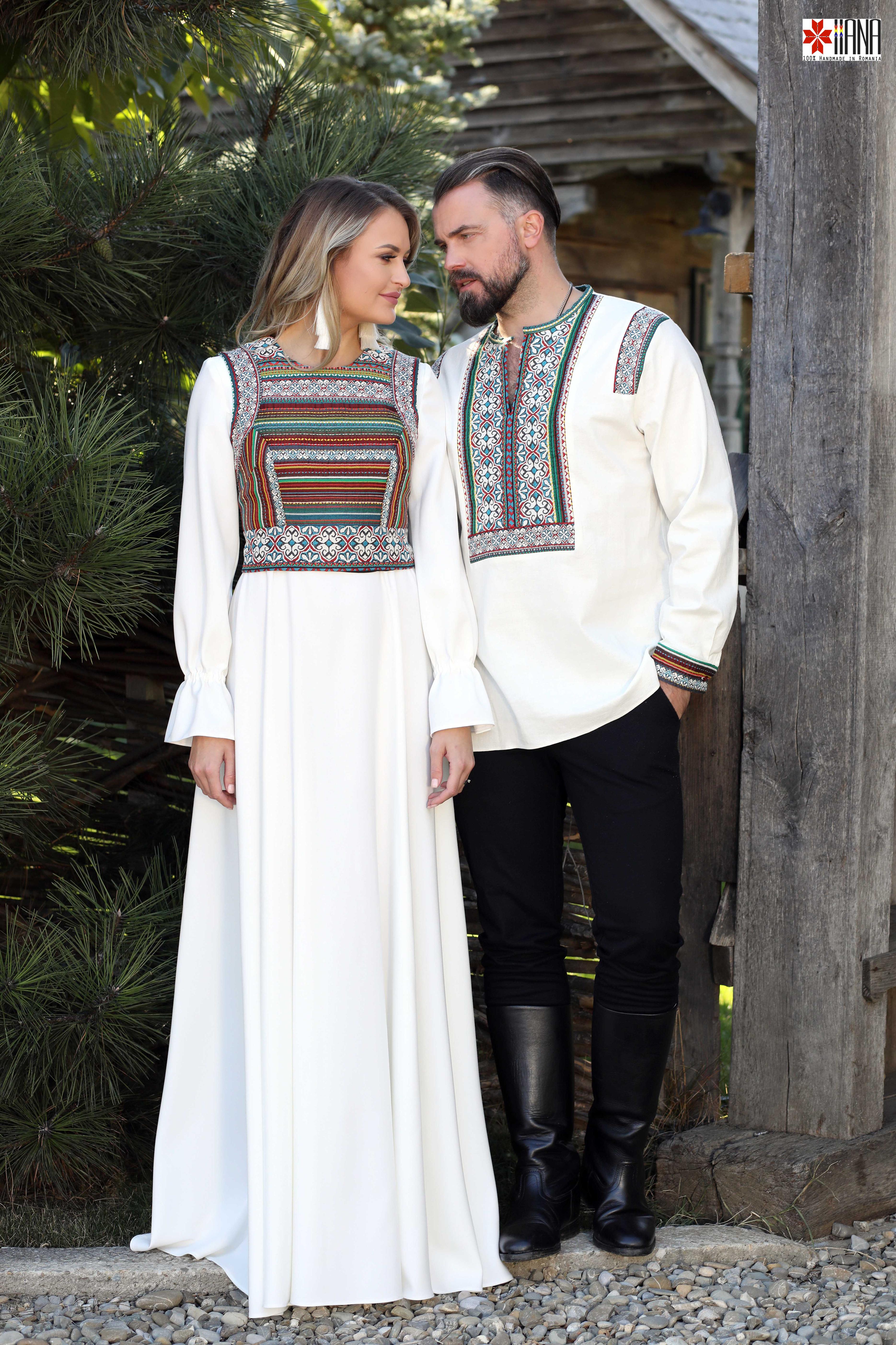 Camasa barbateasca romaneasca de horă este o piesă stilizată, inspirată din portul popular. Este confecționată din in prespălat, cu platcă, epoleți și manșete din jacquard etnic țesut. Are o croială arhaică dreaptă, cu mânecile amplu croite. Poate fi integrată cu succes într-o ținută relaxată de zi cu jeans și într-o ținută tradițională cu pantalon.