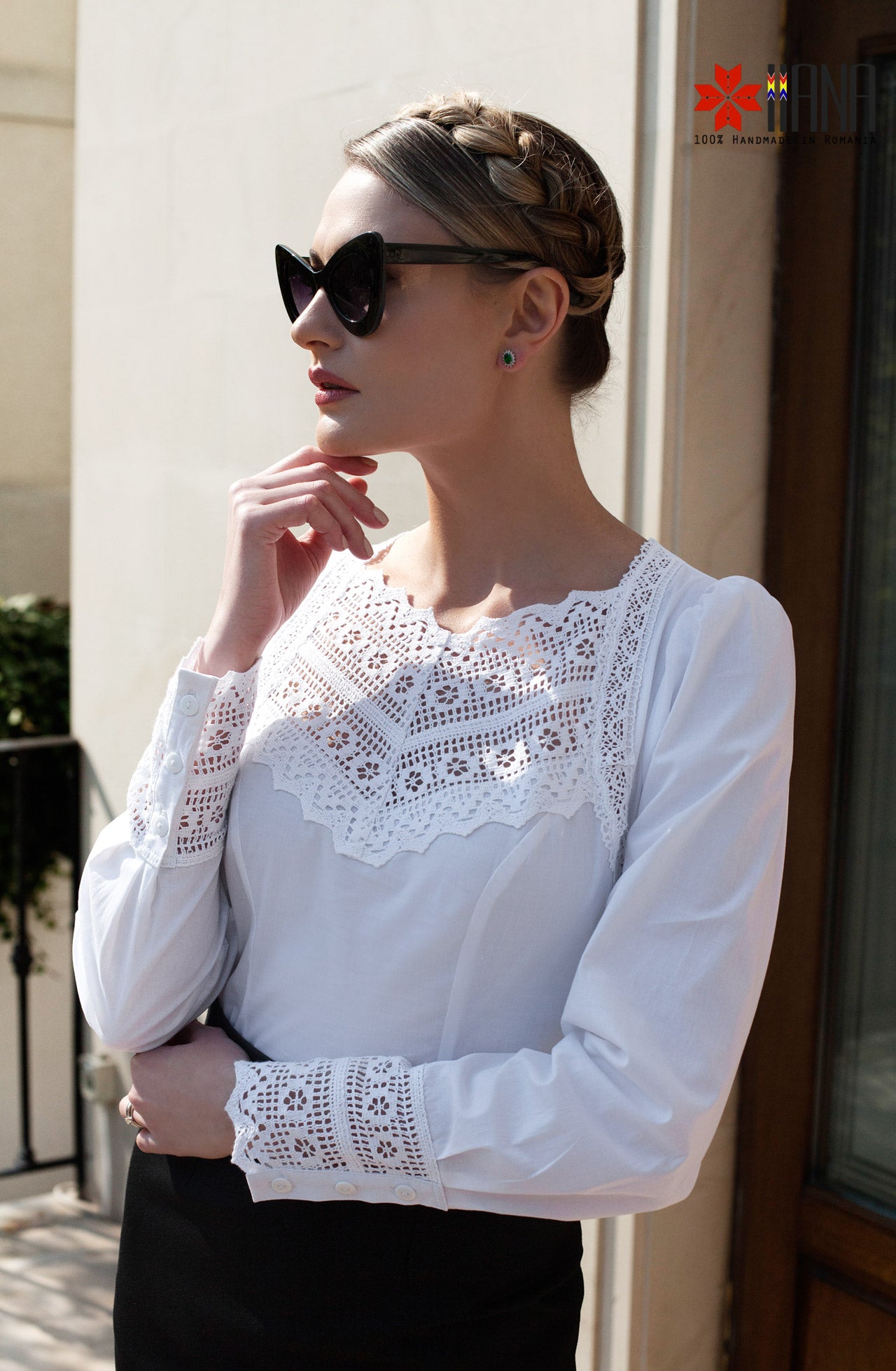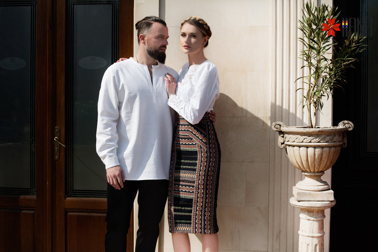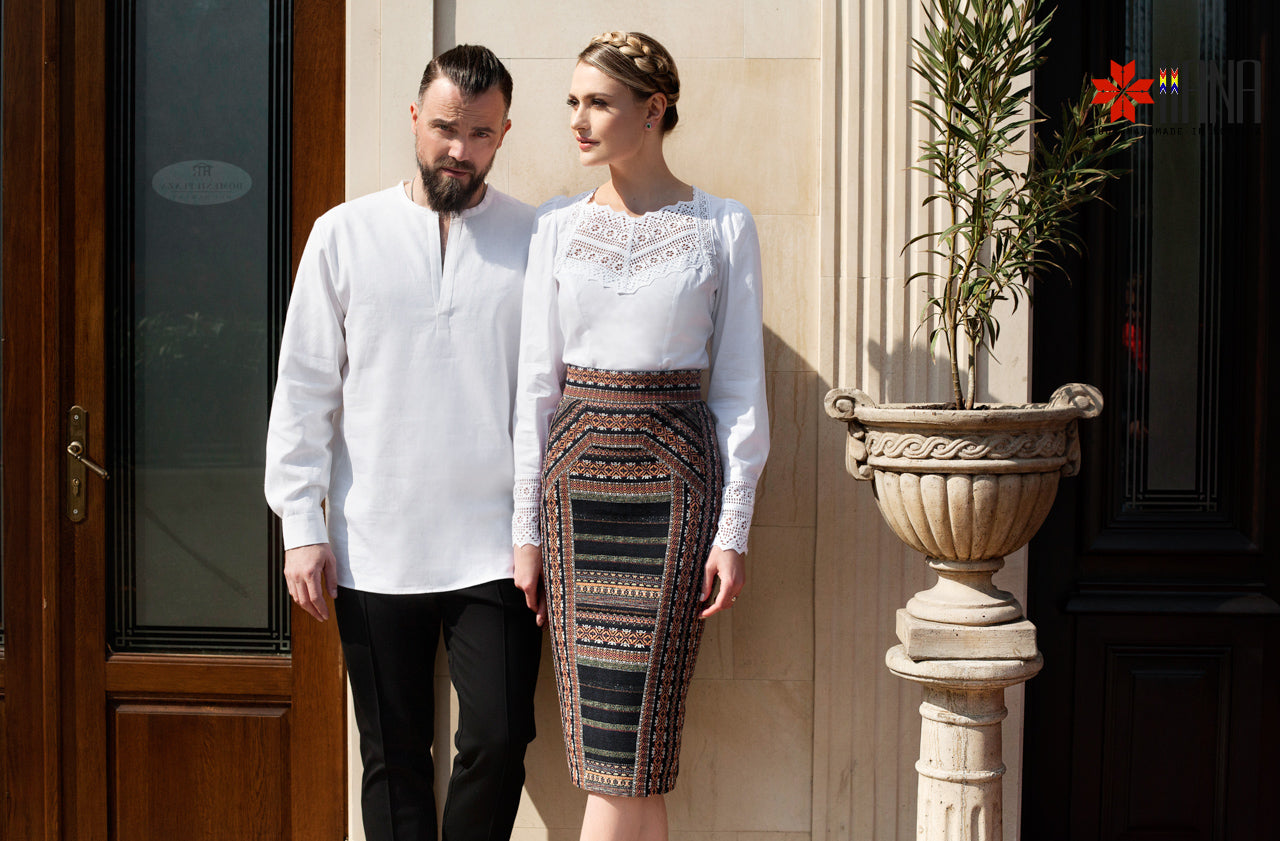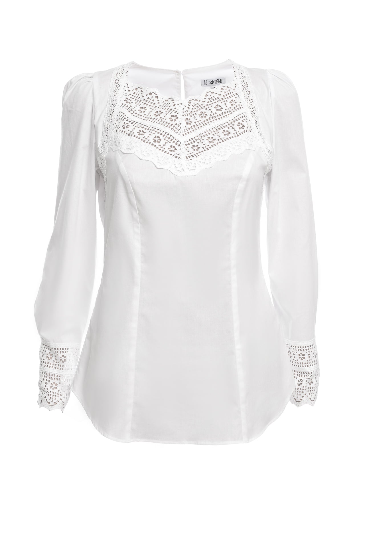 Cămașa Românească cu Dantelă Tradițională de Bumbac are o croială ușor cambrată, cu plătcuță și manșete
