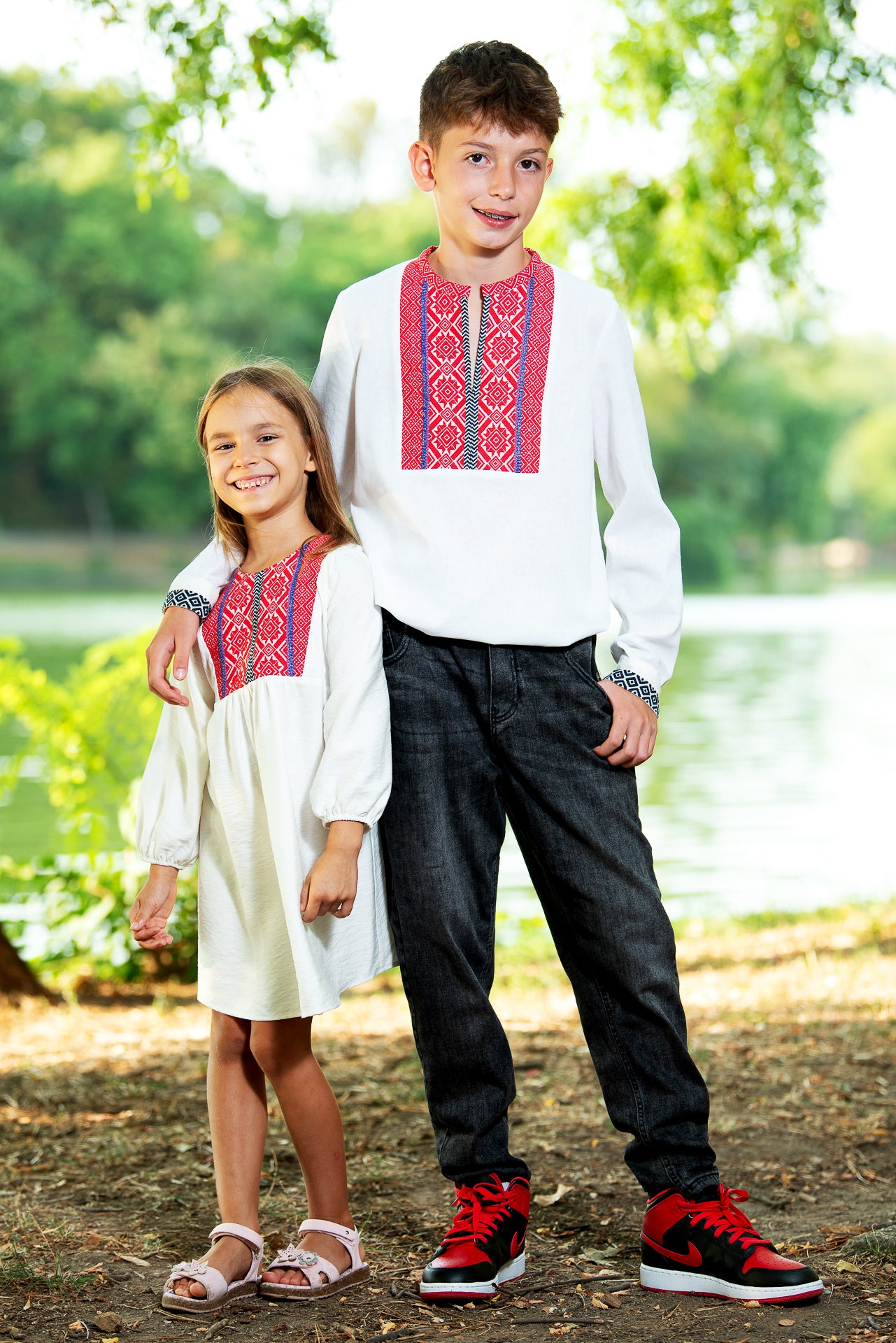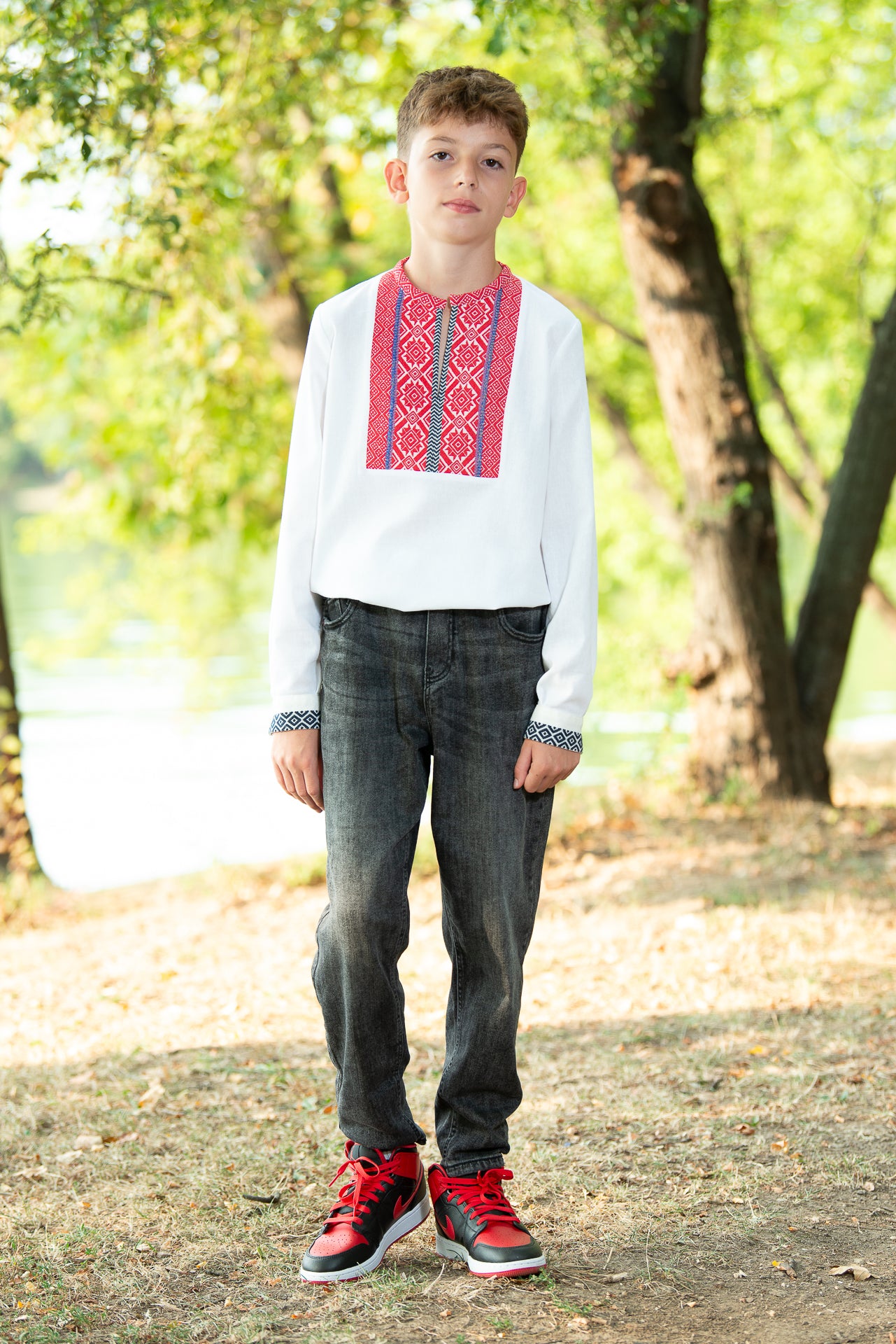Camasa traditionala baieti Adam este o piesă stilizată și inspirată din portul popular. Aceasta este confecționată din in cu platcă și manșete din jacquard etnic țesut. Poate fi integrată cu succes într-o ținută relaxată de zi cu pantalon, jeans.