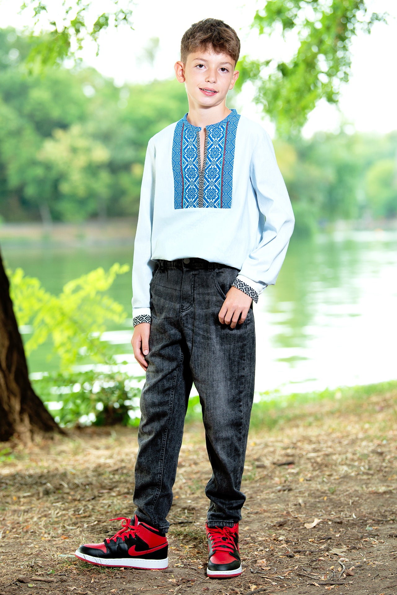 Cămașă tradițională băieți Codru este o piesă stilizată și inspirată din portul