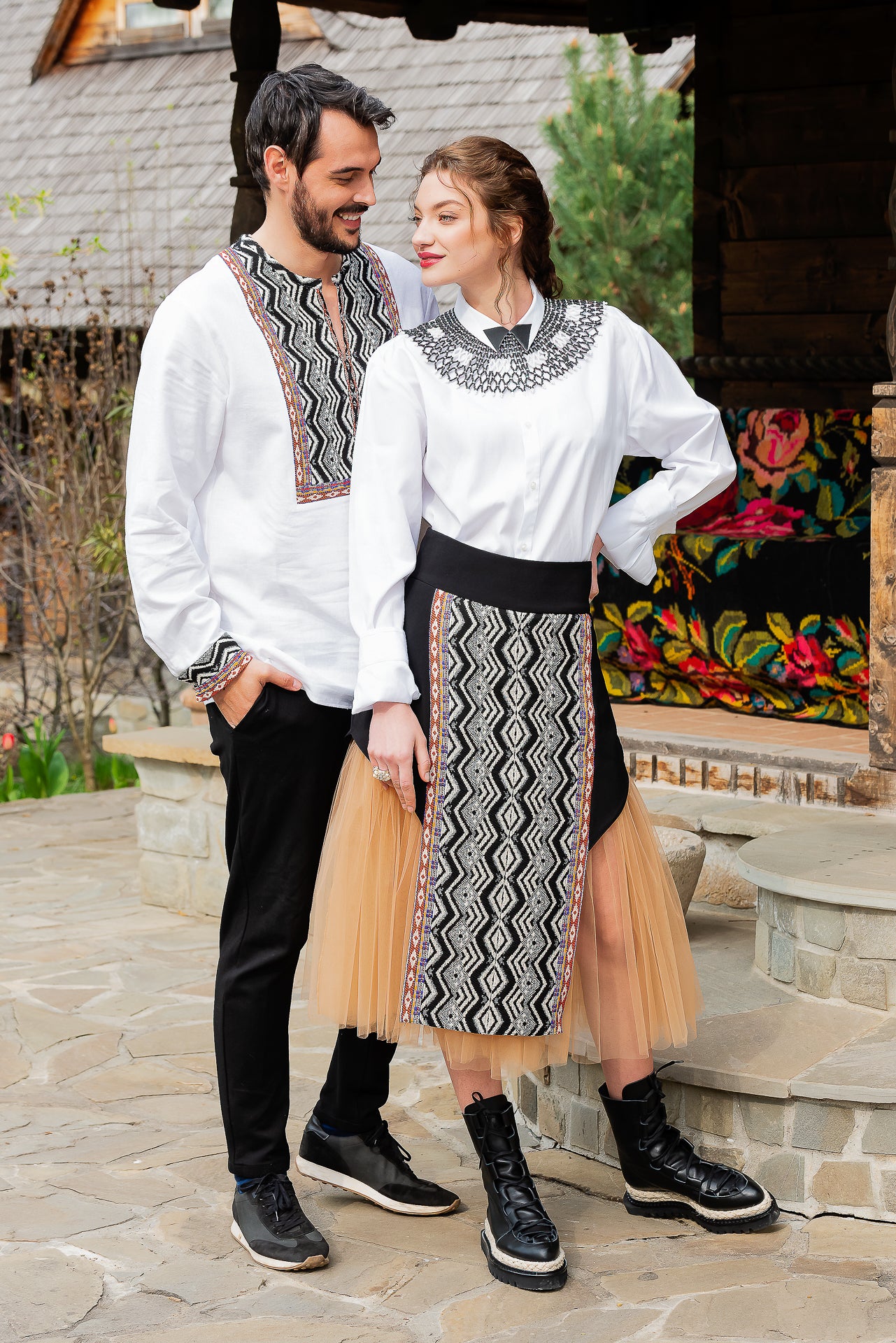 Camasa barbateasca traditionala din gama Valahului este o piesă stilizată, inspirată din portul popular. Este confecționată din in prespalat, cu platcă și manșete din jacquard etnic țesut. Are o croială arhaică dreaptă, cu mânecile amplu croite. Poate fi integrată cu succes într-o ținută relaxată de zi cu jeans și într-o ținută tradițională cu pantalon.