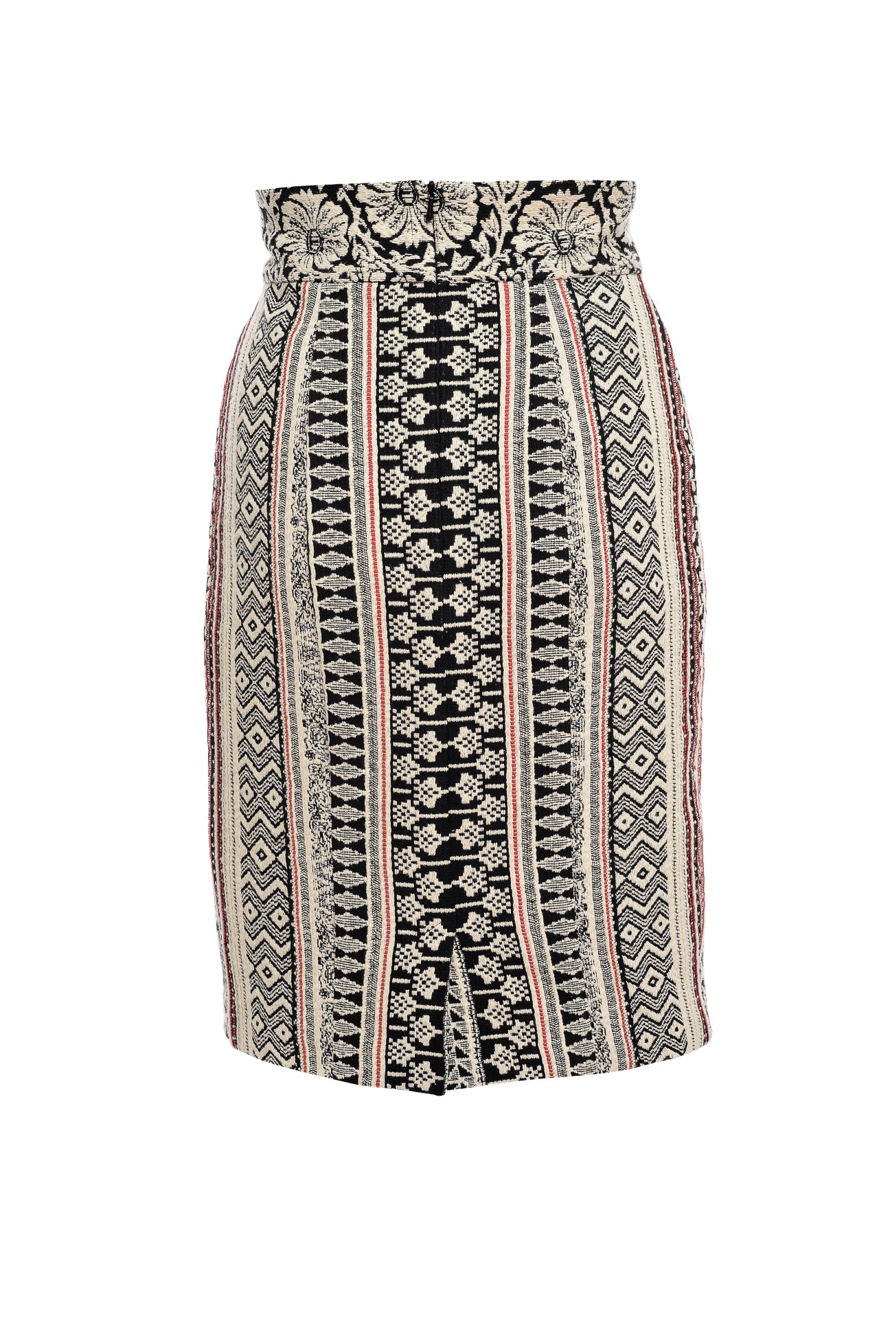 confecționată din jacquard țesut, are o croială dreaptă, ușor conică și este