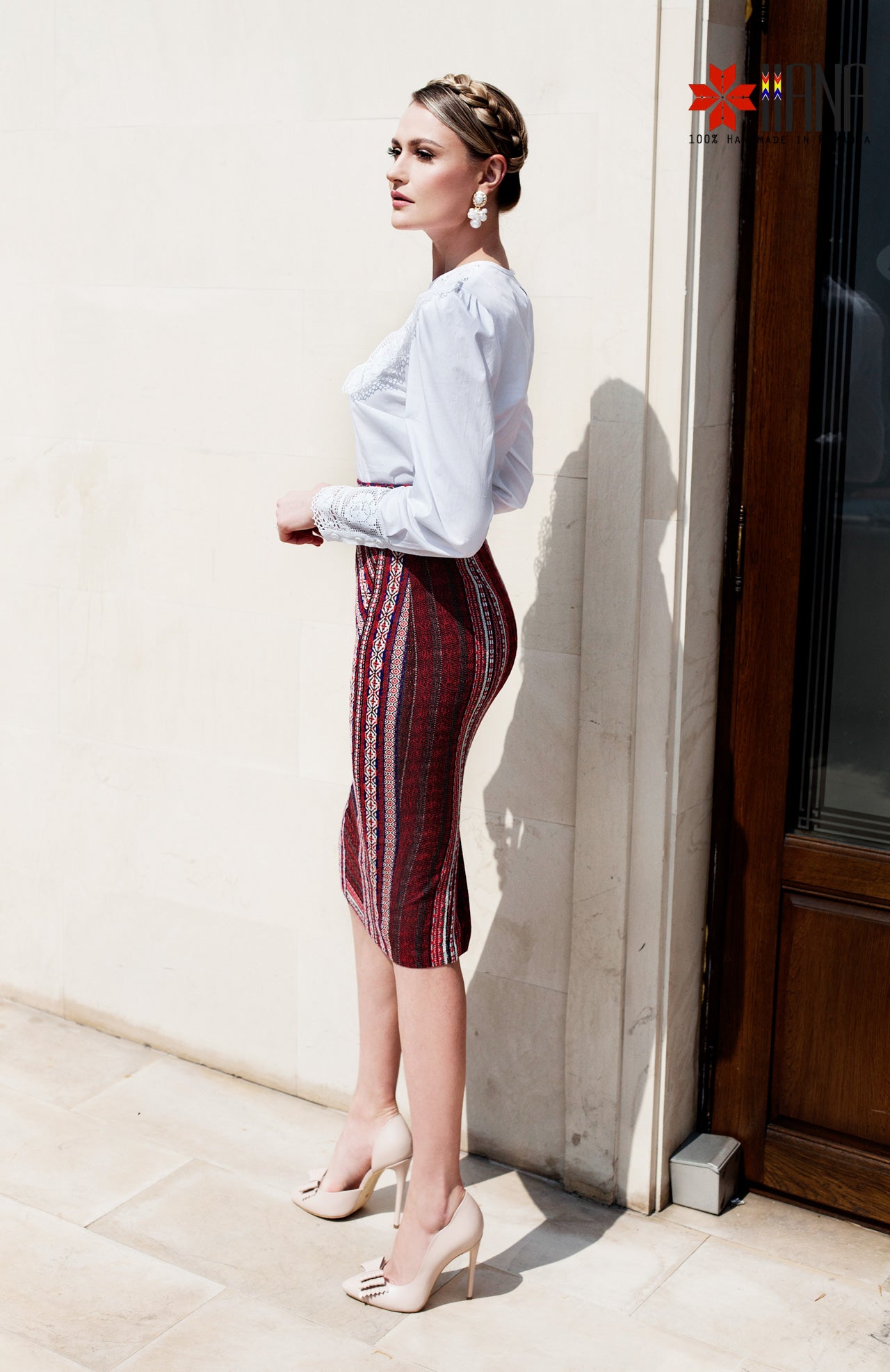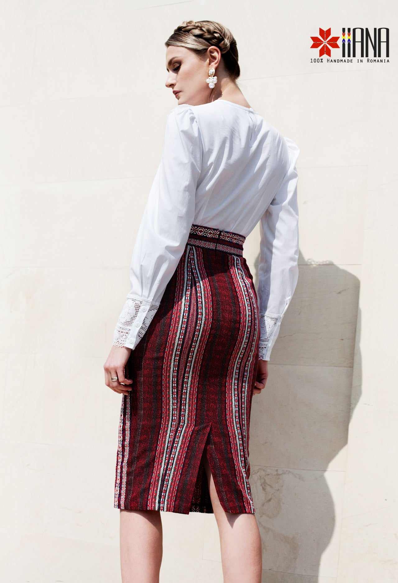Fusta Midi din Jacquard Țesut Cosânzeana are o croială
